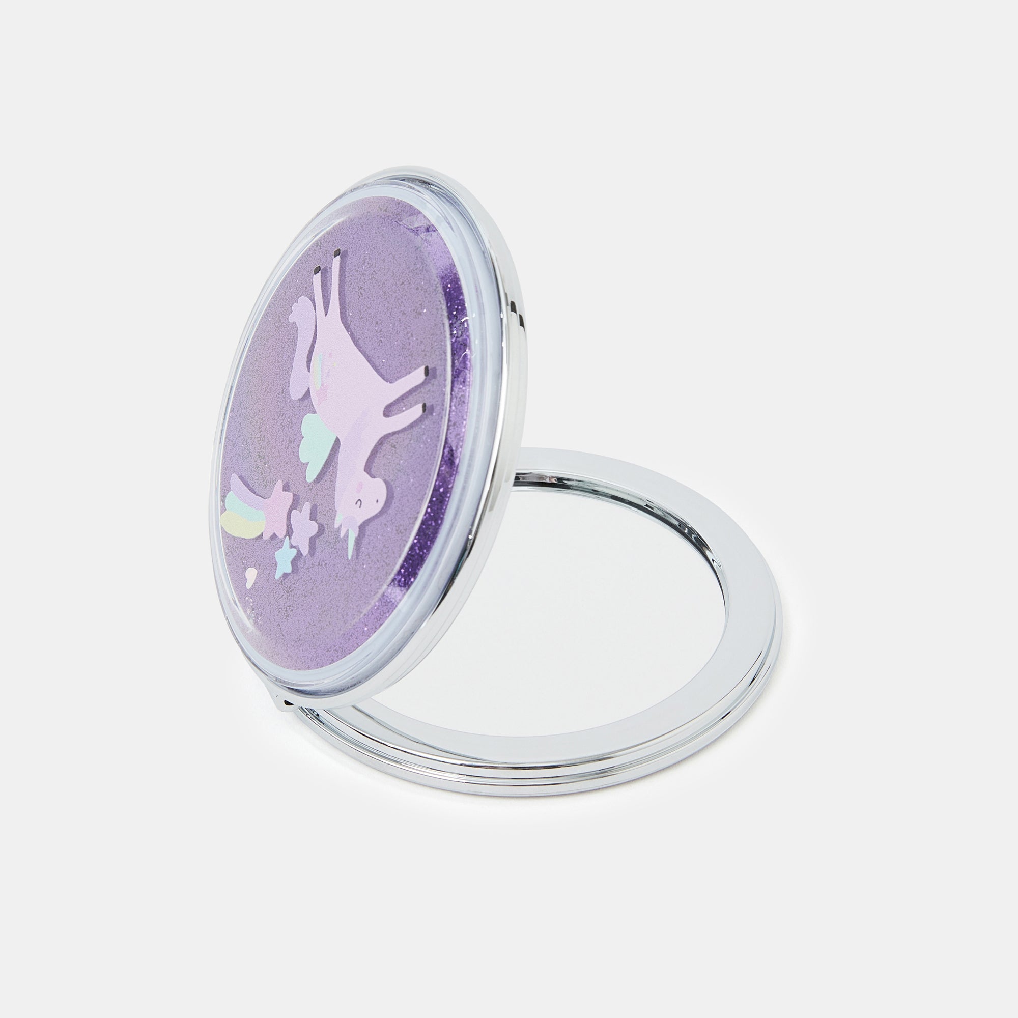 Featuring a magical unicorn design and purple glitter on the front, this compact mirror is perfect for taking on trips or storing in their bag.