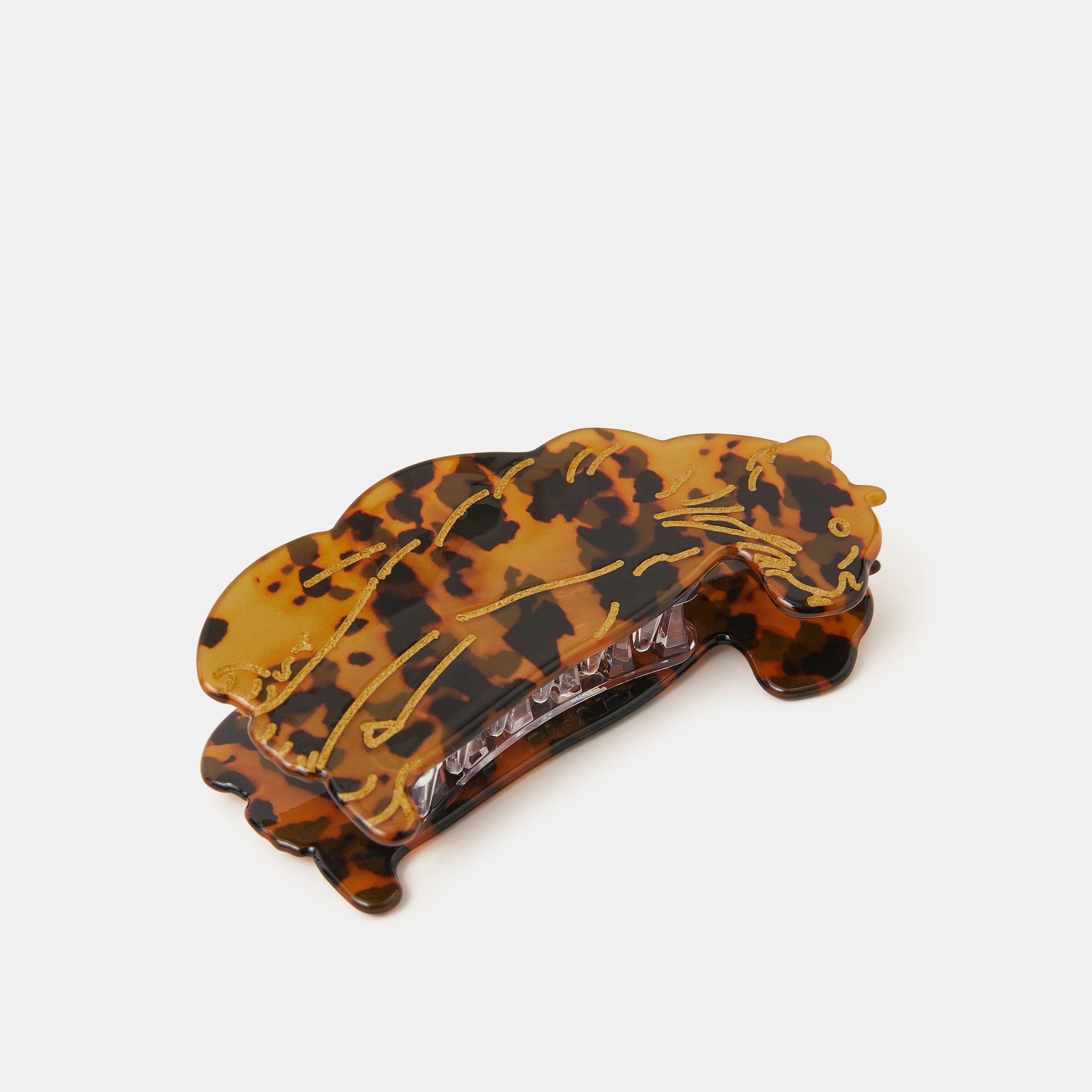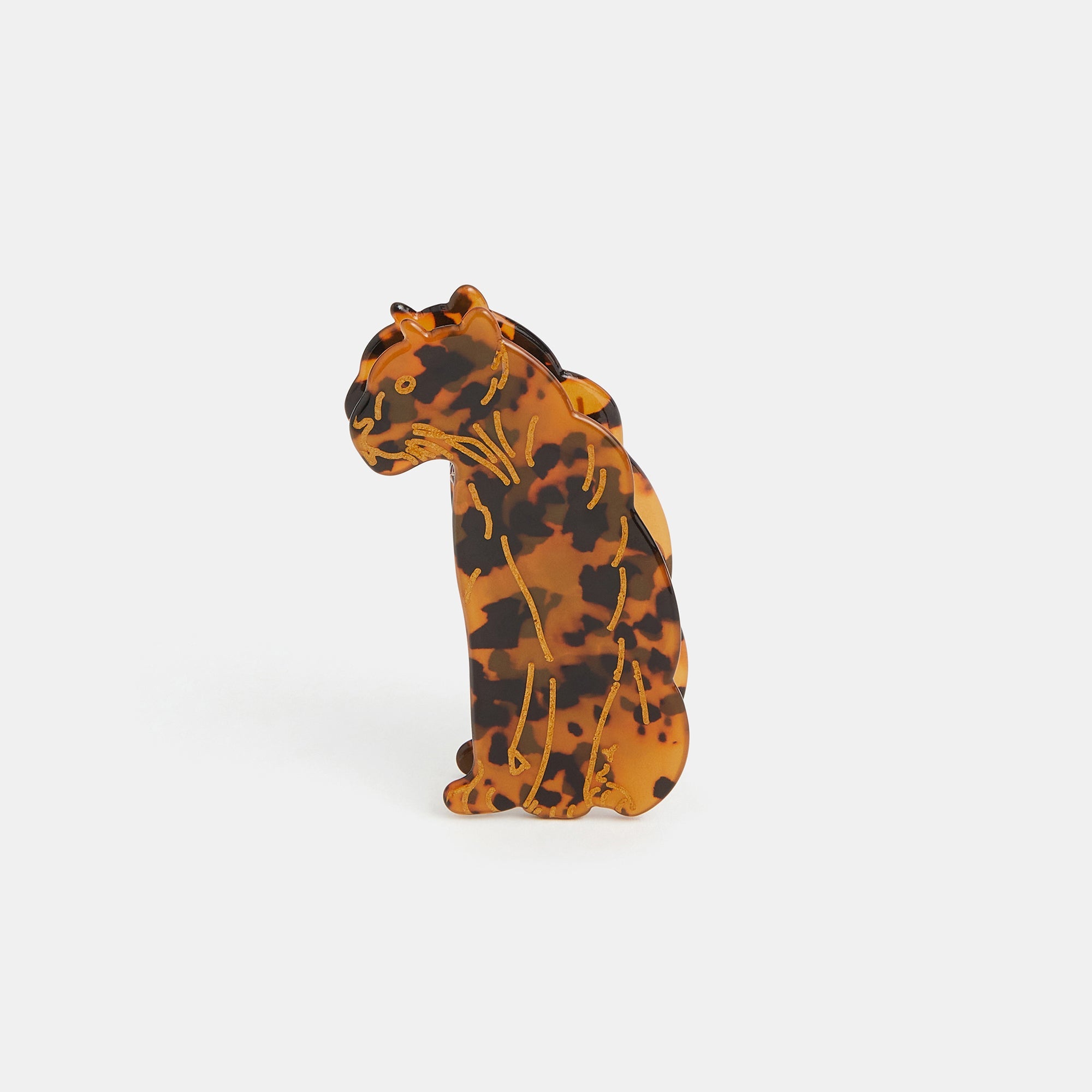 For the wild ones. Guaranteed to elevate your look, this claw clip is set in a classic tortoise shell finish and shaped like a leopard. ROAR!