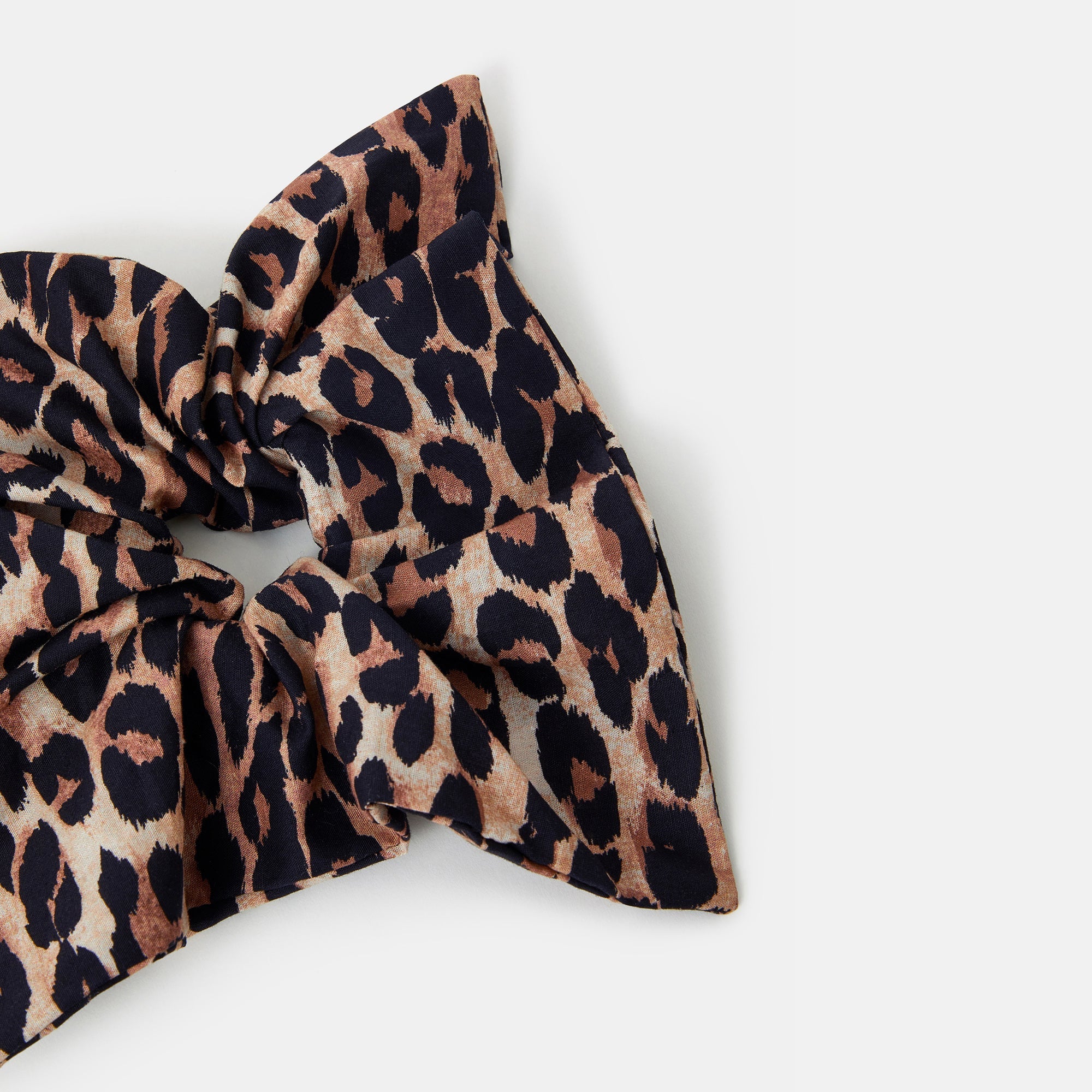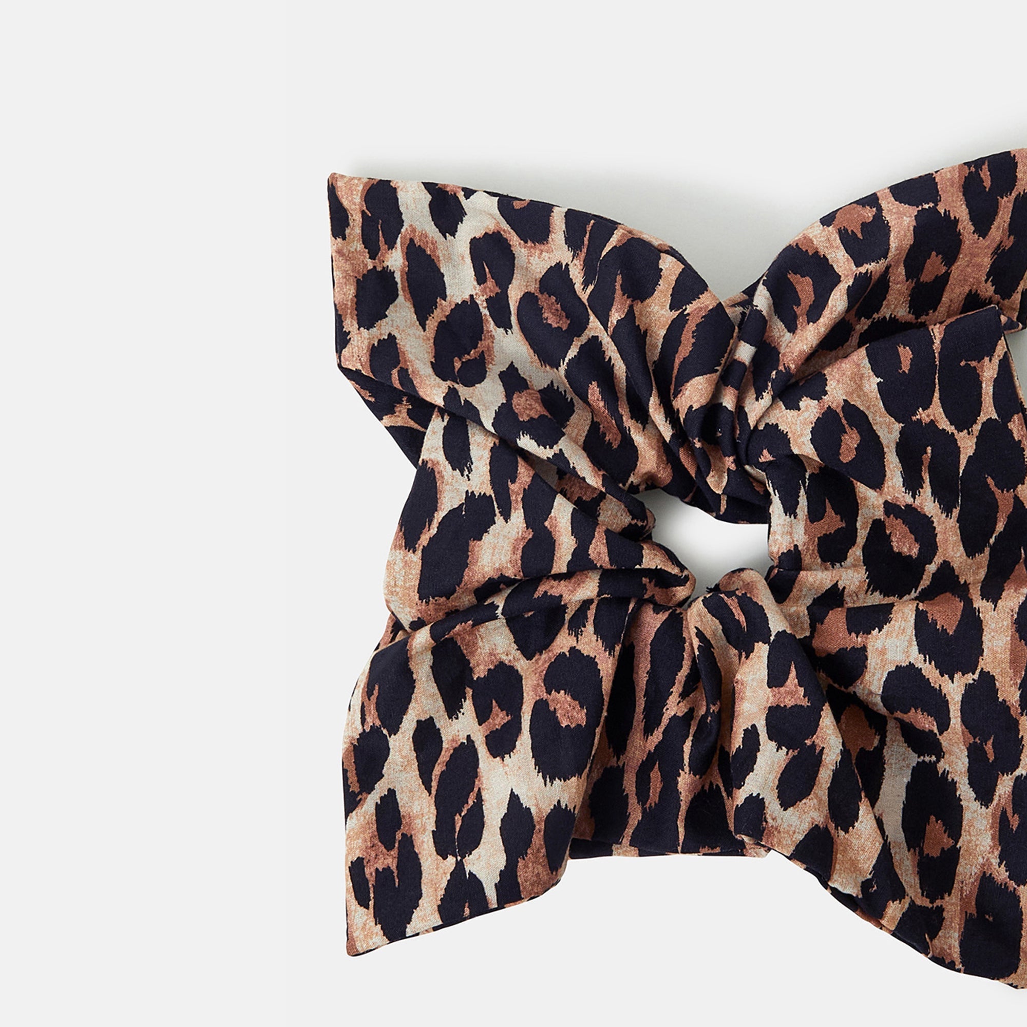 Adding new dimensions to your hair accessories, this scrunchie is made in forever-cool leopard print with a square finish.
