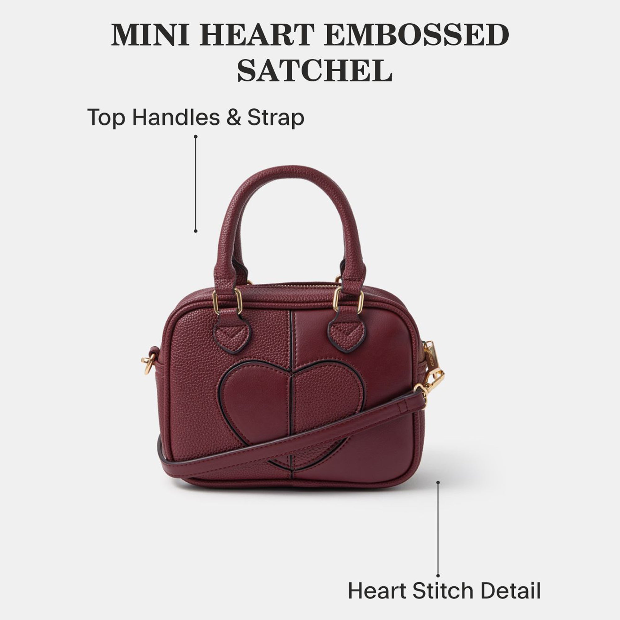 Crafted with faux leather, this bag features a cute heart patch to the front. Designed with two sturdy top handles, a detachable crossbody strap and secure zip fastening to house all your goods. Matching pouch available.
