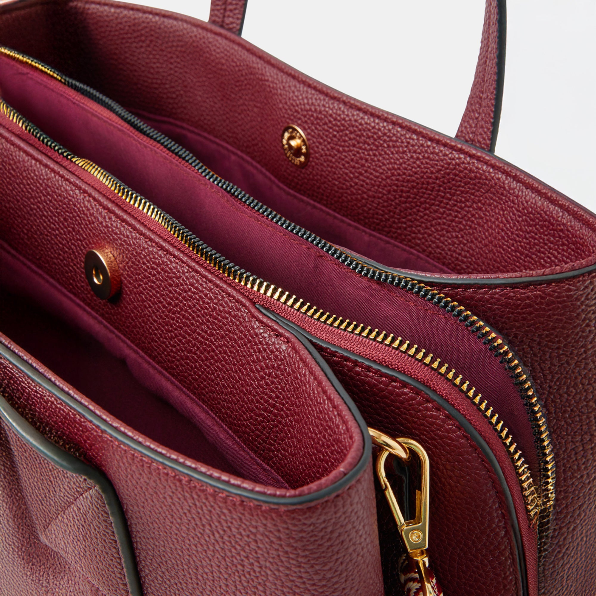 Mary Poppins energy. Your 9-5 is incomplete without this tote bag, ready and raring to assist you on your commute. Featuring two compartments with a laptop sleeve to the centre, this bag fastens with a zip and magnetic dot fastenings with an internal zip pocket. Switch it up and go use the detachable webbing strap for cross-body carrying.
