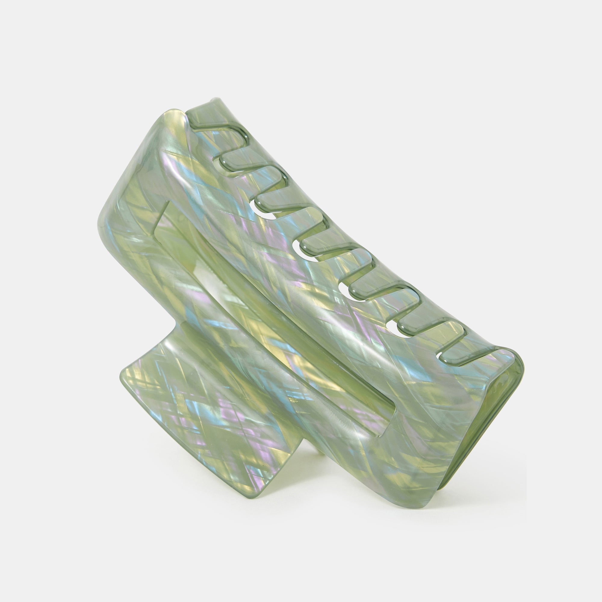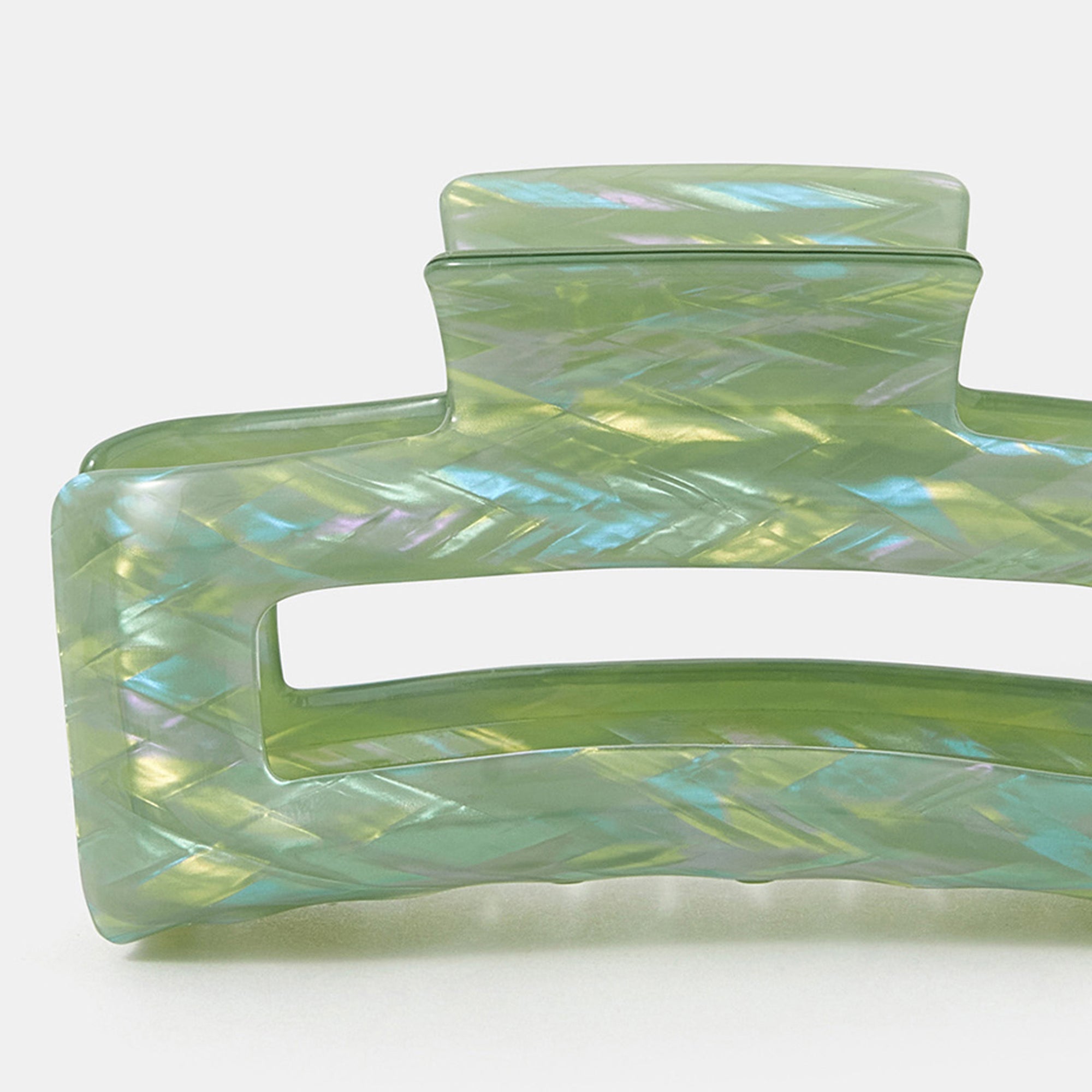 You'll be shining all day long with this in your updo. Designed with green resin in a cut-out rectangular shape, this claw clips has a shimmery iridescent finish.