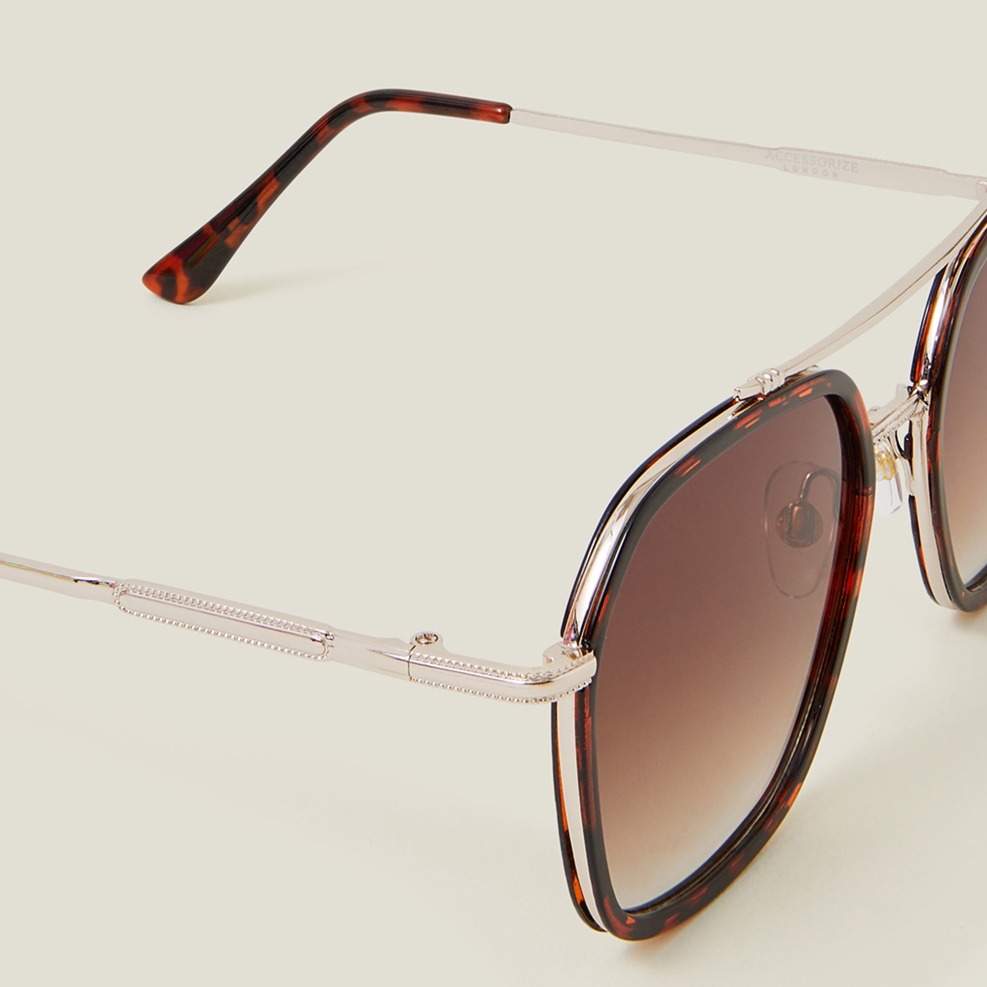 Keep sun rays at bay in the coolest way with these aviator-style sunglasses. Designed with dark tinted lenses, they're finished with metal frames and tortoiseshell resin detailing. Slip them into one of our sunglasses cases and keep them in your daytime shoulder bag for sunny spells throughout the year.