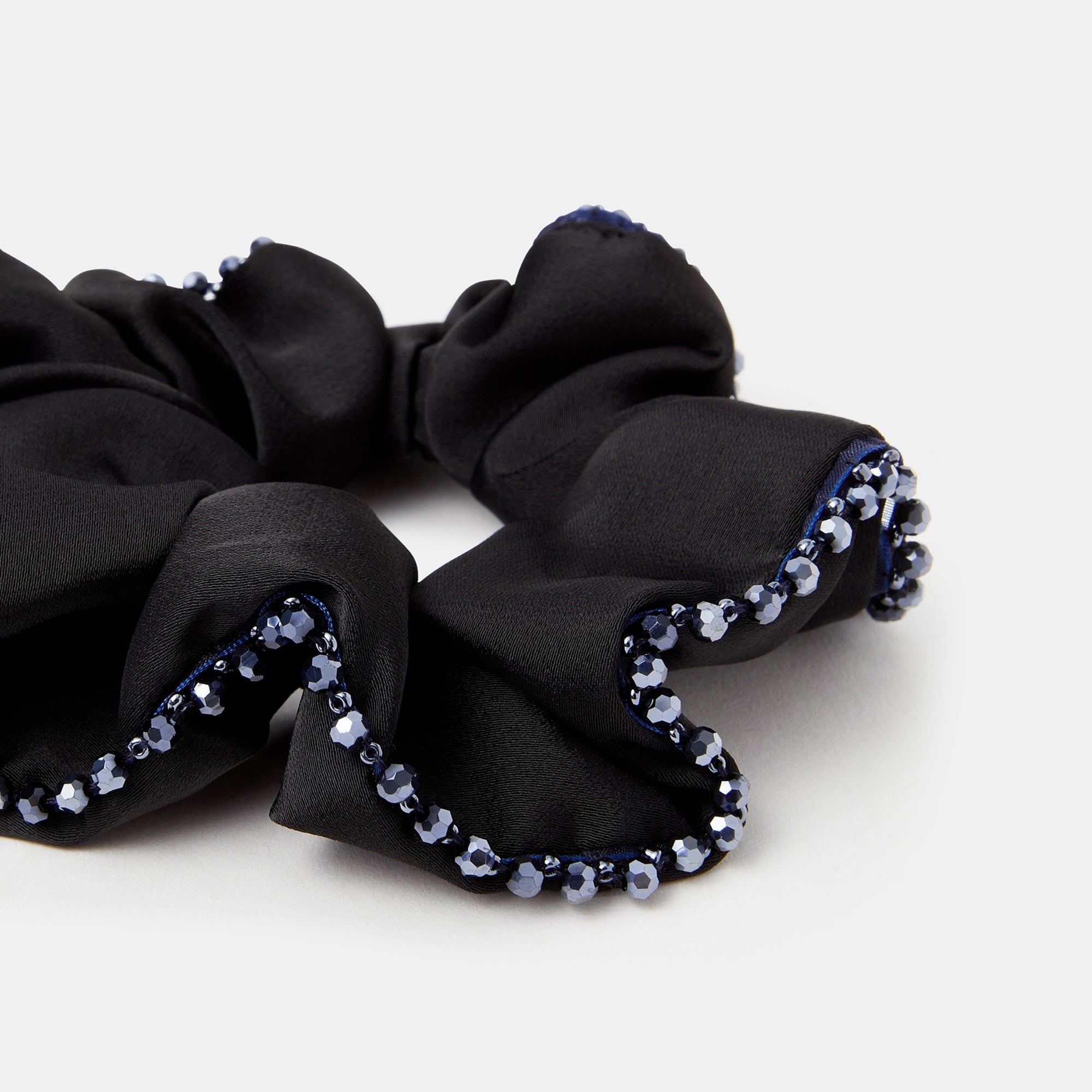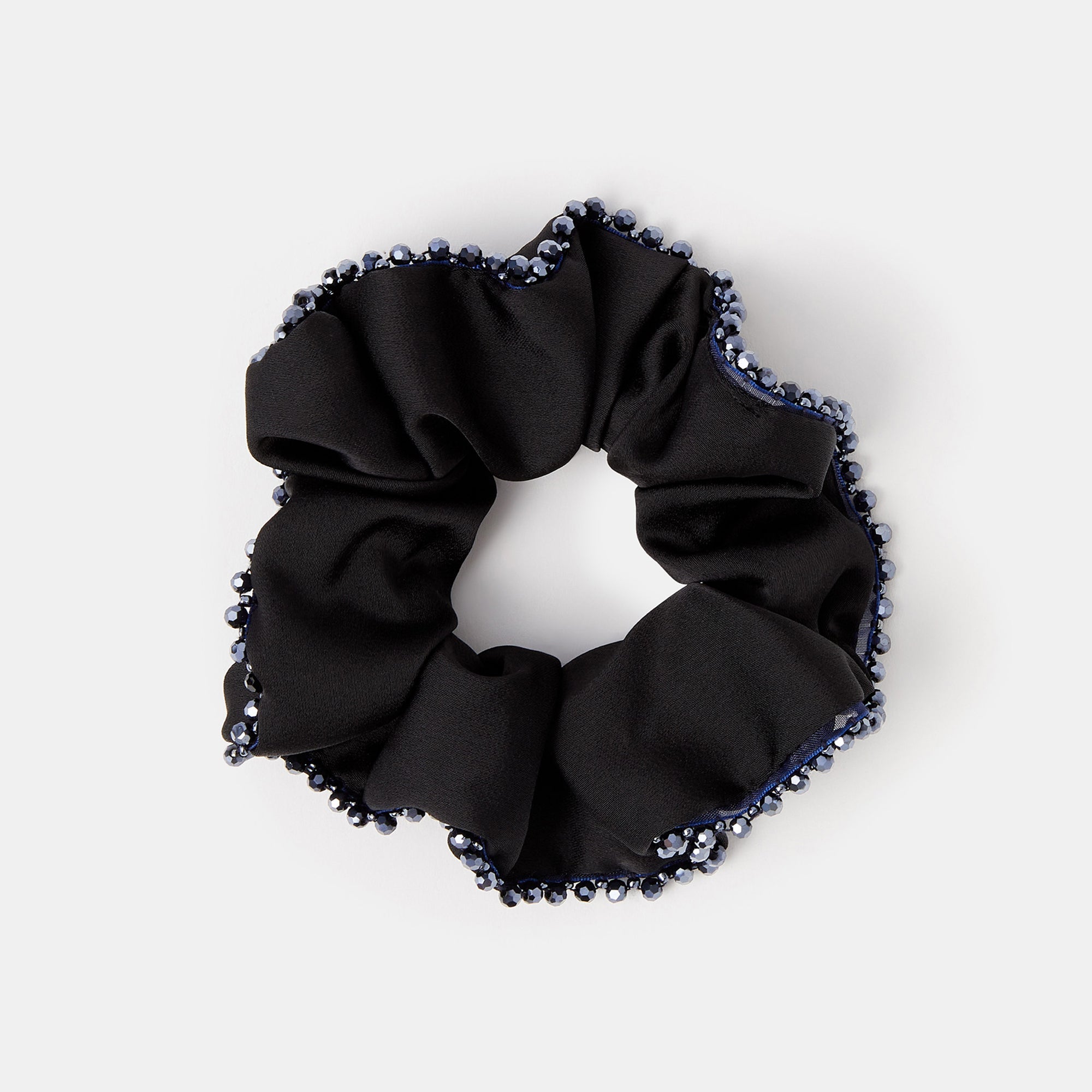 Add a little glitz and glam to your ponytail with this scrunchie. Embellished with sparkly beads around the trim, it's the perfect accessory for after-work plans. Cocktail, anyone?