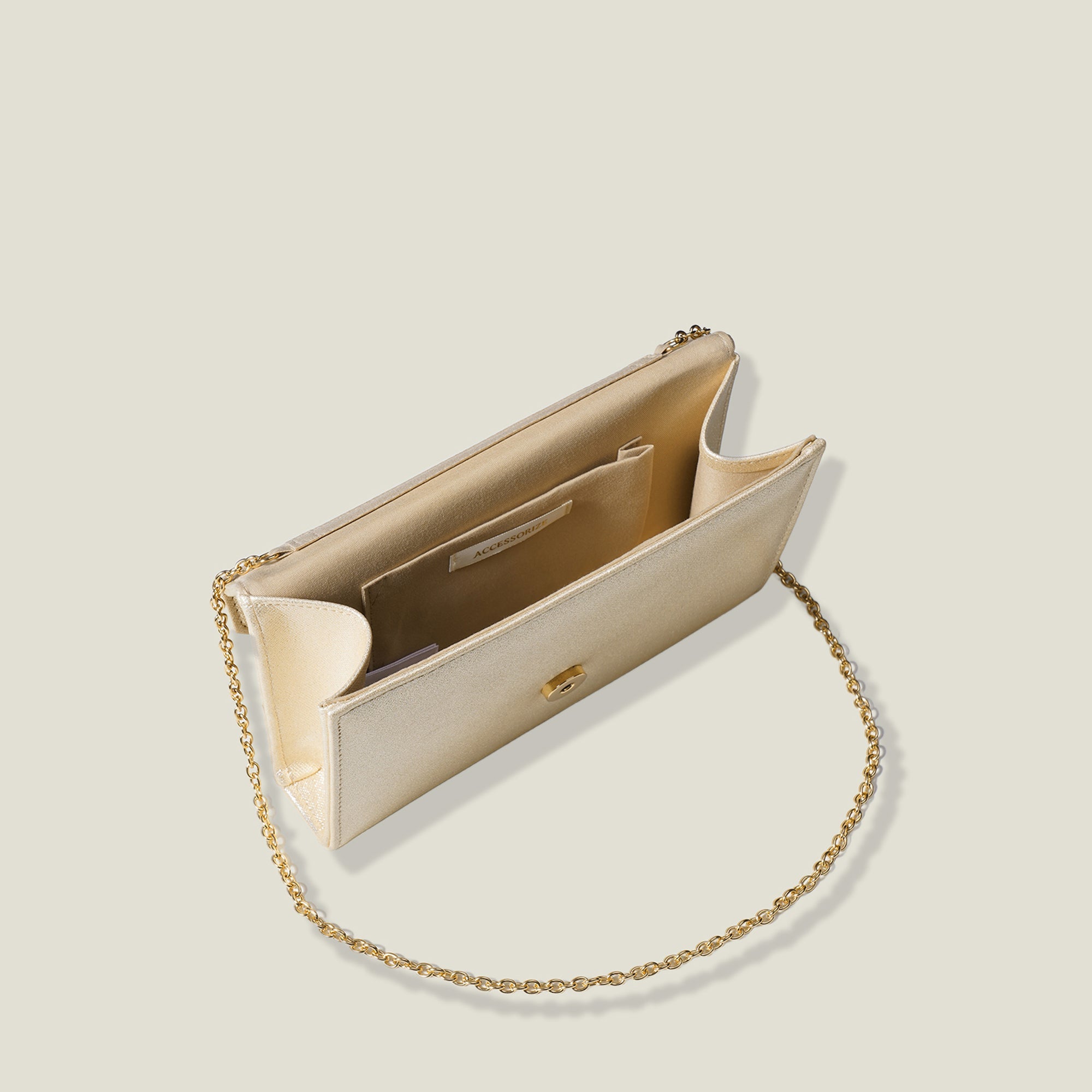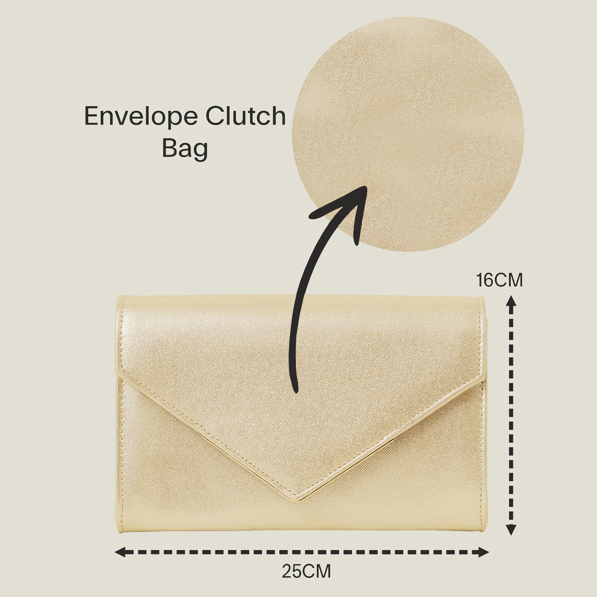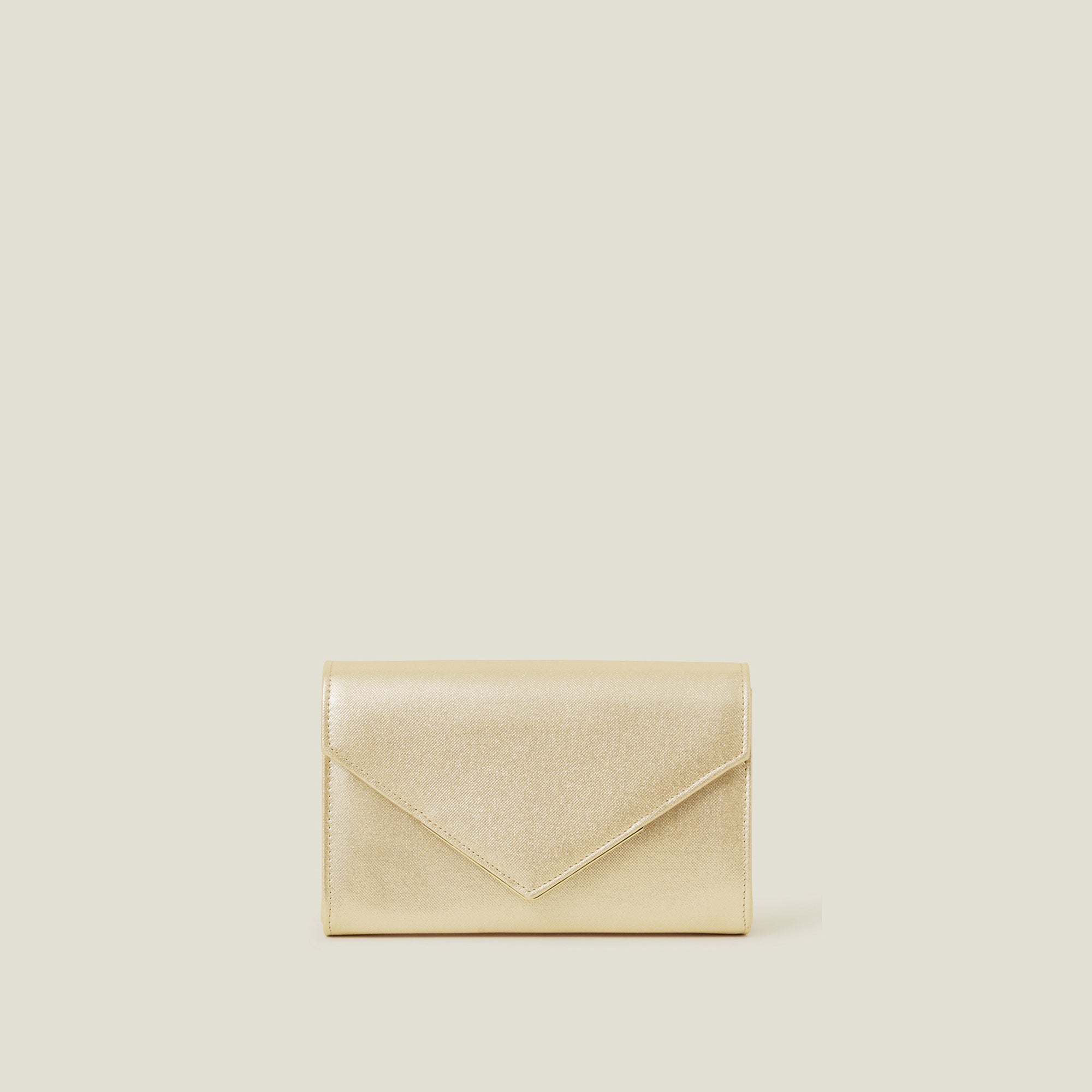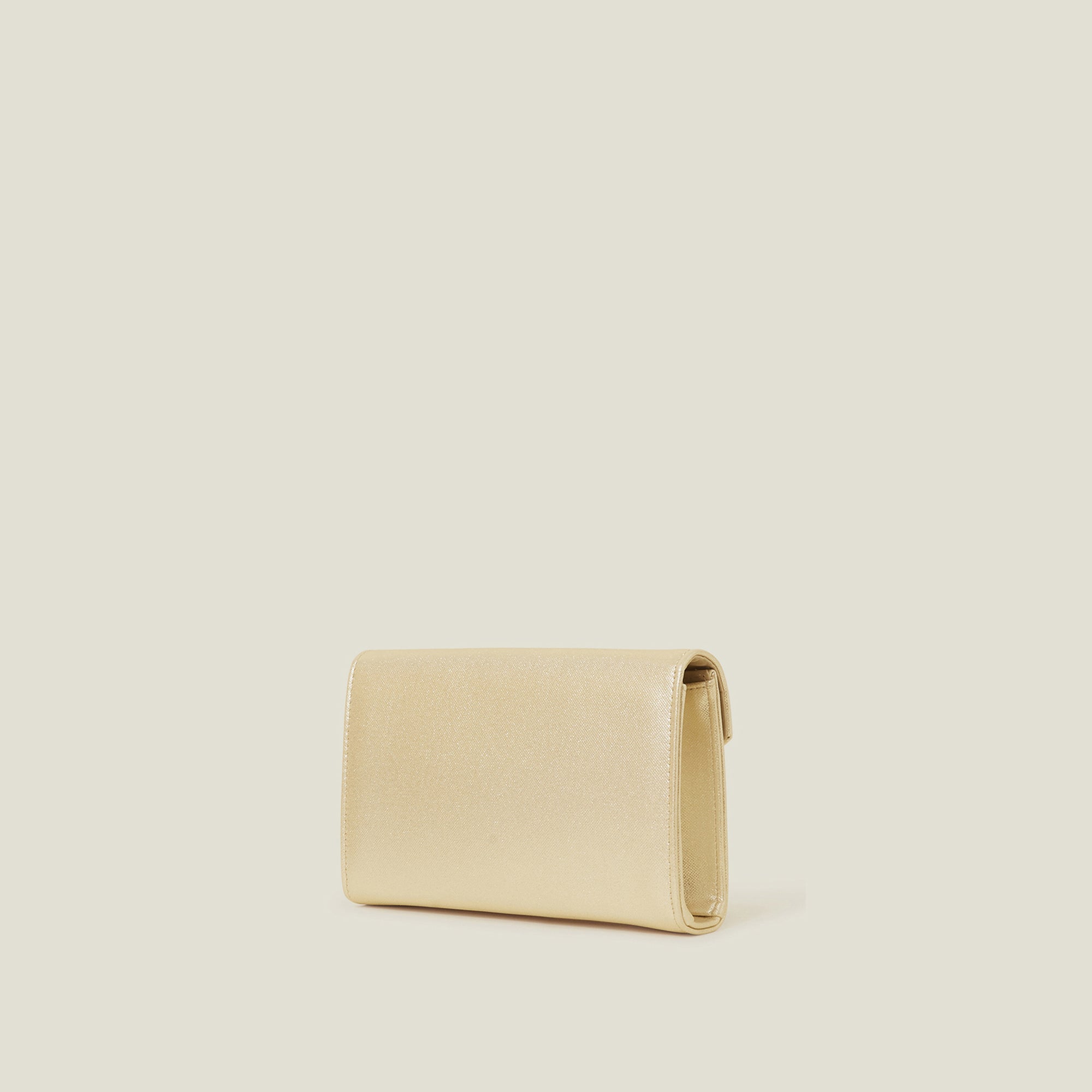 Add a touch of sparkle and shine to every evening fit with this metallic clutch. Designed with an envelope flap, magnetic popper fastening and optional chain strap.