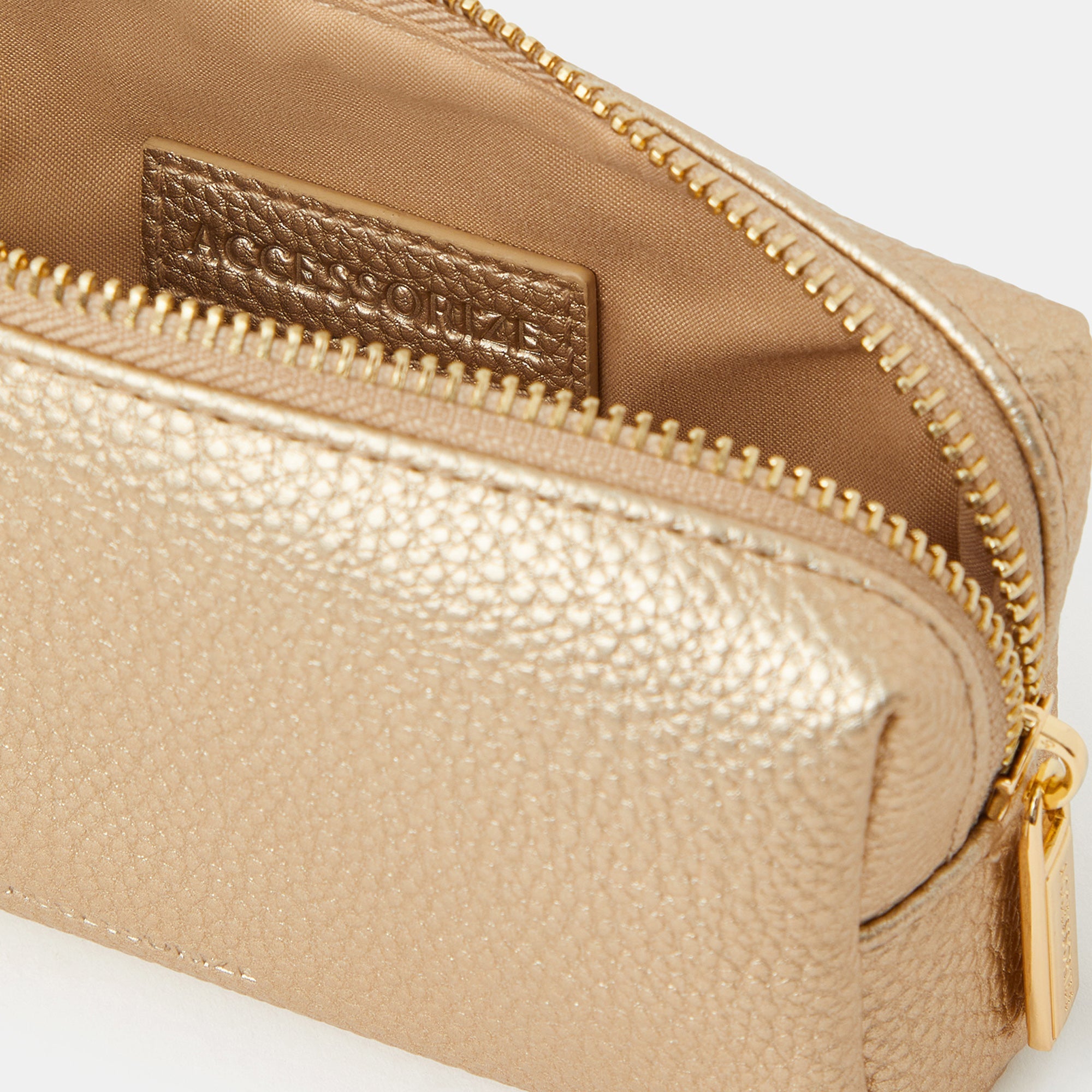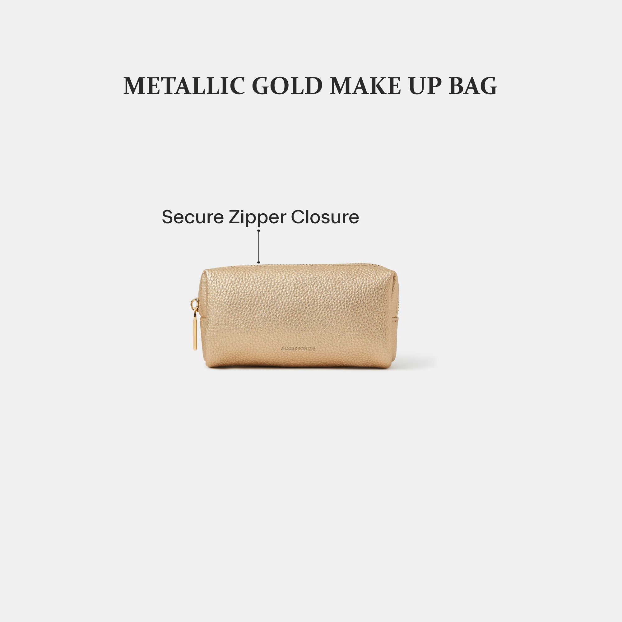Designed in rectangular shape with a zip fastening, this makeup bag features a shimmery metallic finish to match your highlighter palette.
