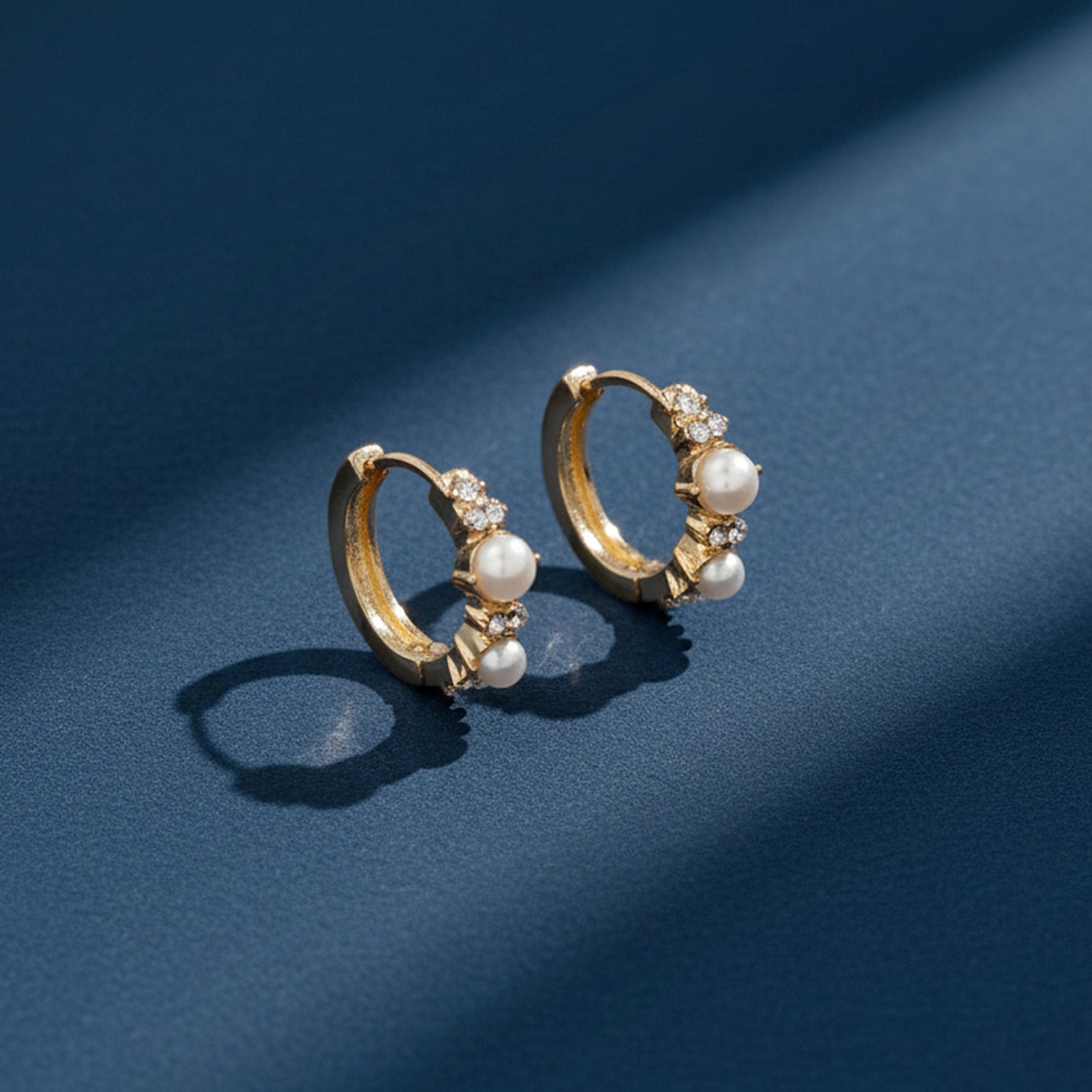 Mini Diamanté Pearl Encrusted Hoop Earrings