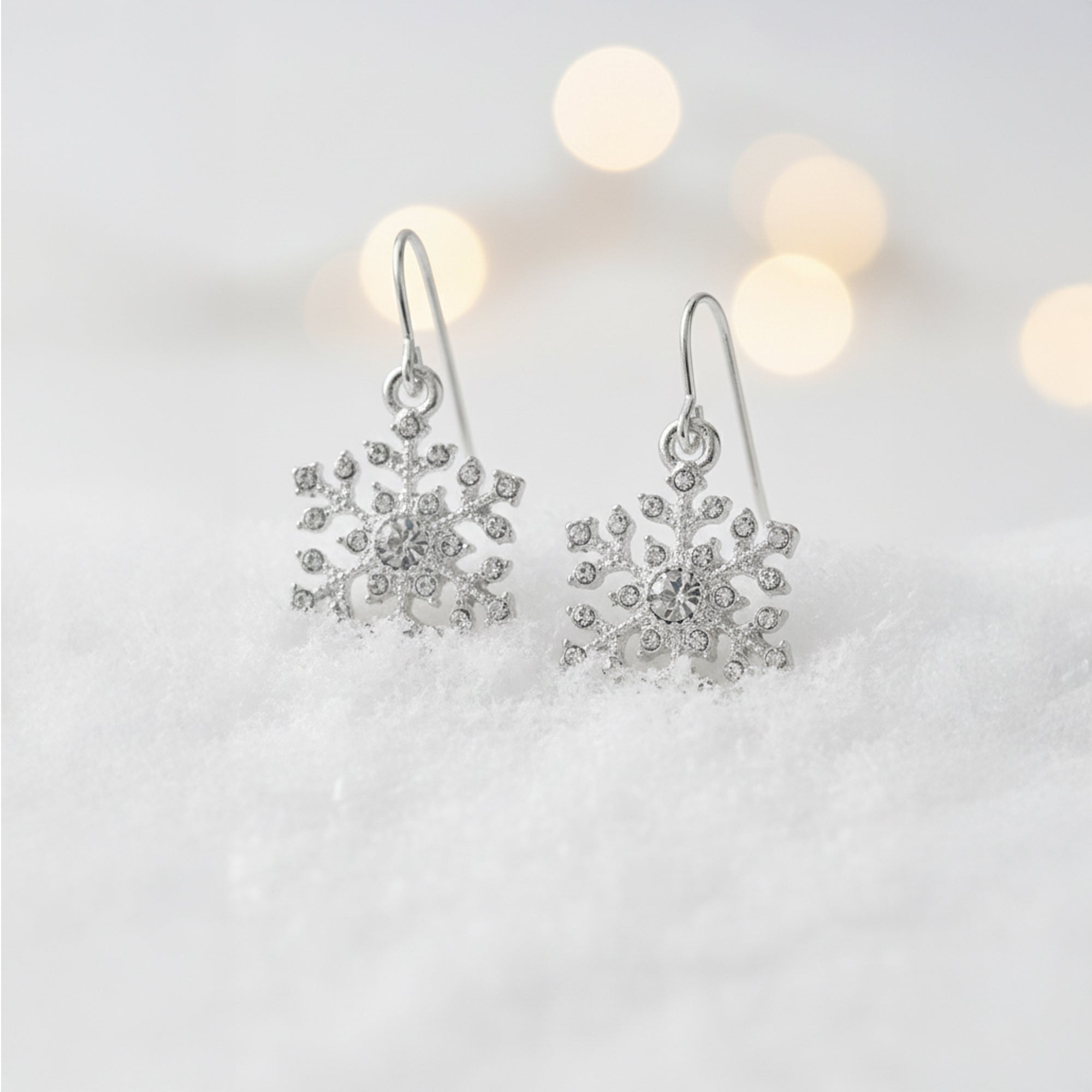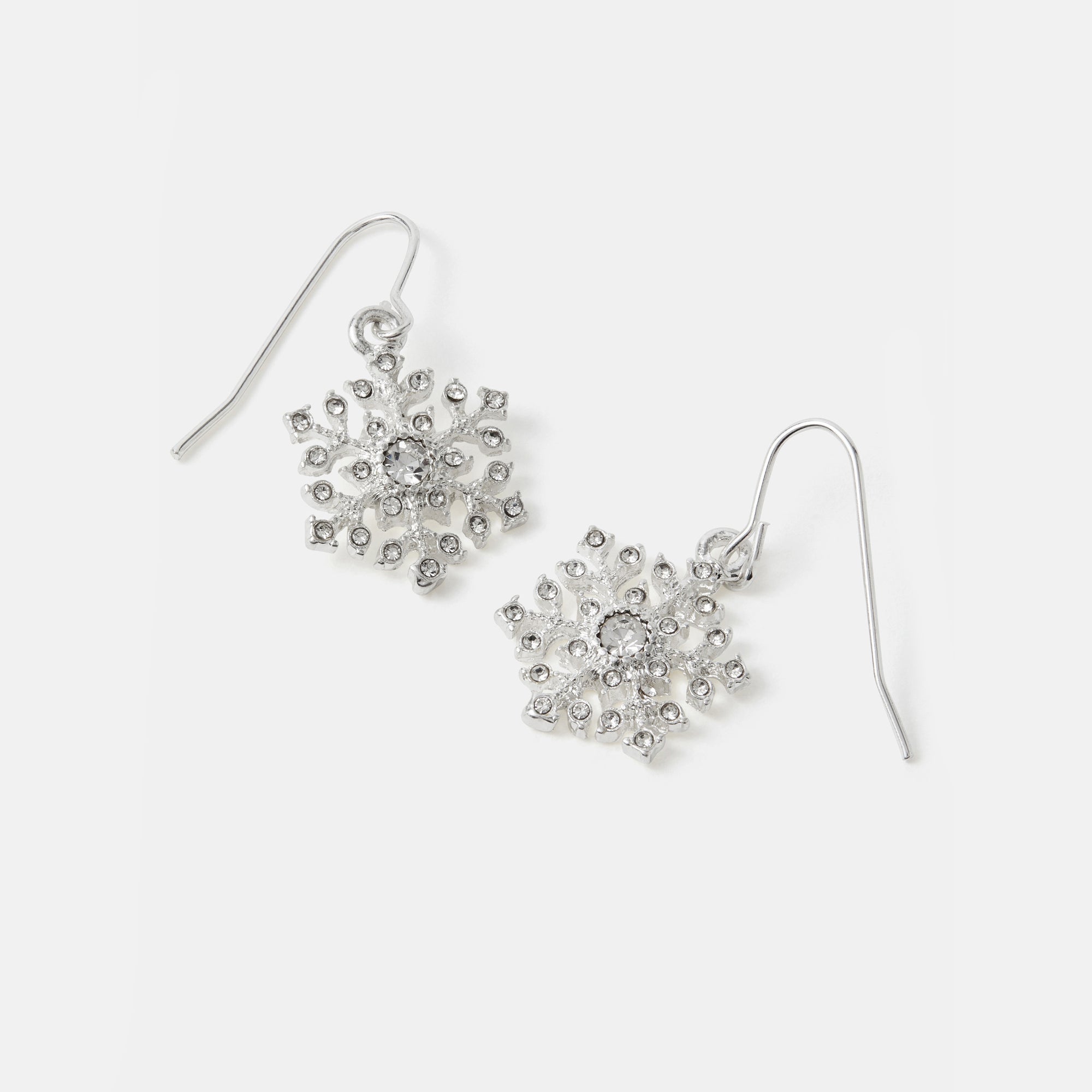 Small in size but big in winter wonder, these earrings showcase a sparkling snowflake design on a silver-tone hook profile.