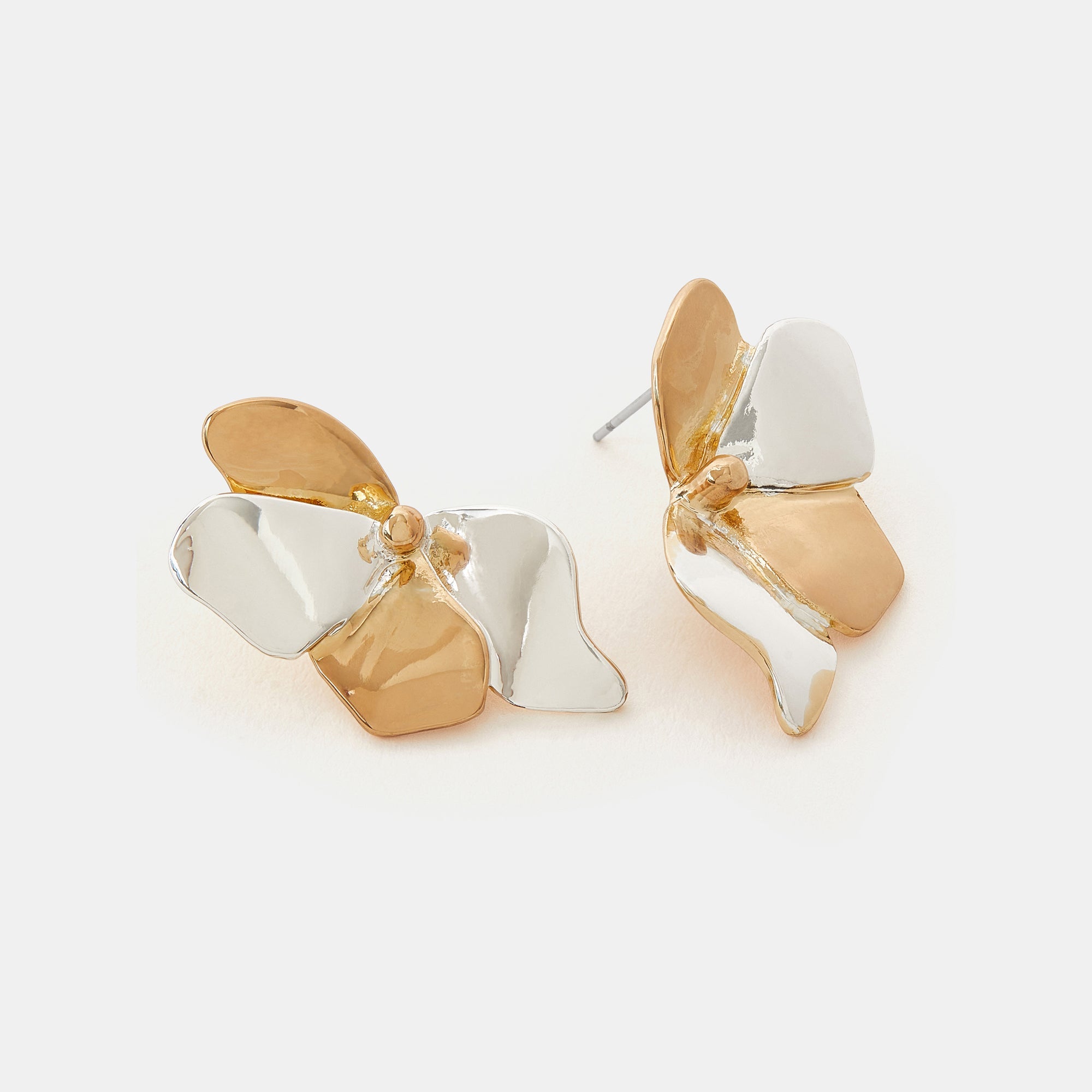 Mixed Metal Flower Stud Earrings