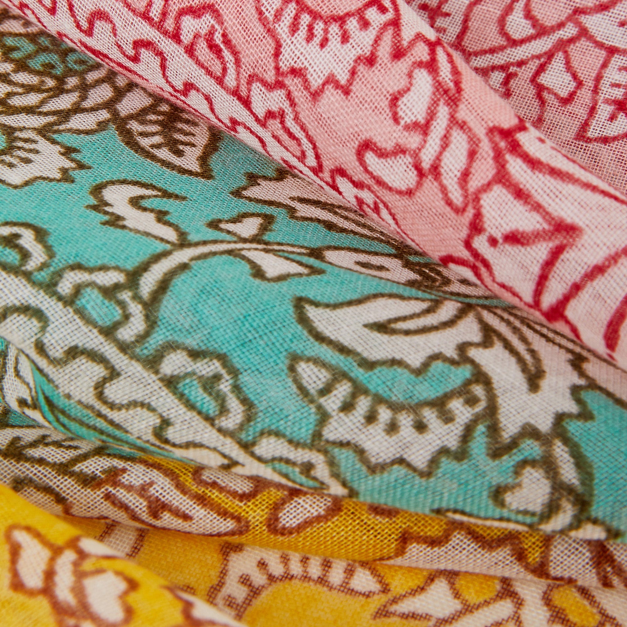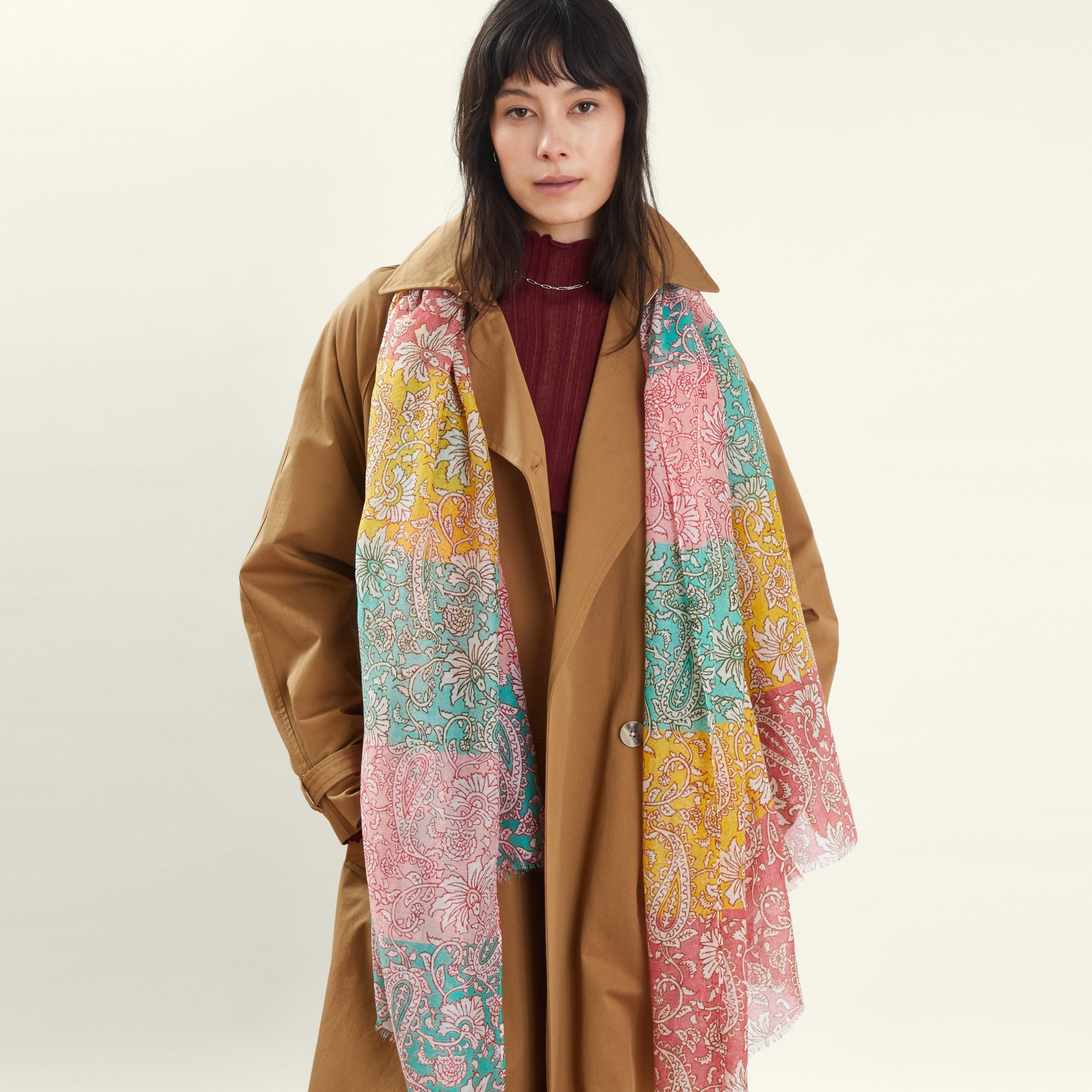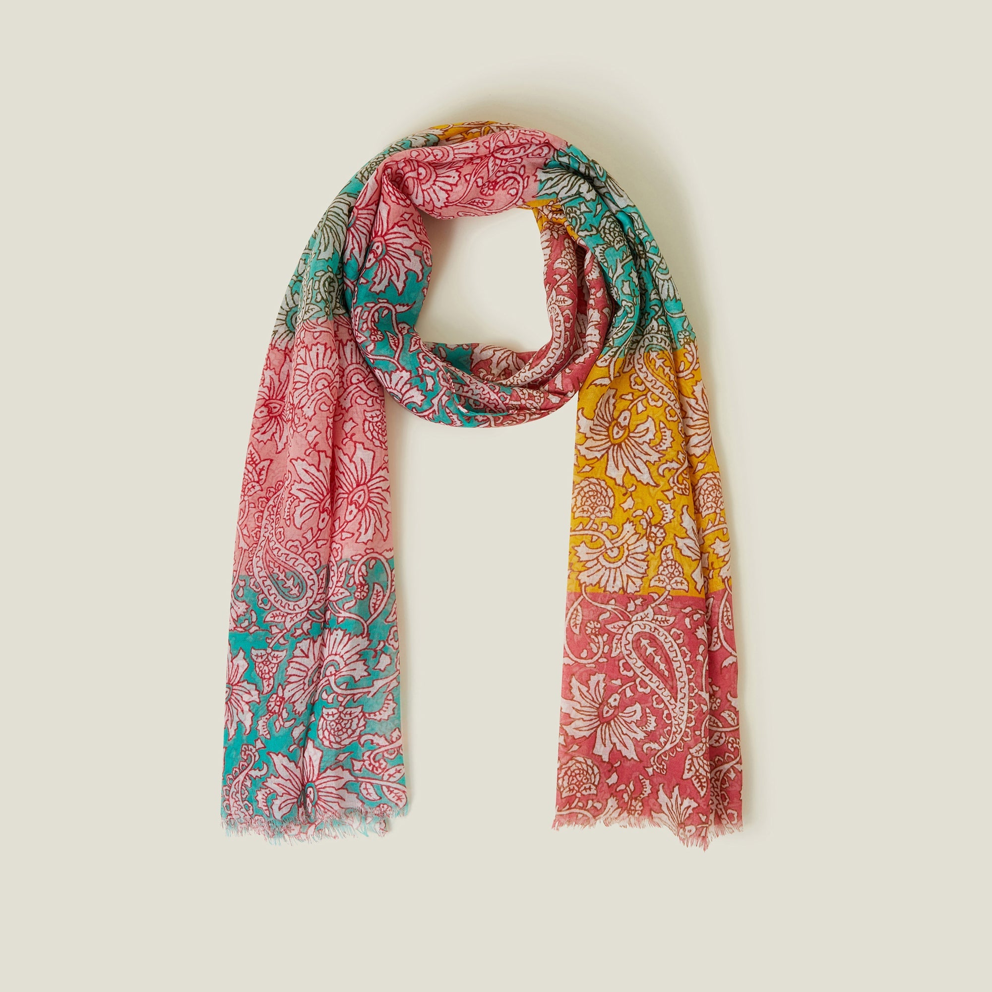 Oh-so boho. Perfect for the warmer months, this lightweight scarf is decorated with floral and paisley motifs over the multicoloured backdrop.