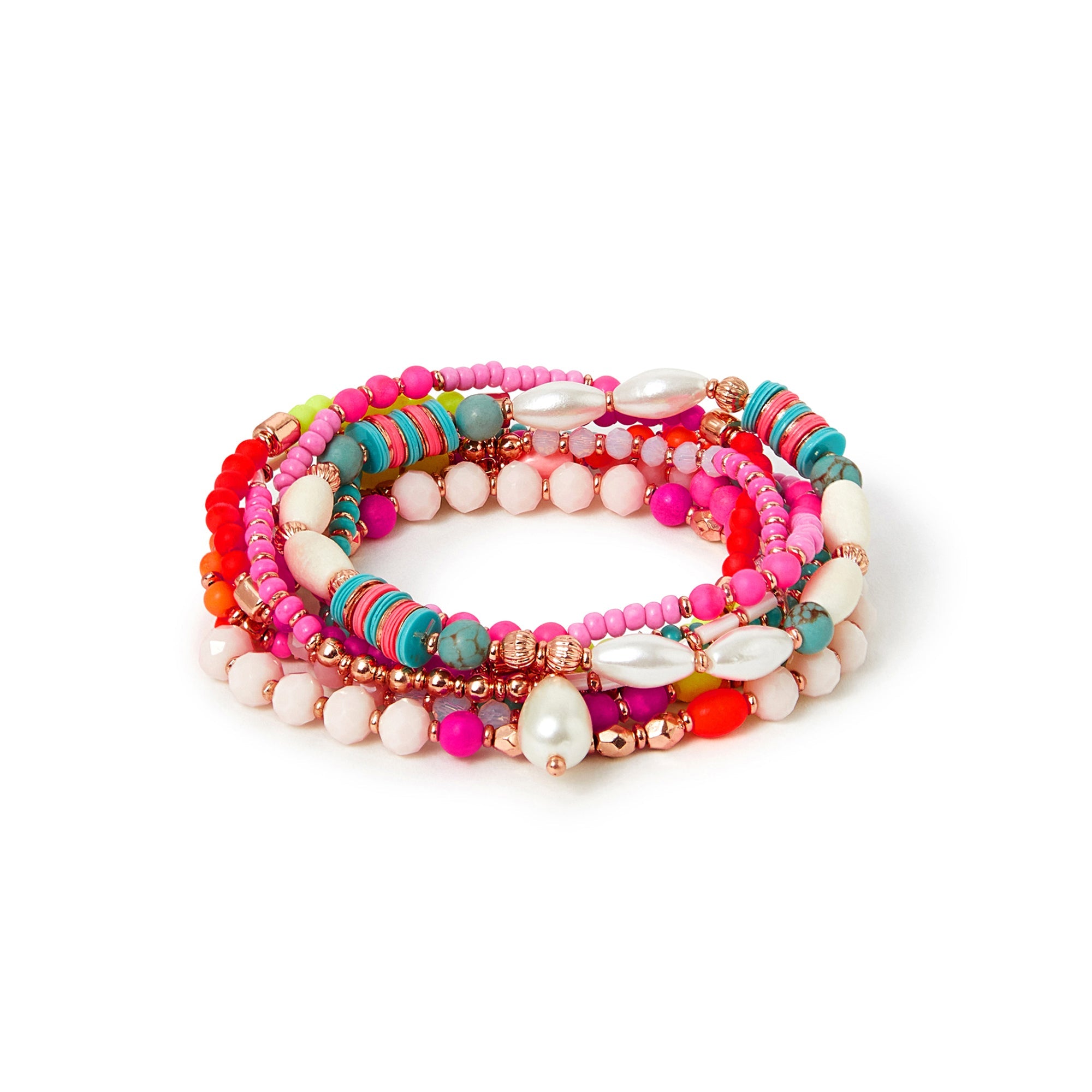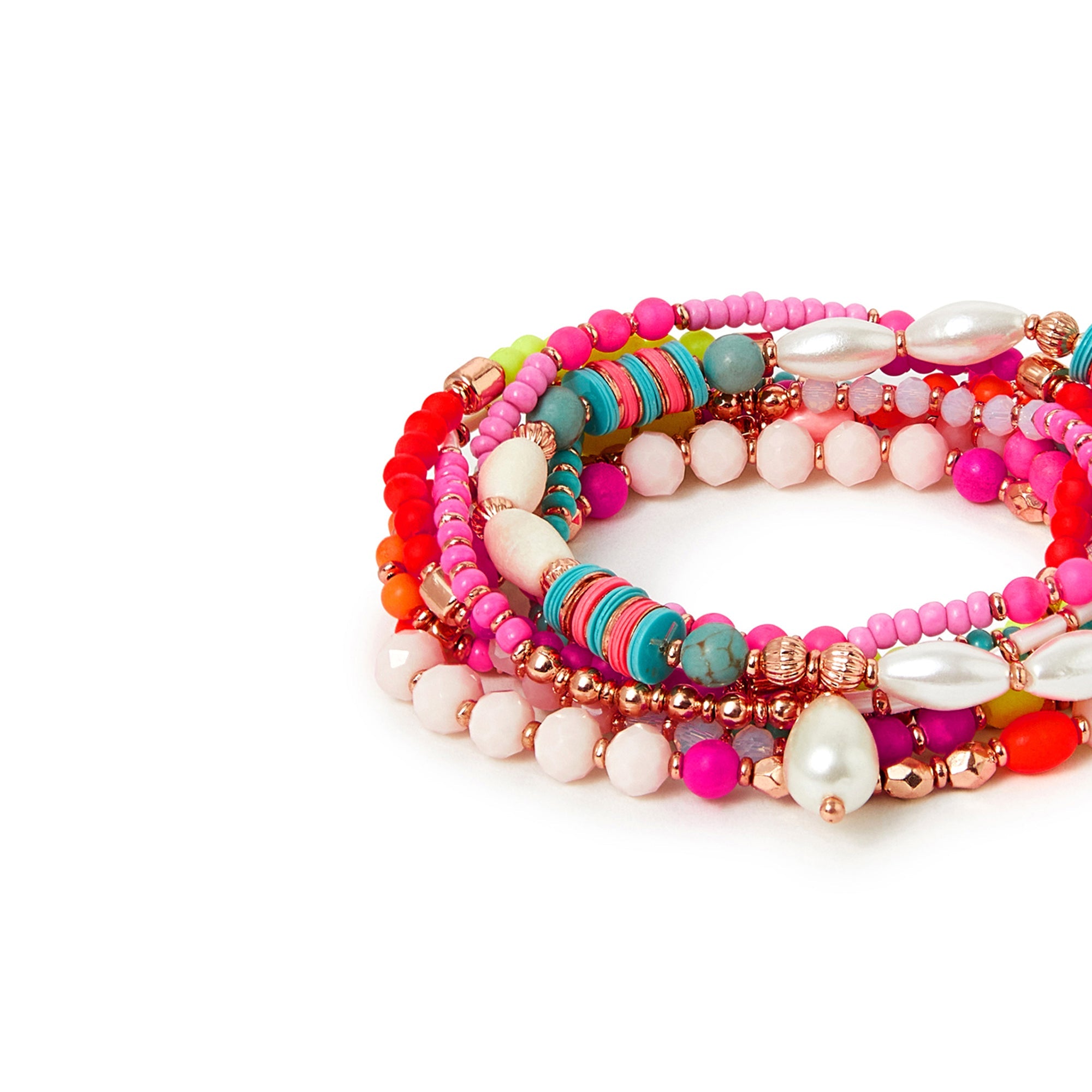Multi Neon Beaded Stretch Bracelet Set of 8