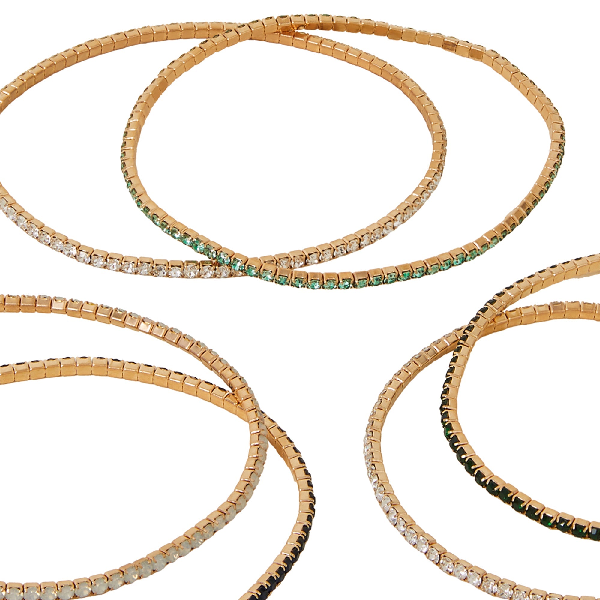 Oozing 90s nostalgia, these diamante bracelets add endless sparkle to your wrist stack. Designed with a cup chain and dipped in a gold-tone finish. Six bracelets included.