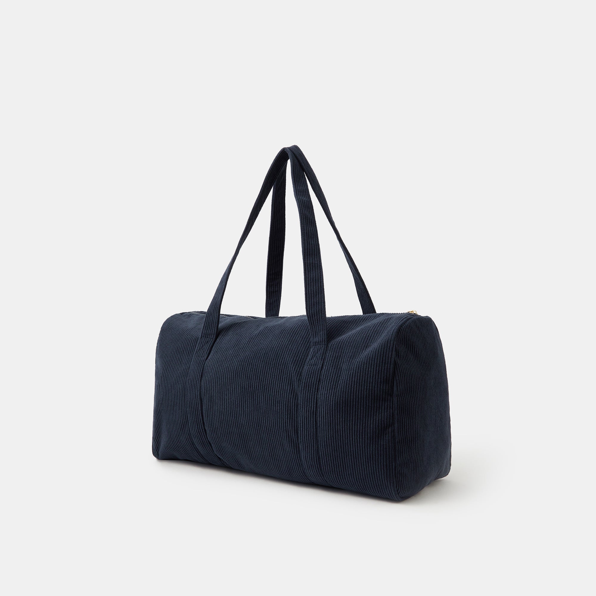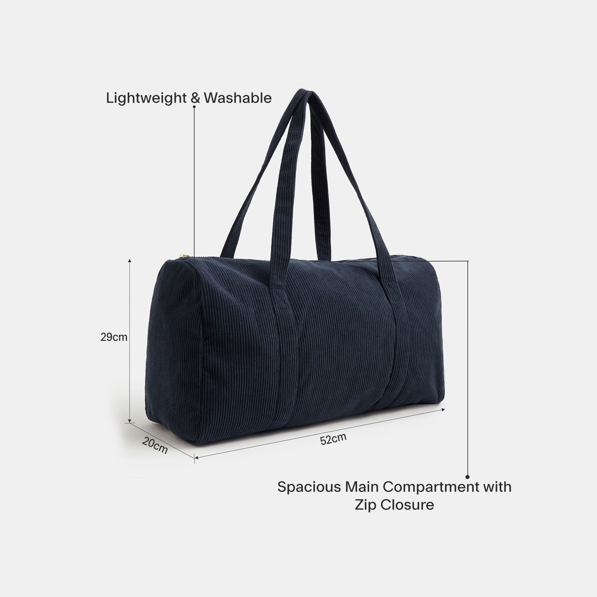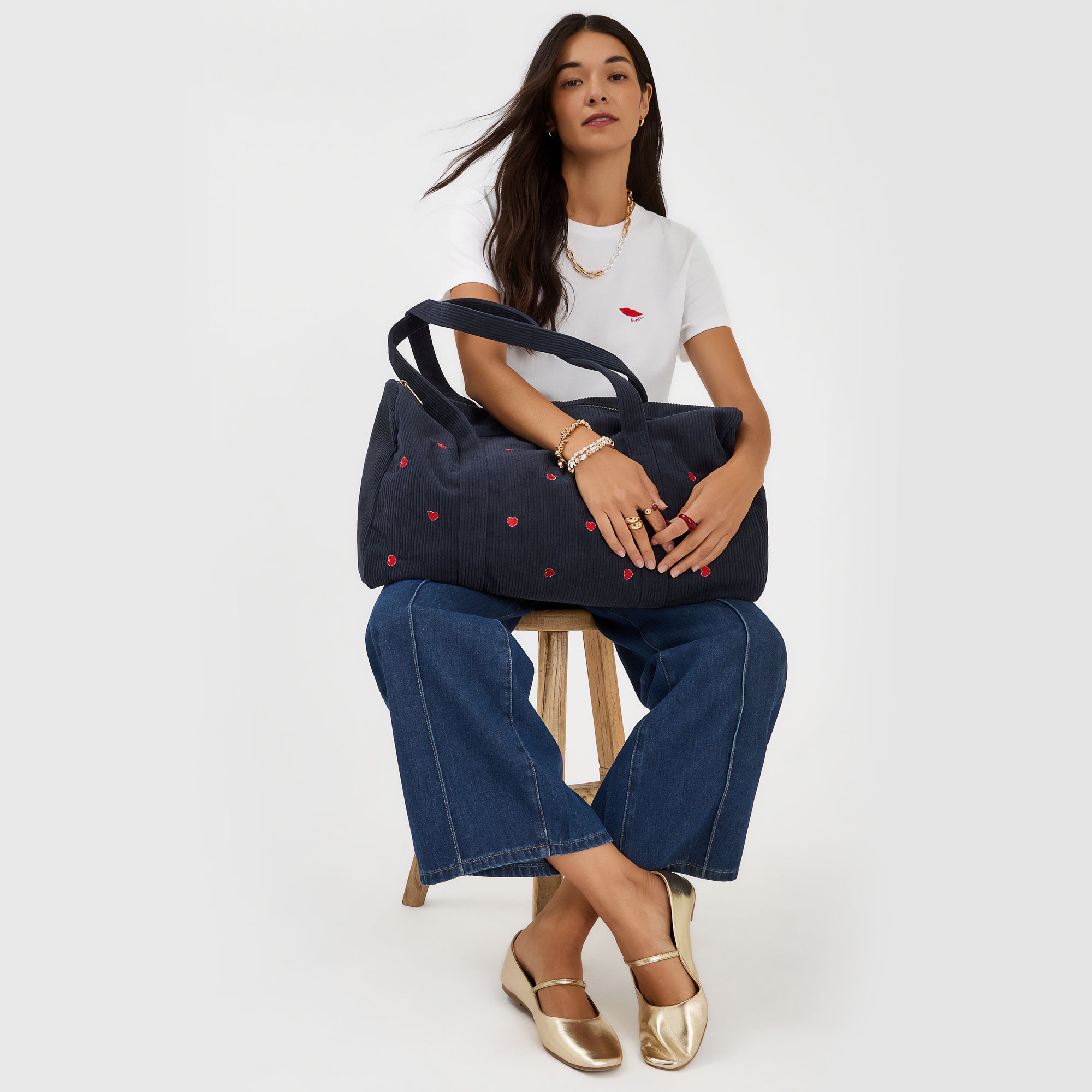 Going somewhere? Perfect for sleepovers or weekends away, this duffle bag is made from soft corduroy with teeny tiny hearts embroidered all-over. Features two shoulder straps, a main zip compartment and small zip pocket inside.