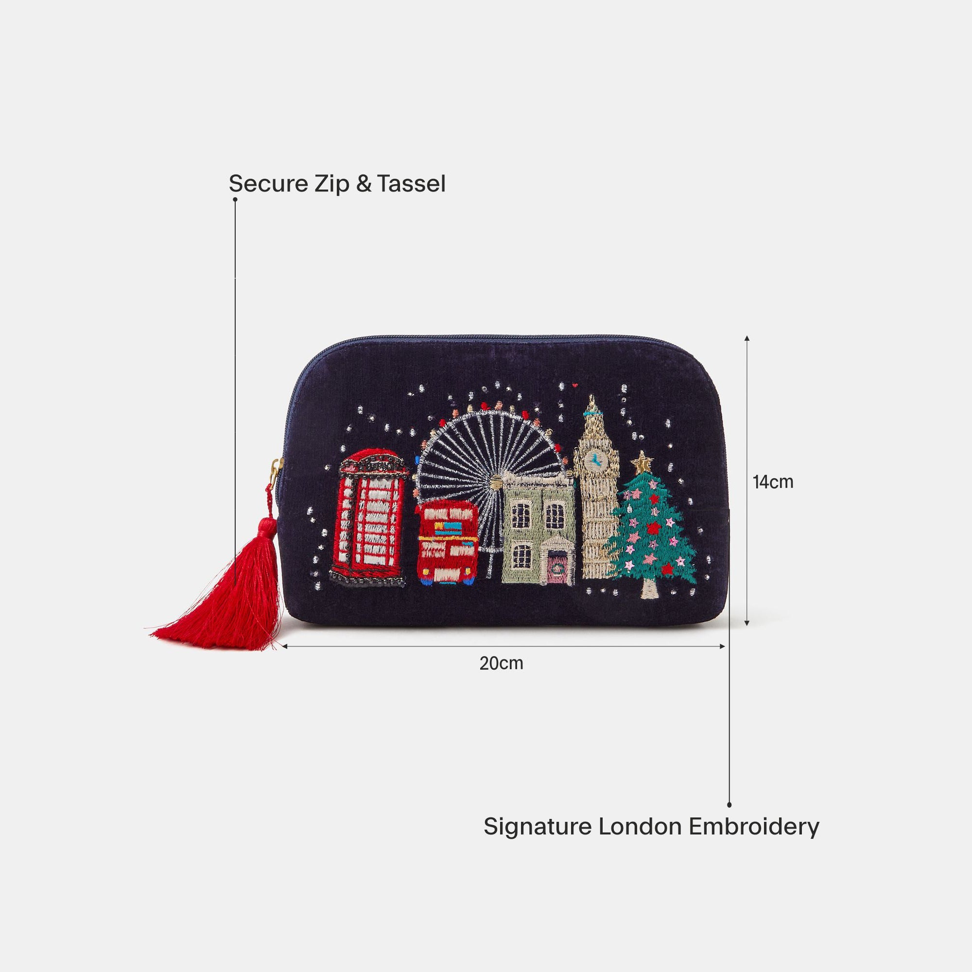 You know I love a London pouch.Stitched with a festive skyline of London's best landmarks, this velvety pouch is made for storing all your beauty bits and bobs. Whether you're heading away for a winter getaway or driving over to your besties' for a post Christmas party sleepover, it's sure to spread joy. Finished with a jolly red tassel on the zip.