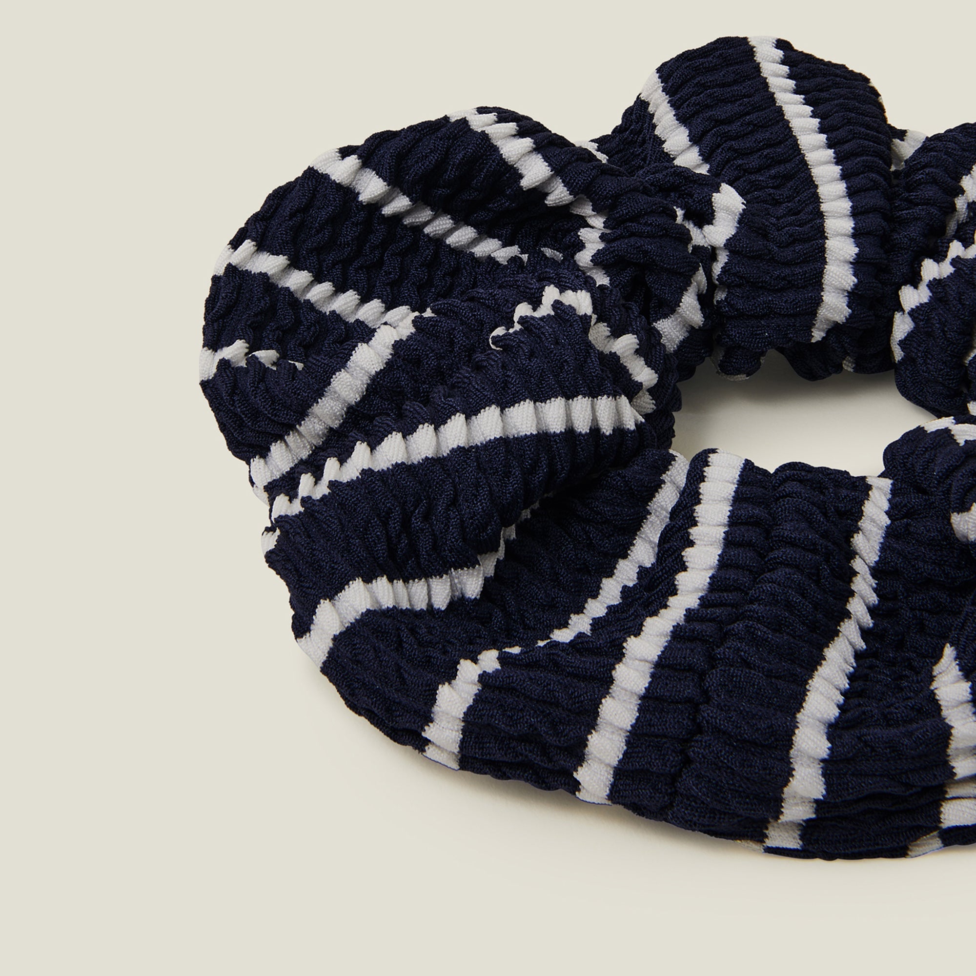 Hello, sailor. Patterned with nautical stripes, this hair scrunchie is designed with a stretchy ribbed finish.