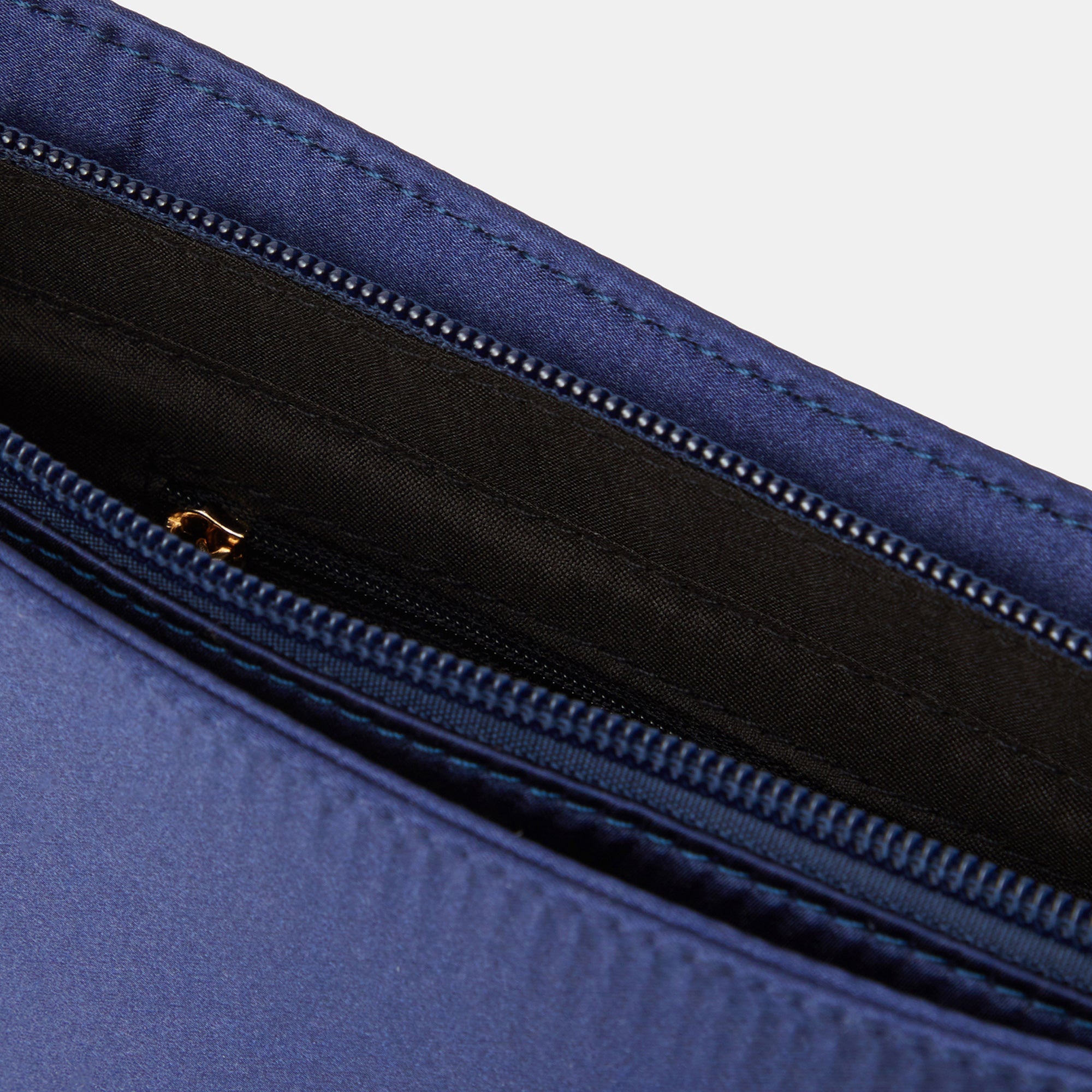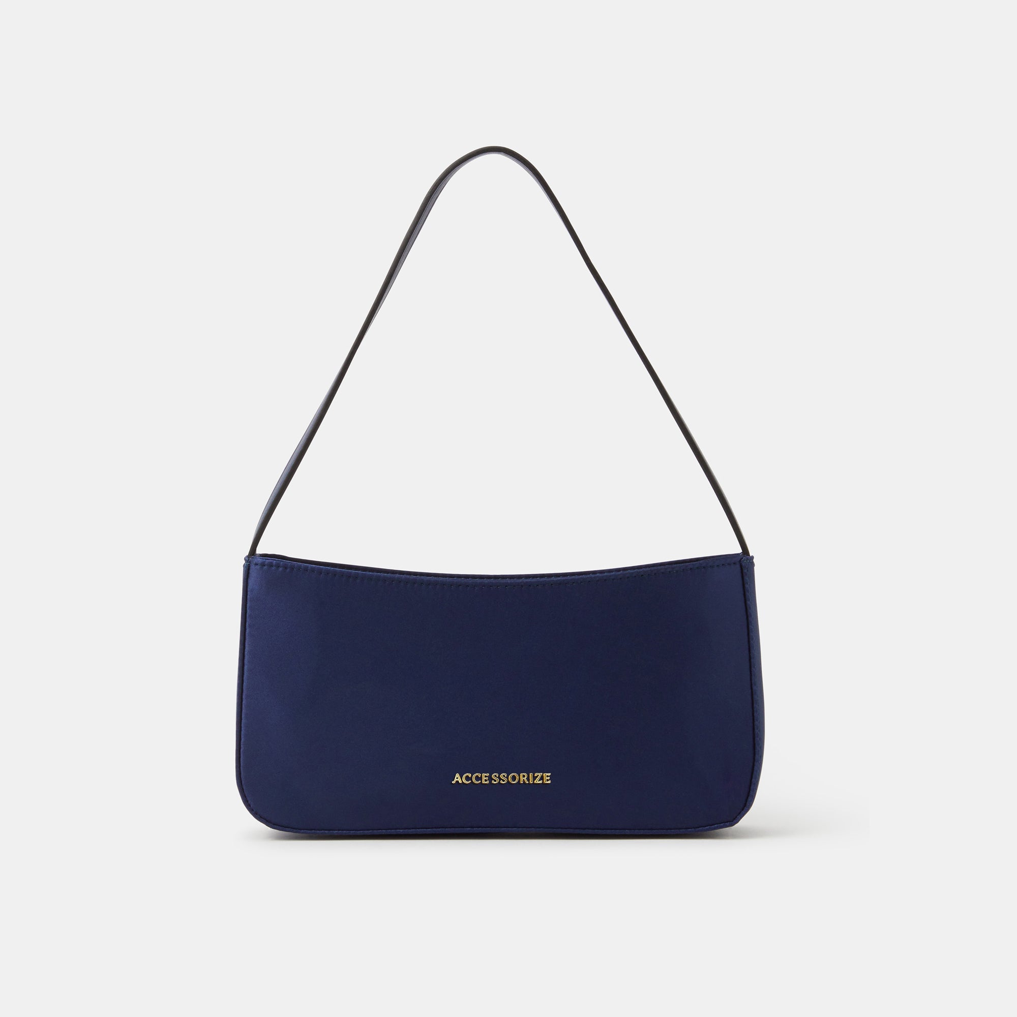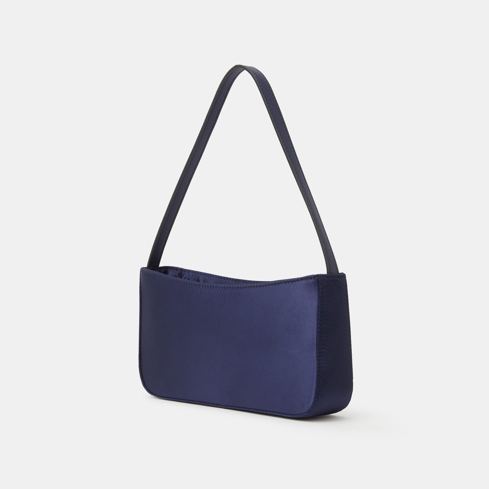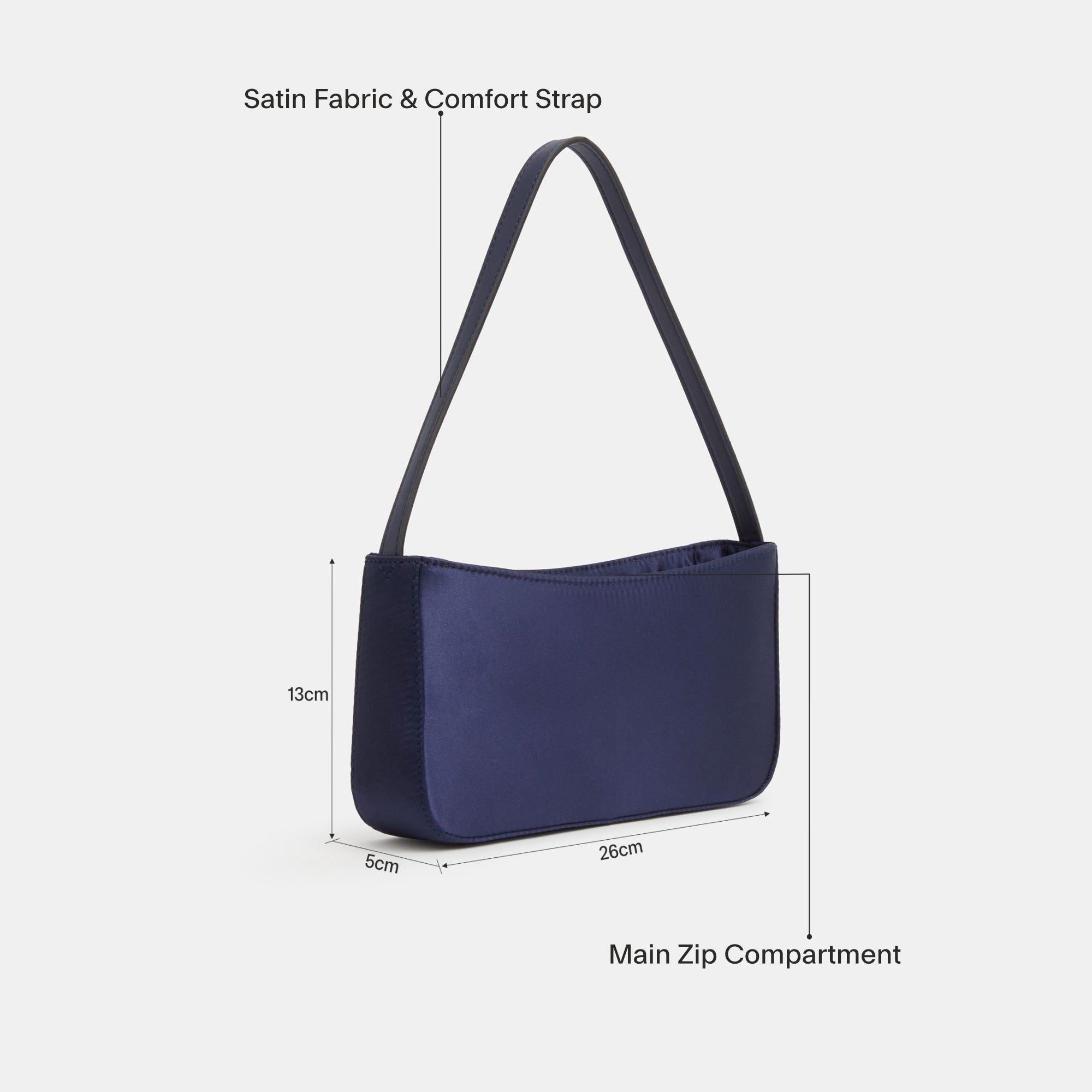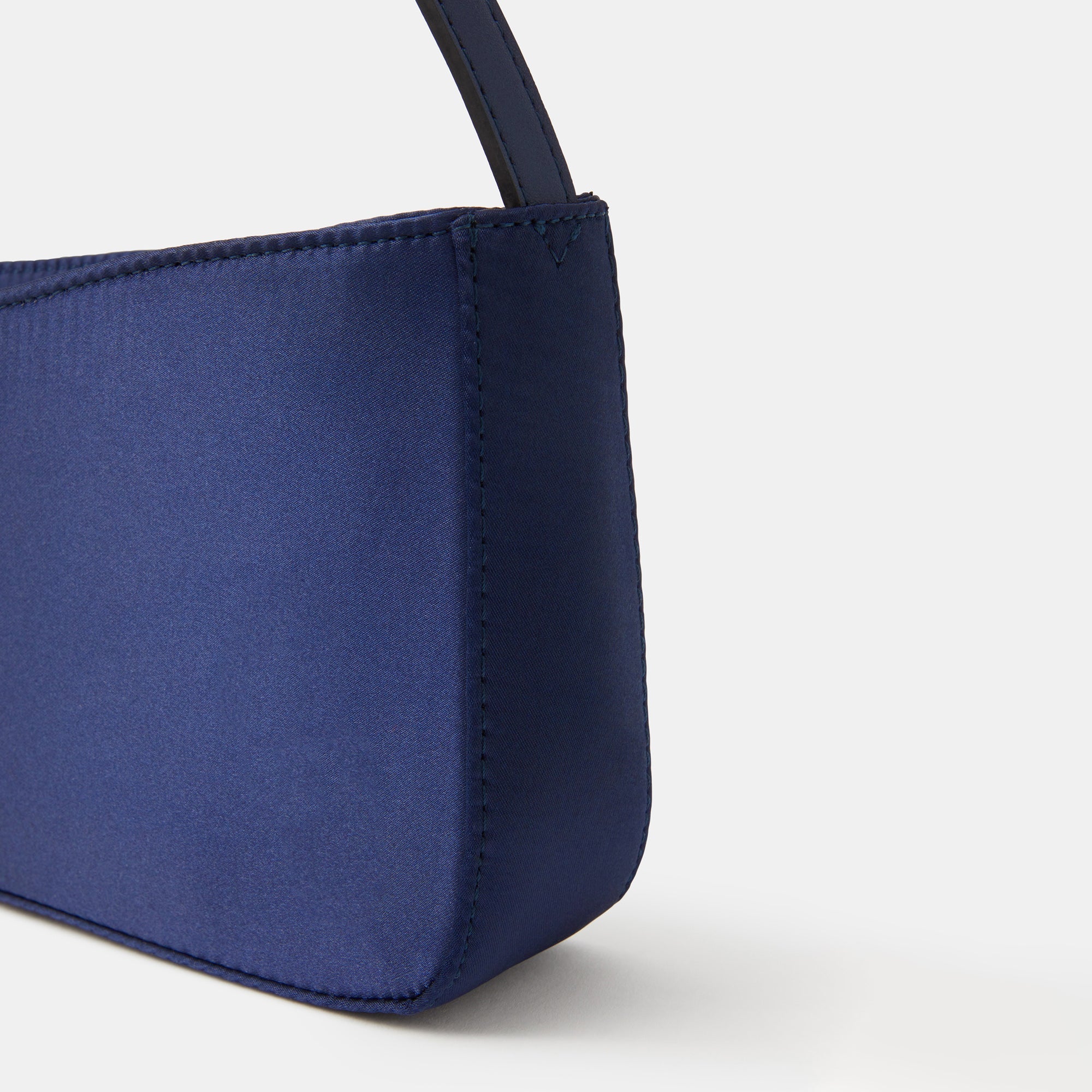 Oh-so-90s! Designed with a satin finish, this shoulder bag's mini profile makes it the perfect piece for nights out on the town. Complete with a zip fastening. Blue
