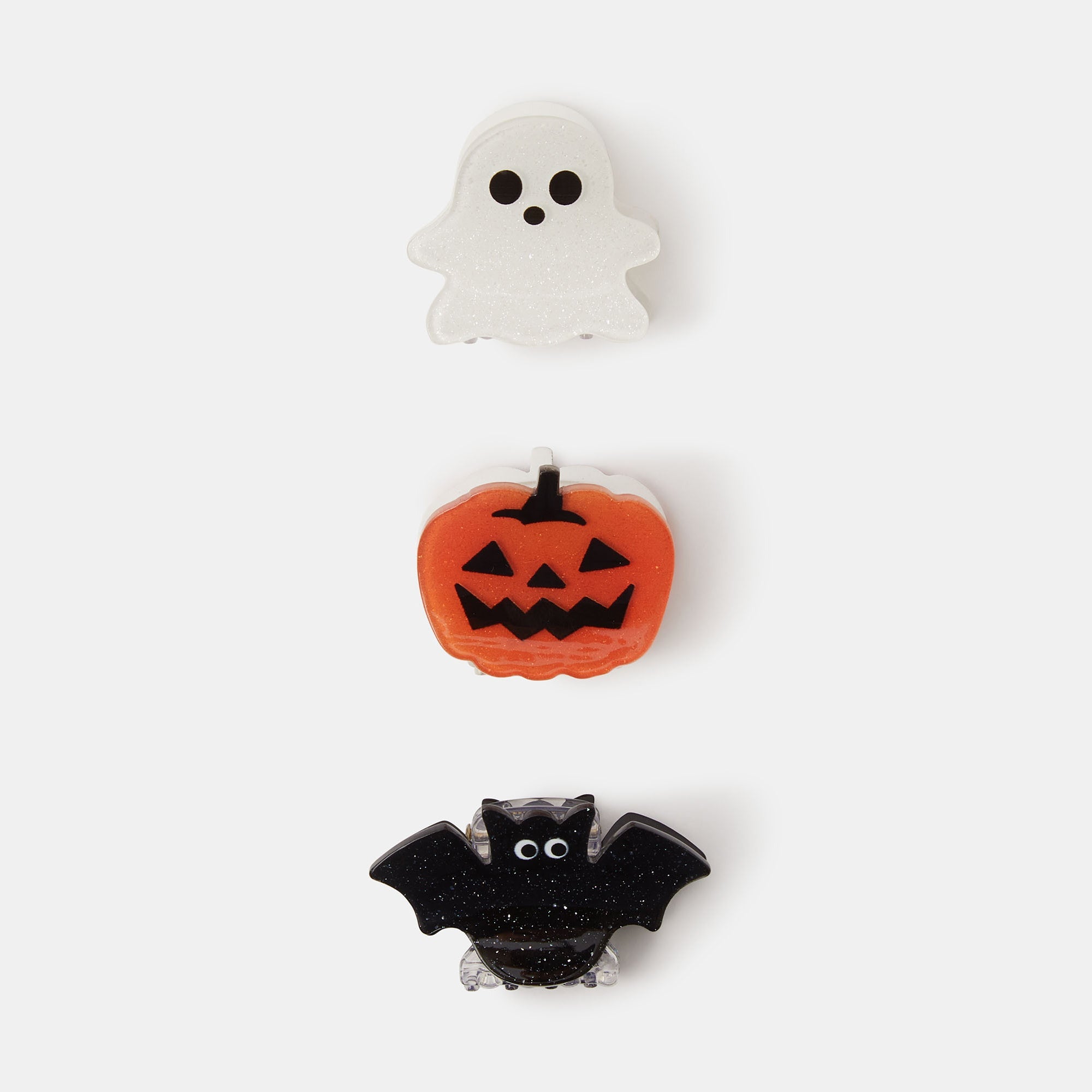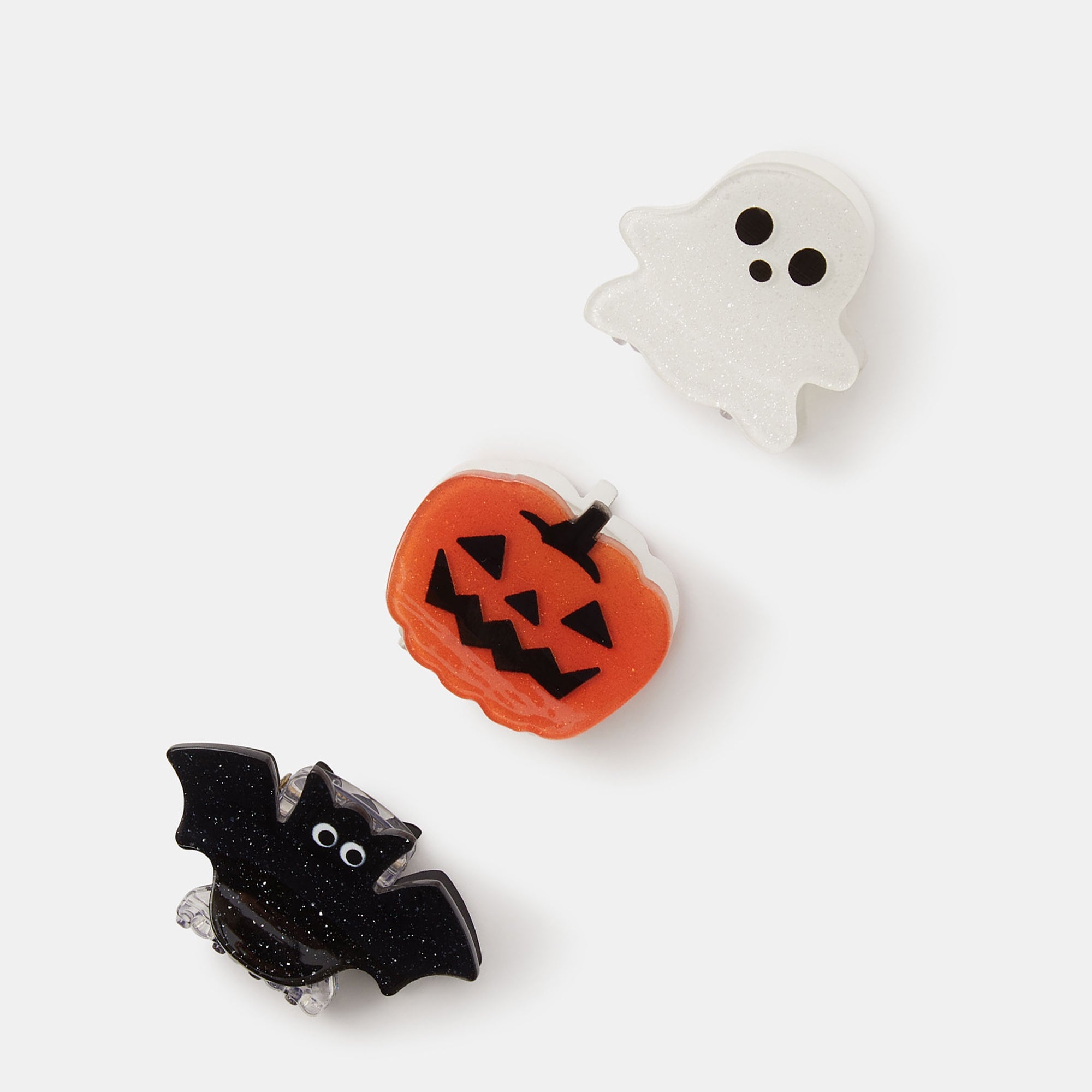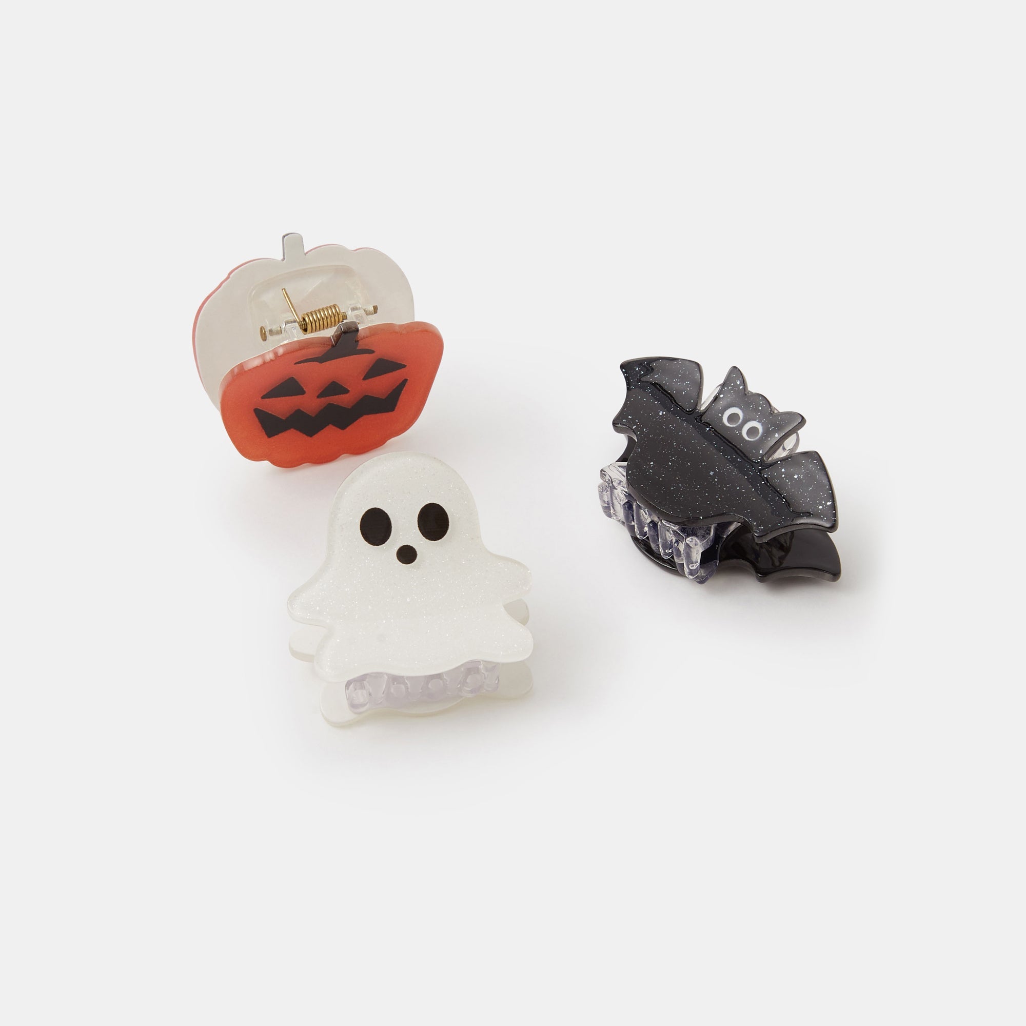 Shaped like a pumpkin, bat and ghost, these spooky claw clips make boo-tiful additions to your hairstyles in October. Three included.