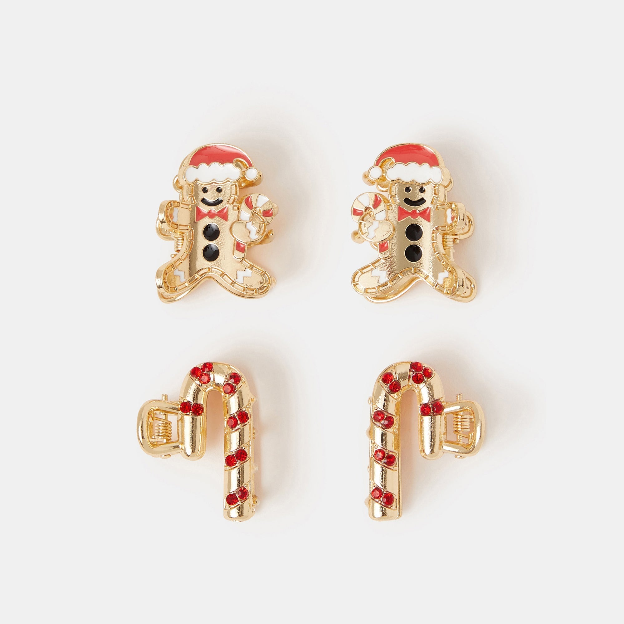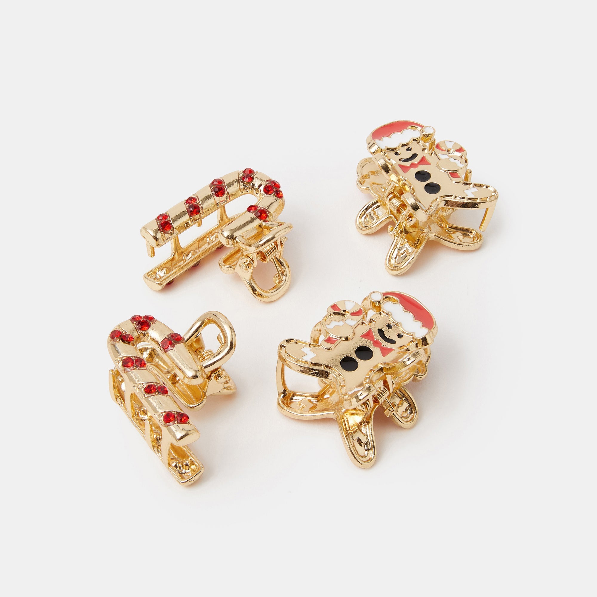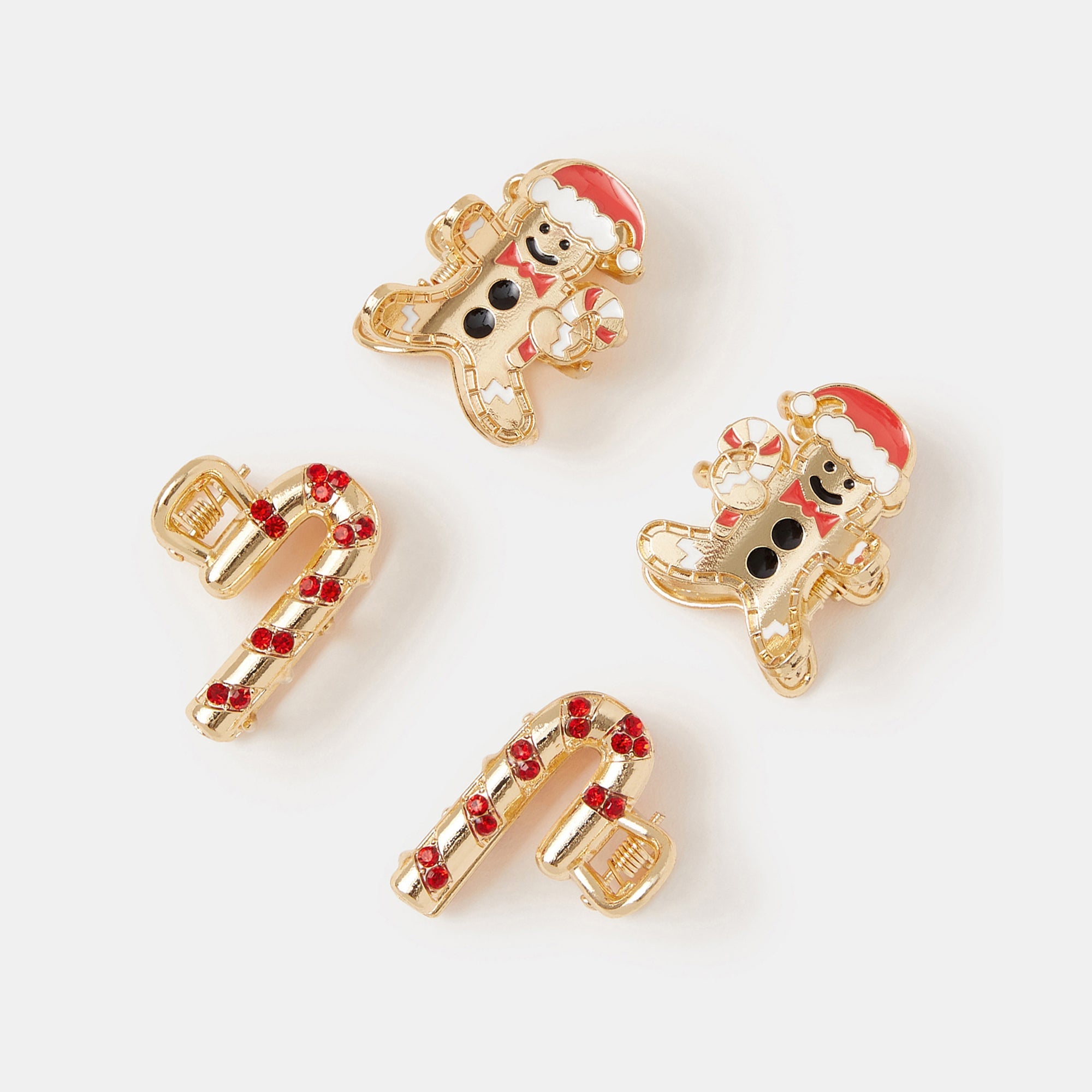 Inspired by all your favourite Christmas treats, these miniature claw clips are the merriest accessories you can have for the festive season. Made from gold-tone metal, the designs include glitzy candy canes and best-dressed gingerbread men. Four included.