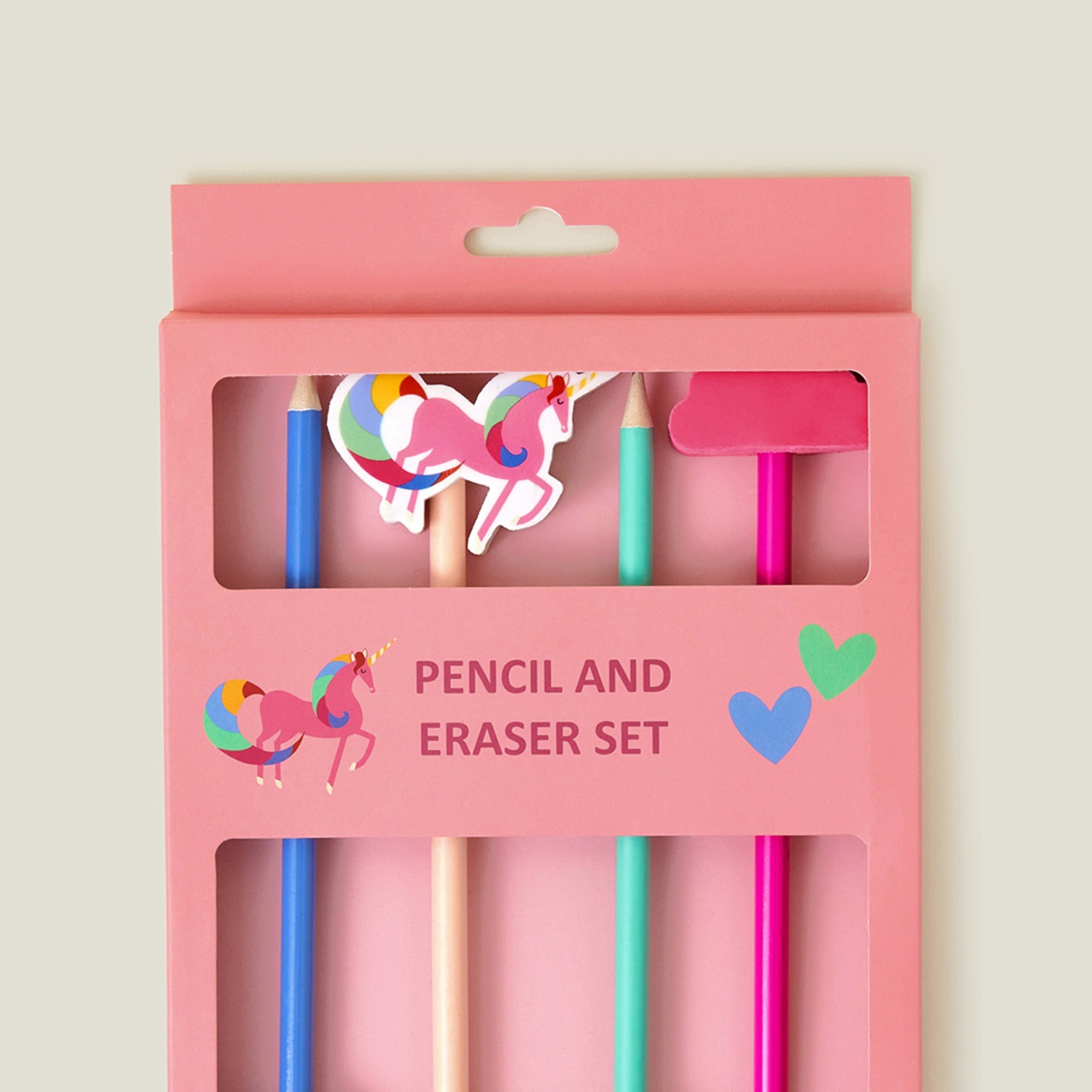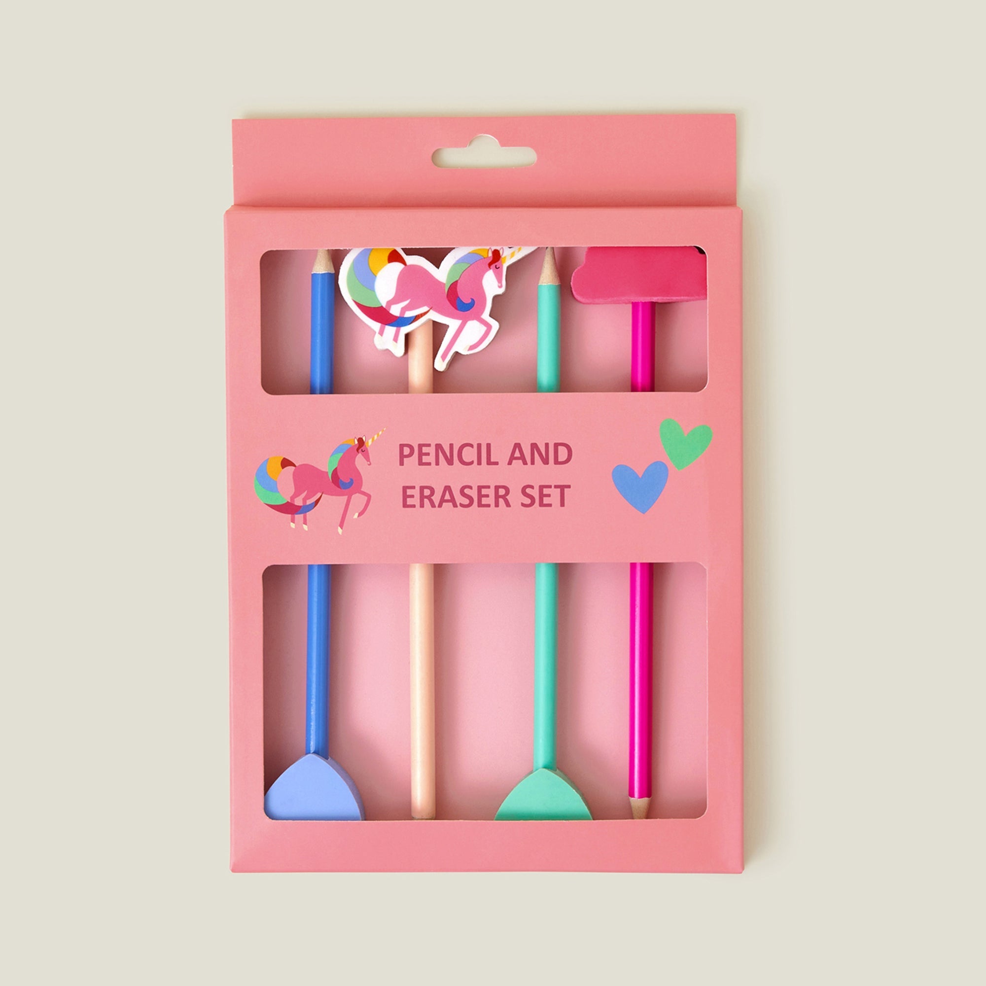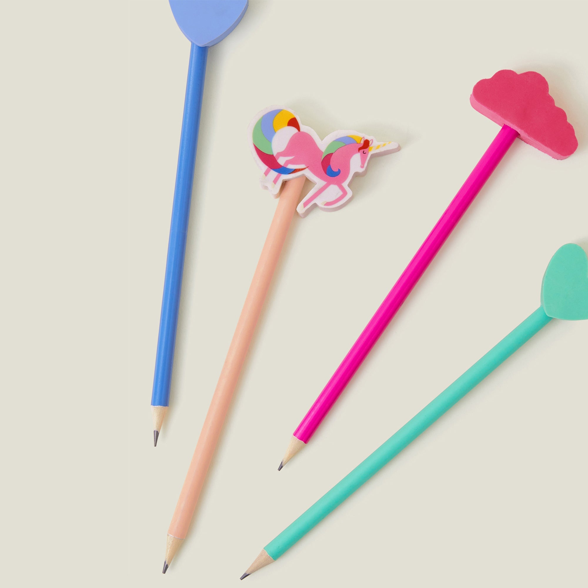 They'll have the coolest pencil case in the class with these pencils to fill it up. Featuring four pieces, each pencil is decorated with an eraser topper. Simply choose from hearts, clouds, and unicorns.