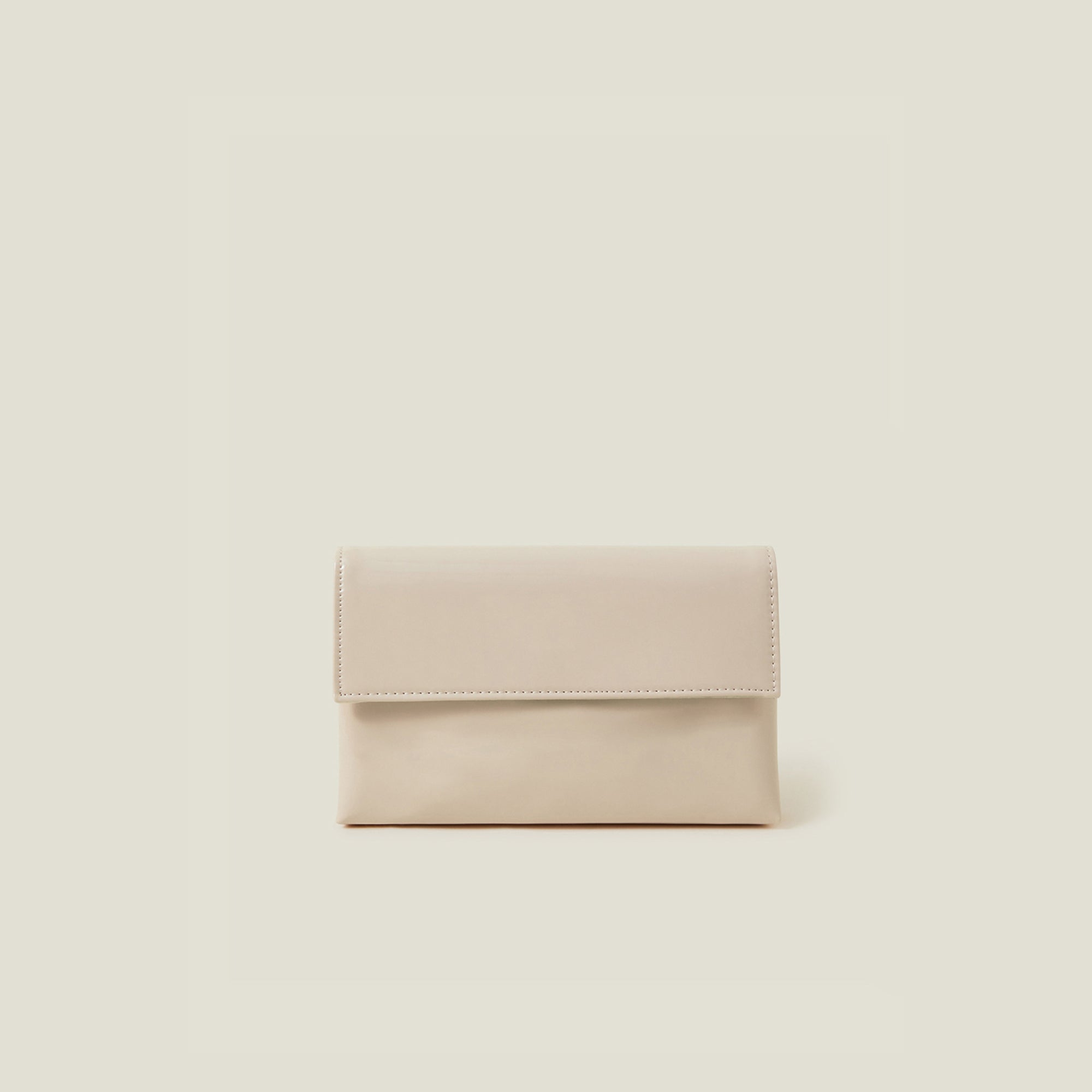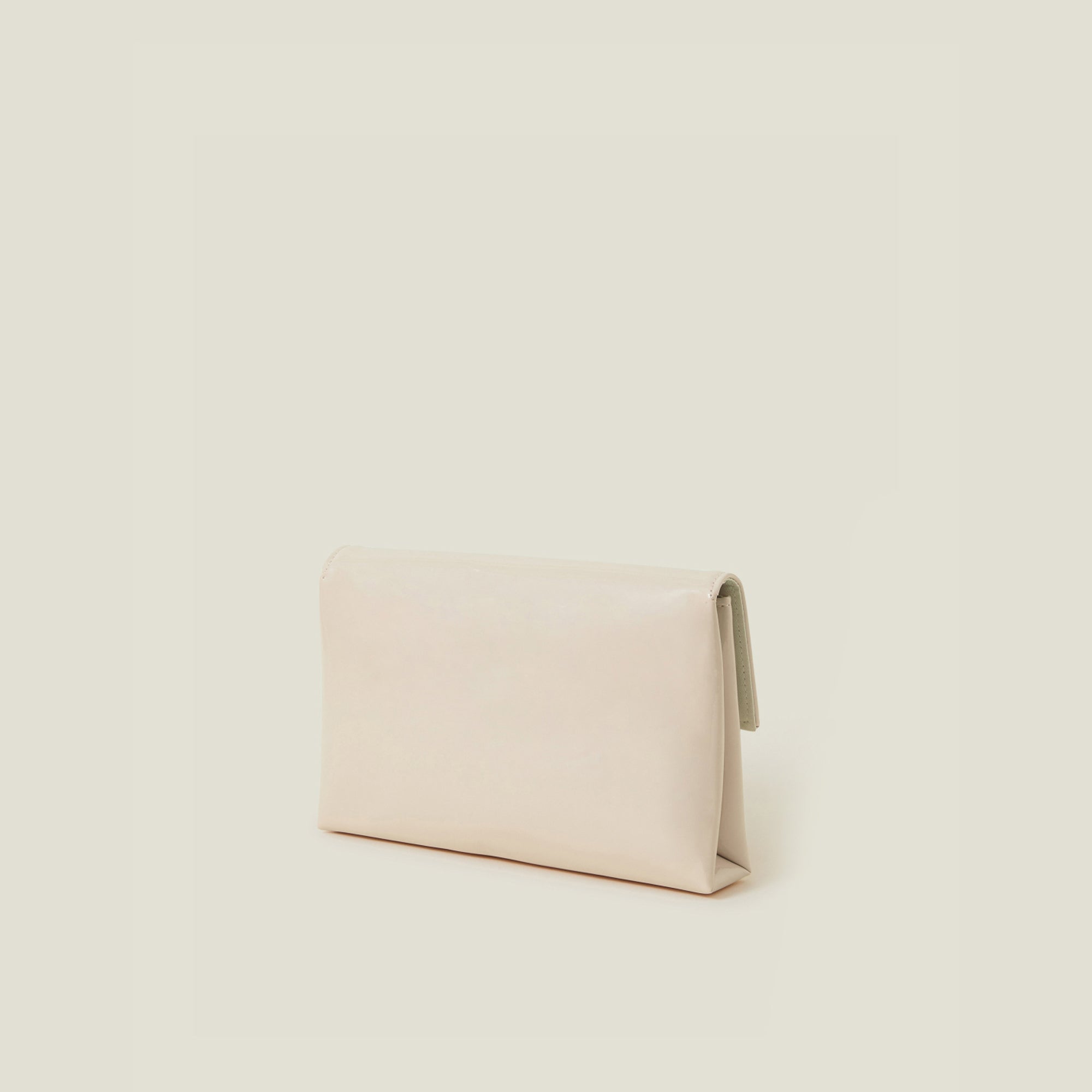 Nude Patent Fold-Over Clutch Bag