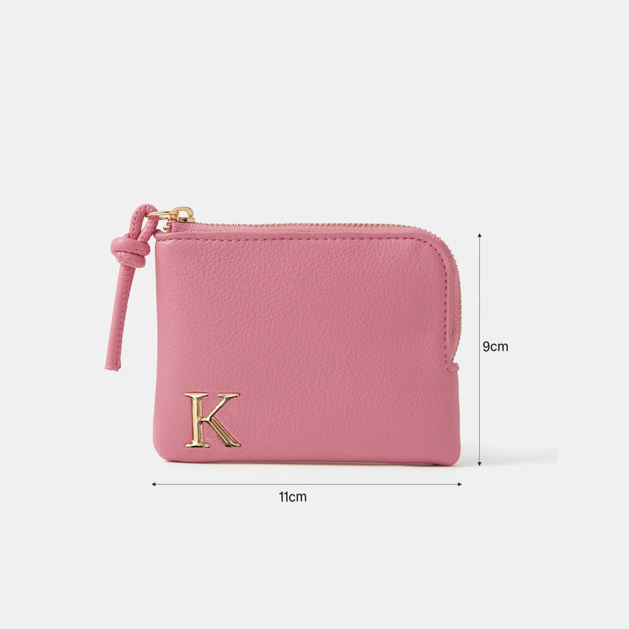 Nothing beats a personalised gift. Designed in faux leather, this coin purse features a simple design with initial hardware on the front. Fastens with a zip. Pink