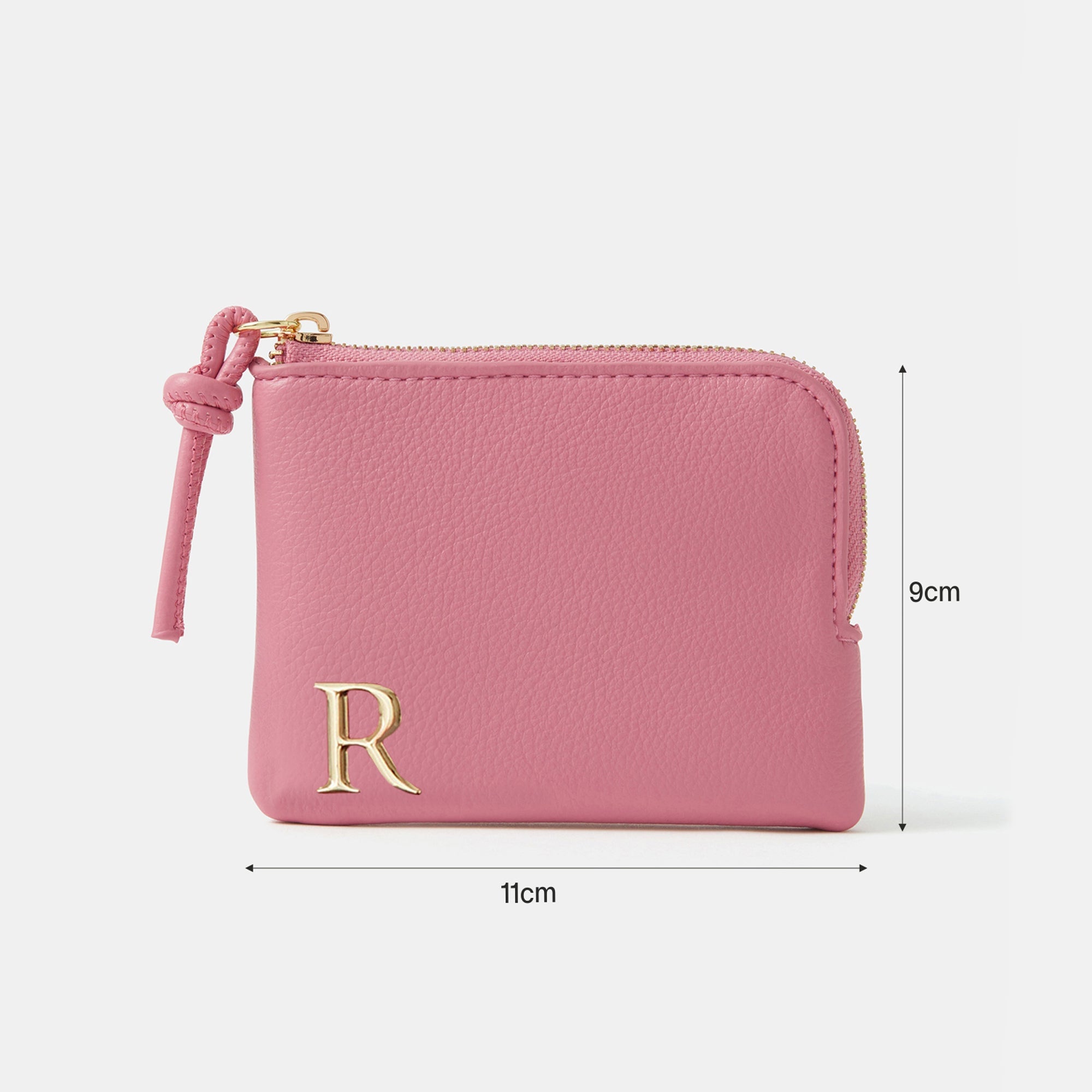 Nothing beats a personalised gift. Designed in faux leather, this coin purse features a simple design with initial hardware on the front. Fastens with a zip. Pink