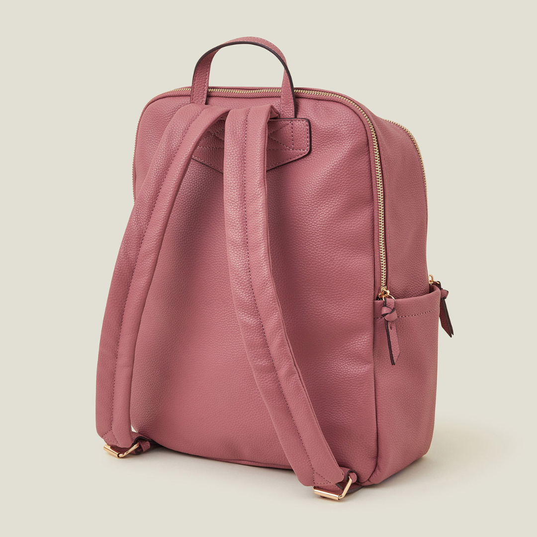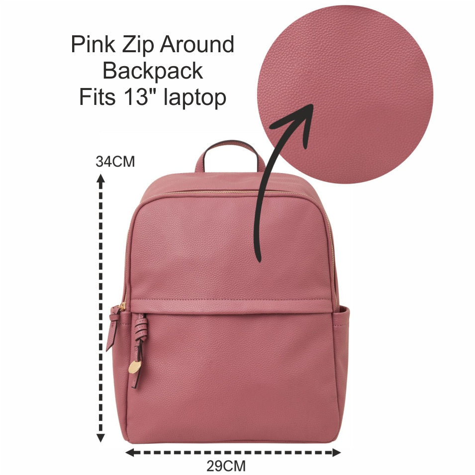 A bag appropriate for smart and casual? From office commutes to university lectures, this zip-around backpack is designed in soft faux leather and features various pockets to hold all your essentials. Keep small laptops and electronics in the slim compartment at the back, whilst your flask and umbrella sit perfectly in the side pockets. Finished with a top-handle and wrap zip pull.