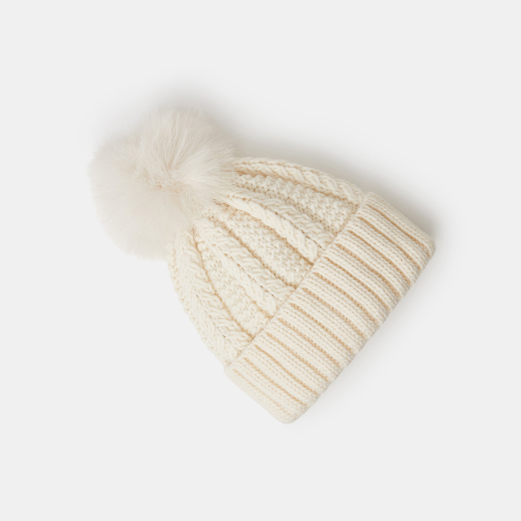Best paired with bonfires and Christmas markets, this chunky knit beanie features a fluffy pom-pom top and classic turn-up brim. Cream