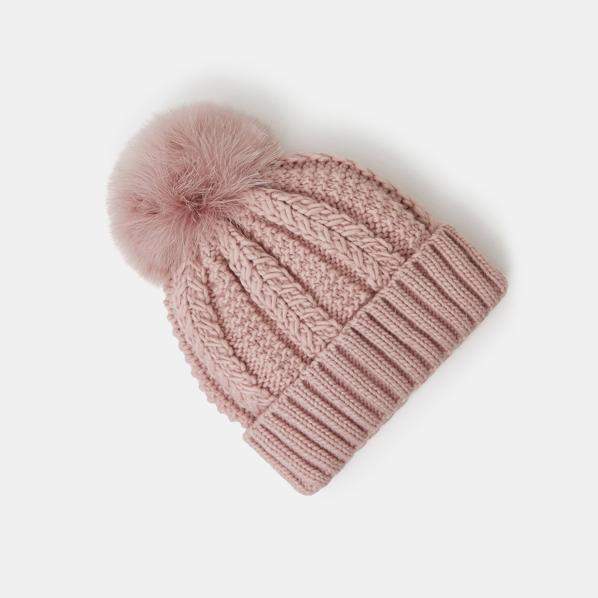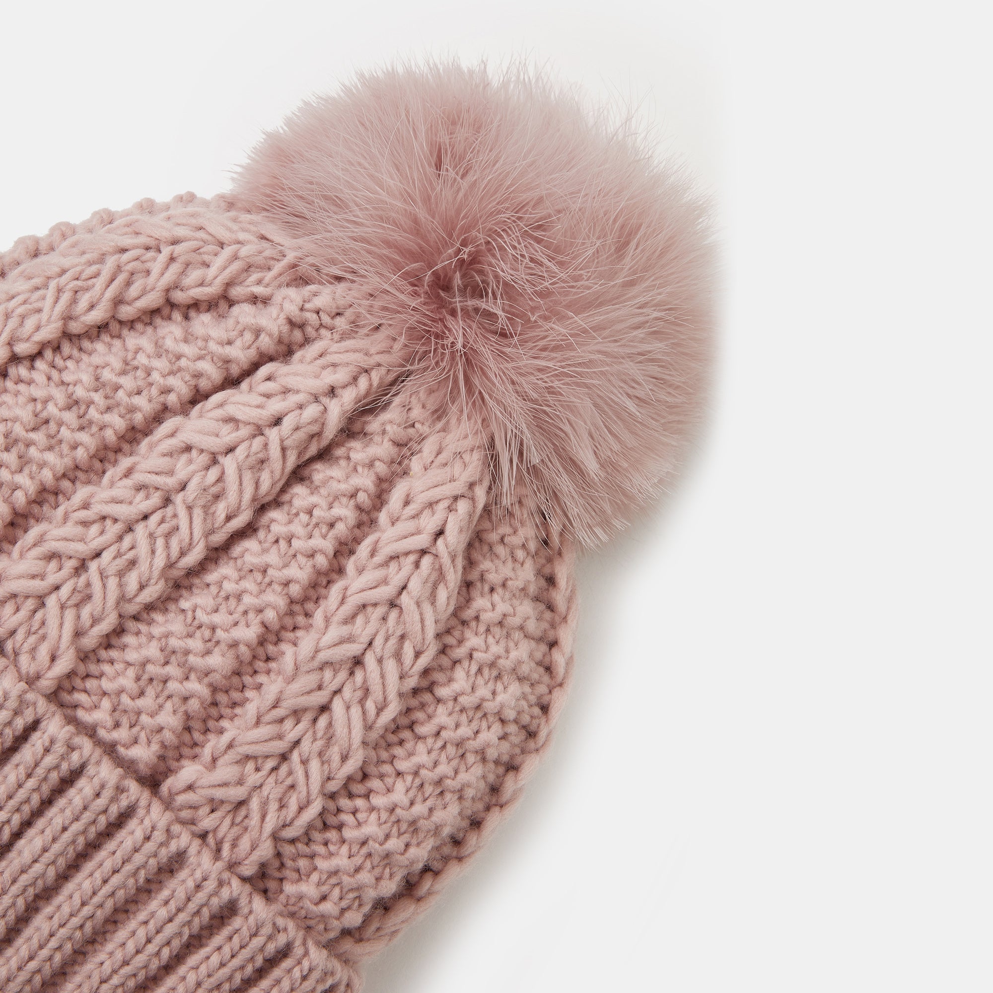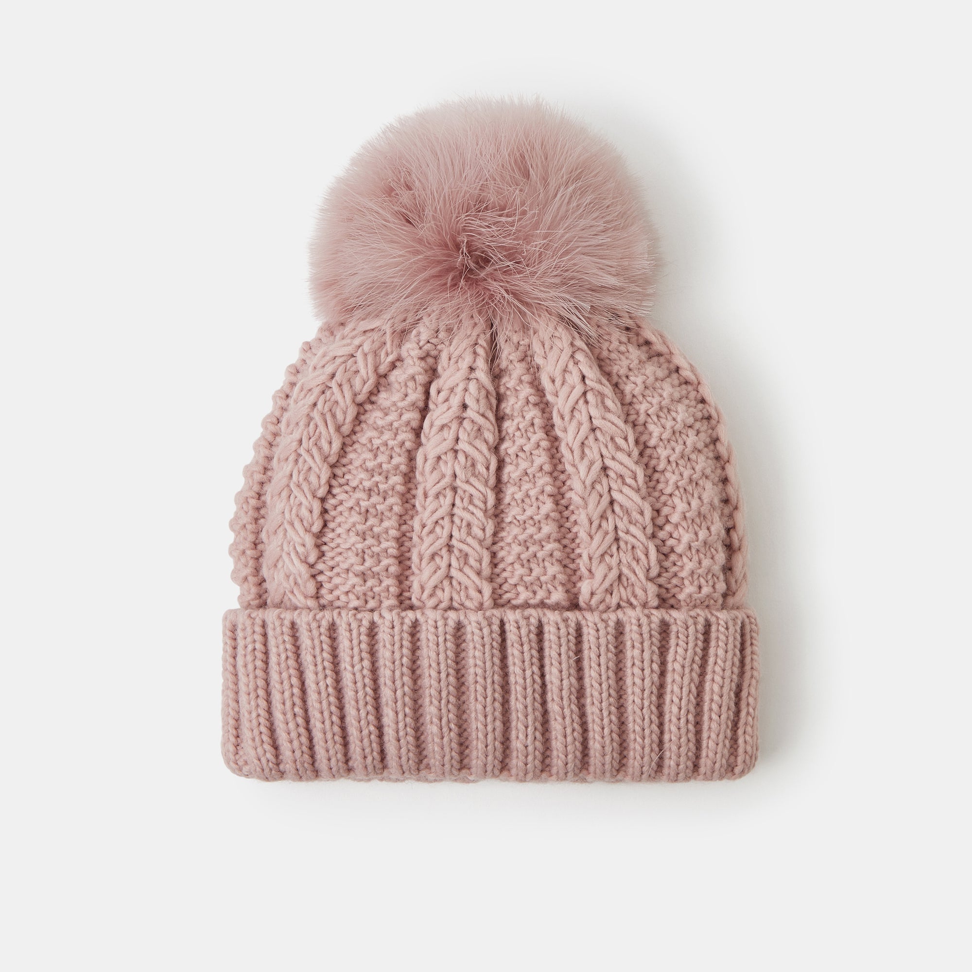 Best paired with bonfires and Christmas markets, this chunky knit beanie features a fluffy pom-pom top and classic turn-up brim. Pink