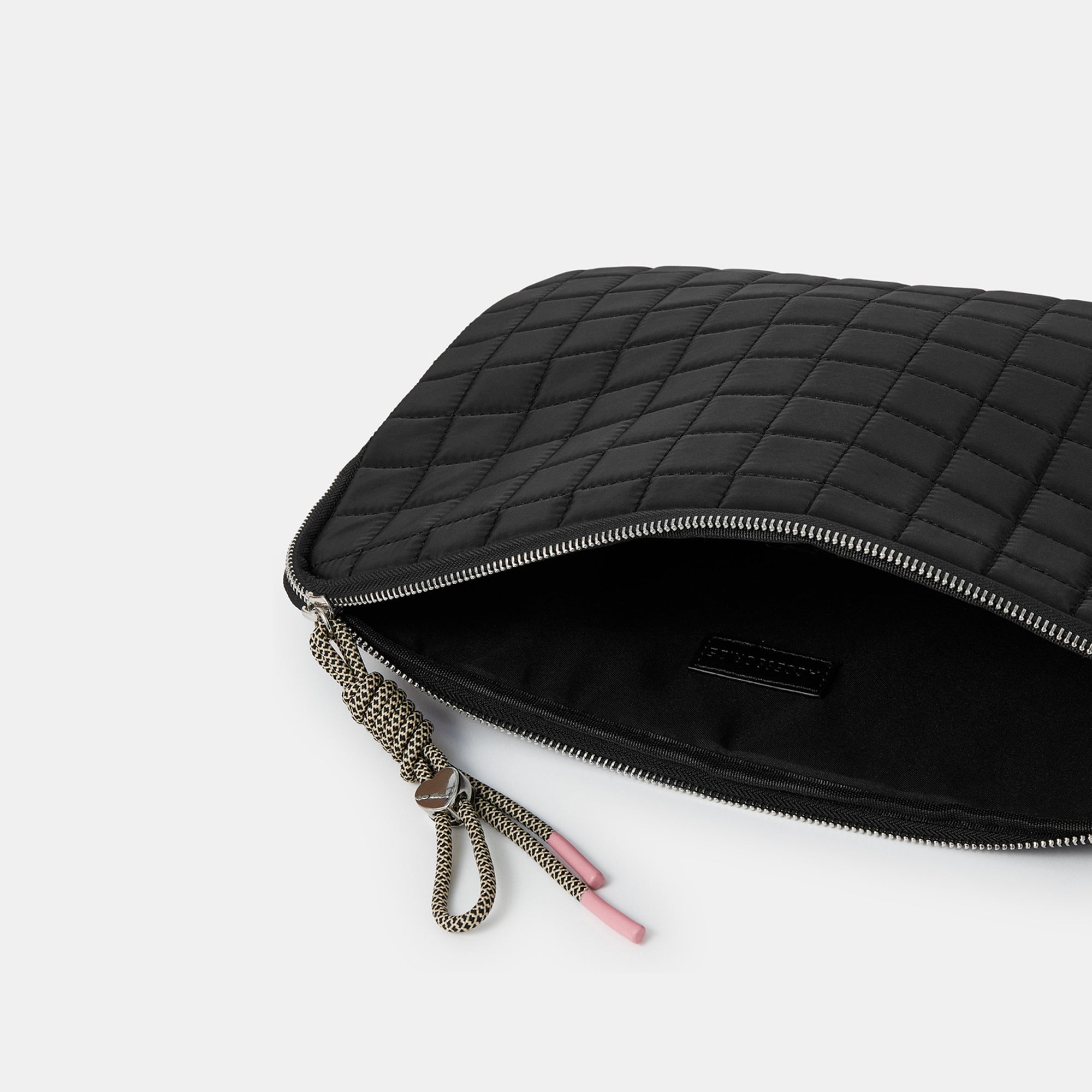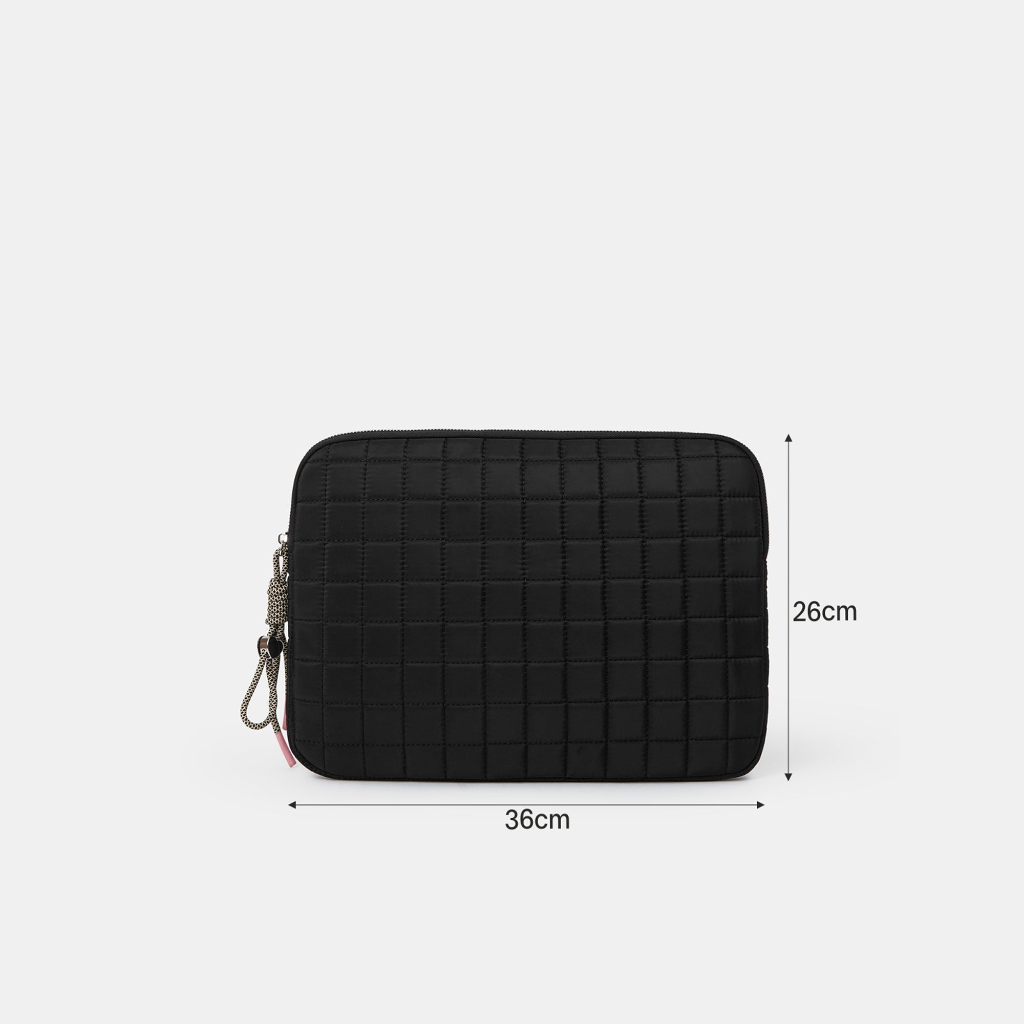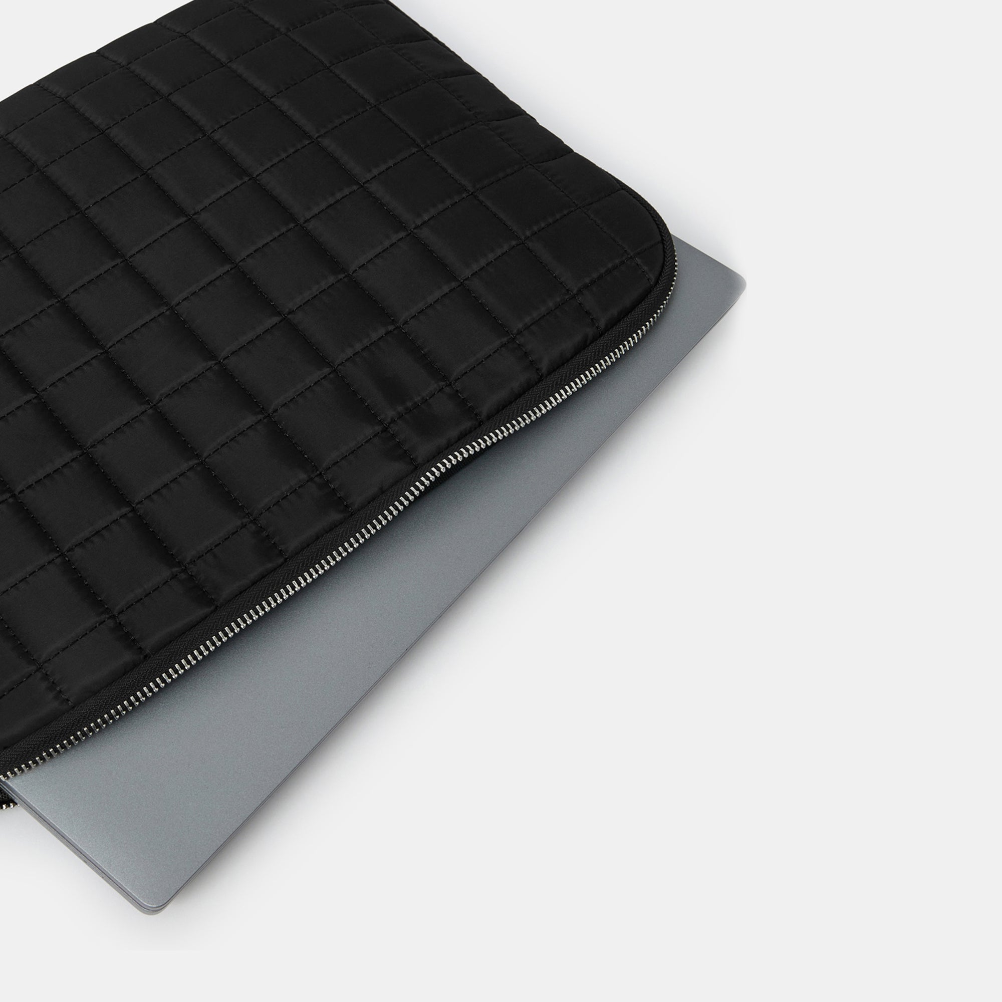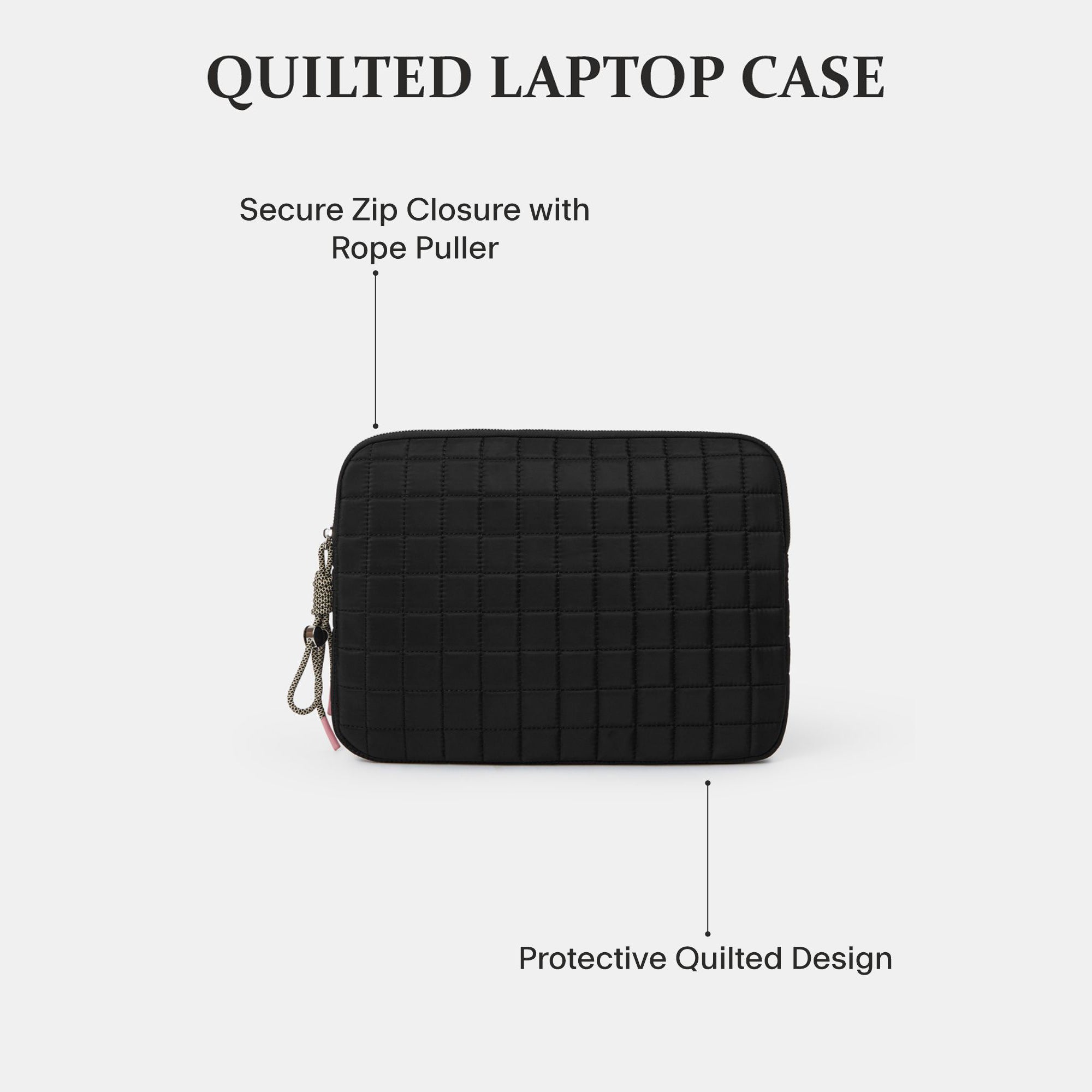 Protect your tech in style with this Quilted Laptop Case. Designed in London, it features a sleek black quilted finish that adds a touch of sophistication to your everyday work or travel routine. Lightweight and durable, this case offers reliable protection for your laptop or tablet while remaining chic enough to carry on its own or slip into a tote. Perfect for work, university, or on-the-go lifestyles.