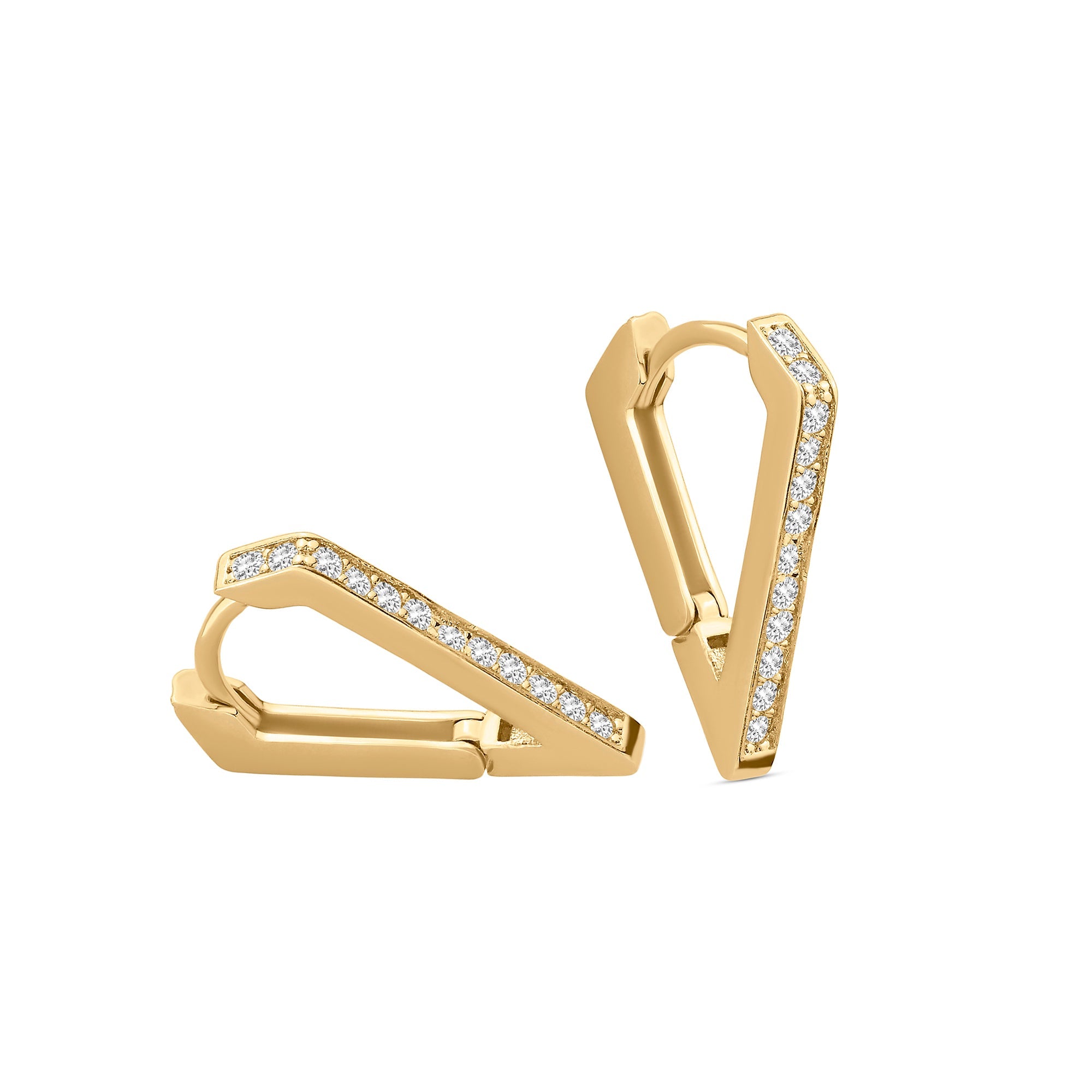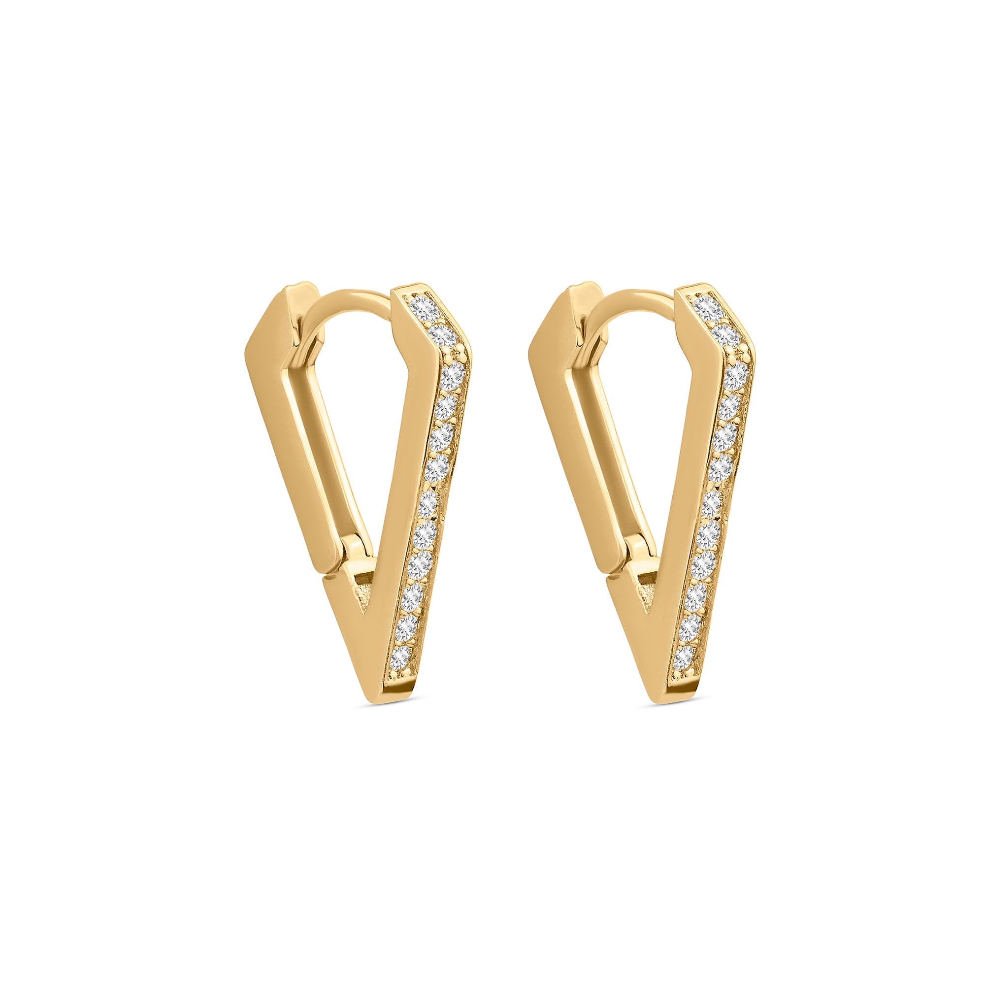 Real Gold Plated Cubic Zirconia Triangle Hoops Earrings