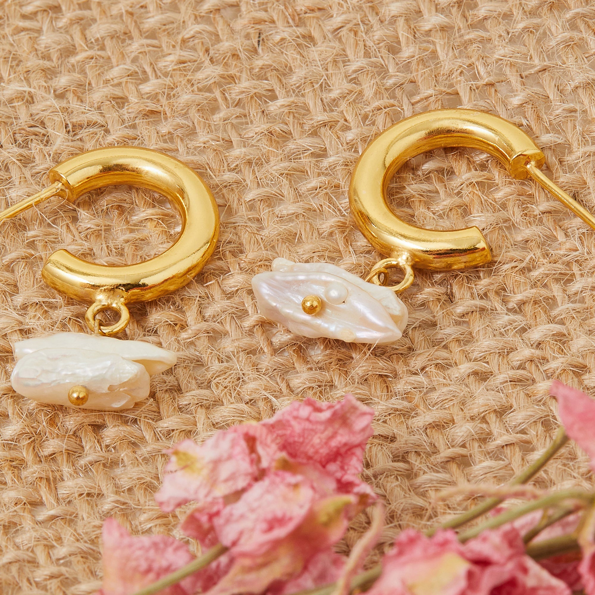 Real Gold Plated Keshi Pearl Hoop Earrings