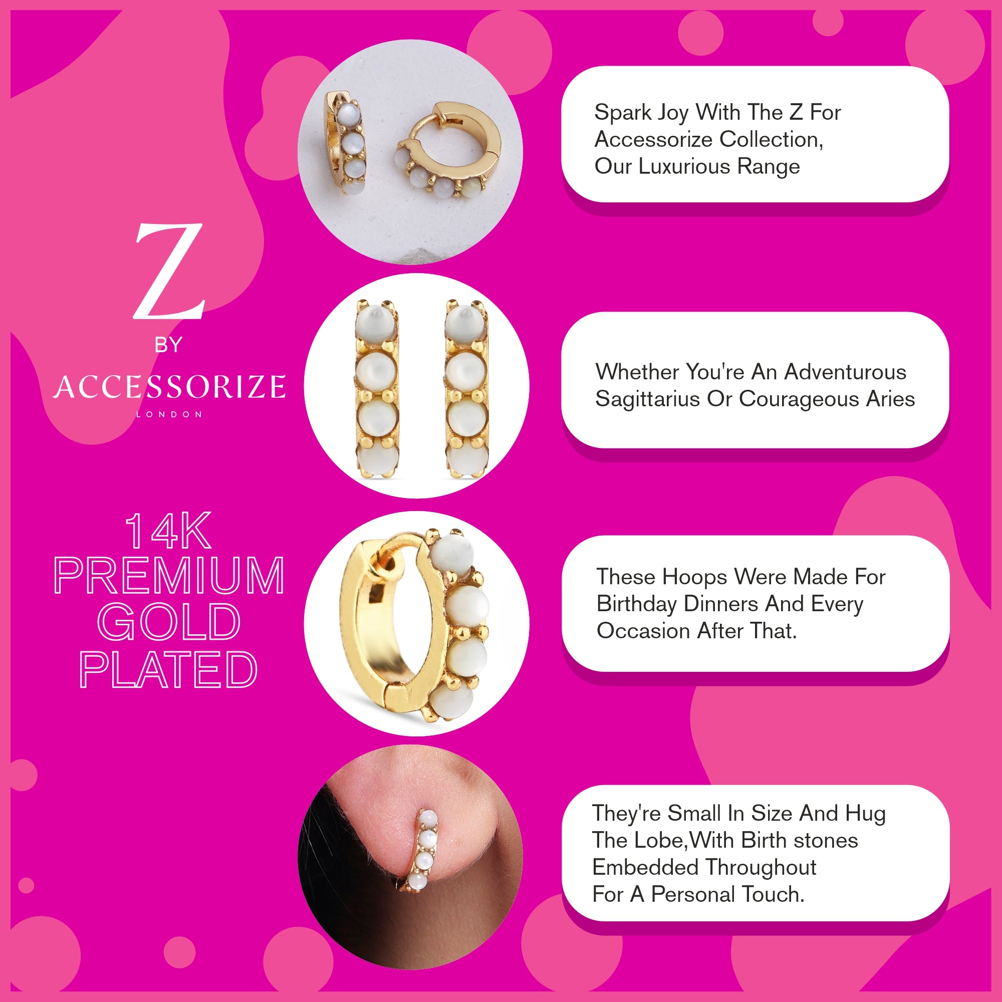 Real Gold Plated Z Multi Birthstone Hoops-June