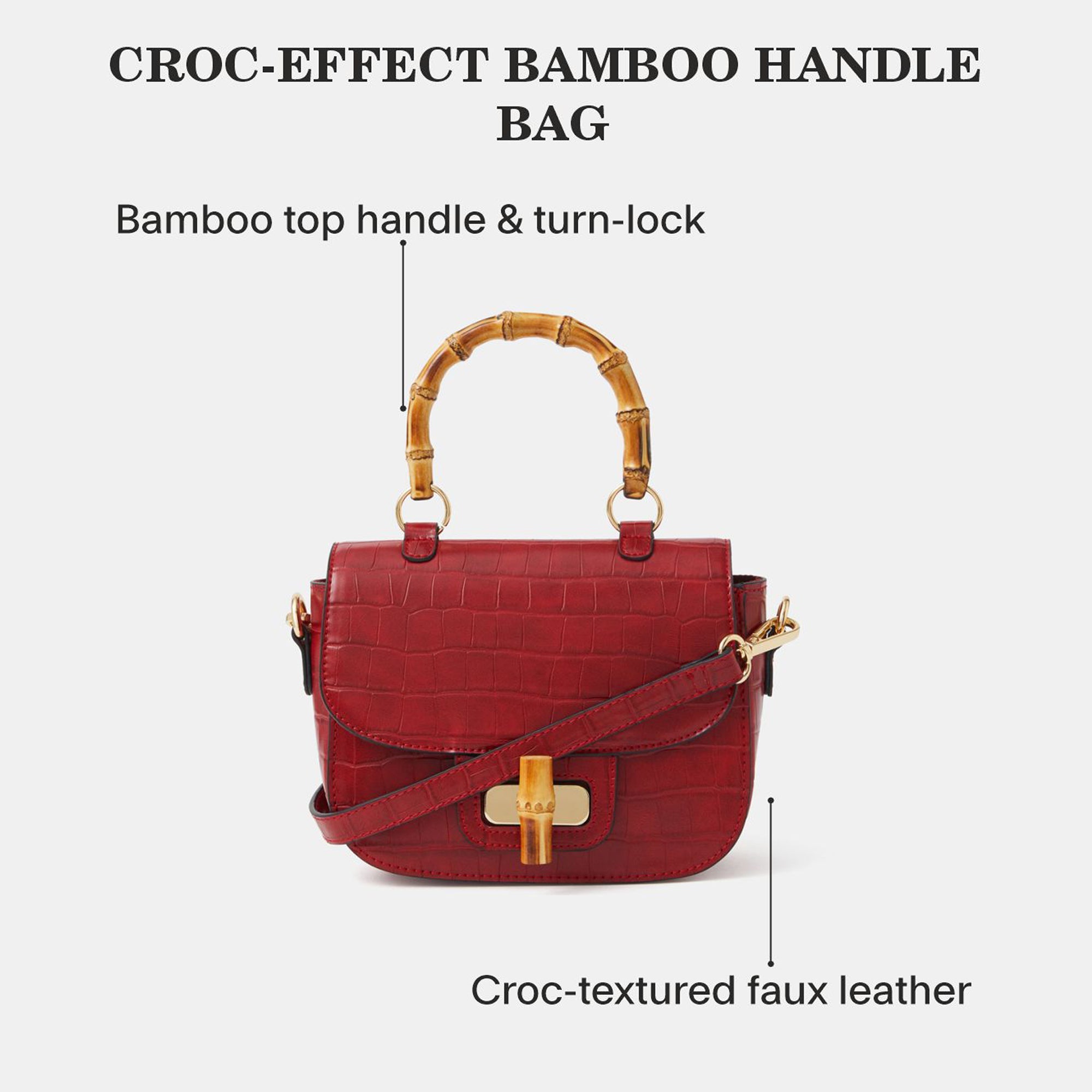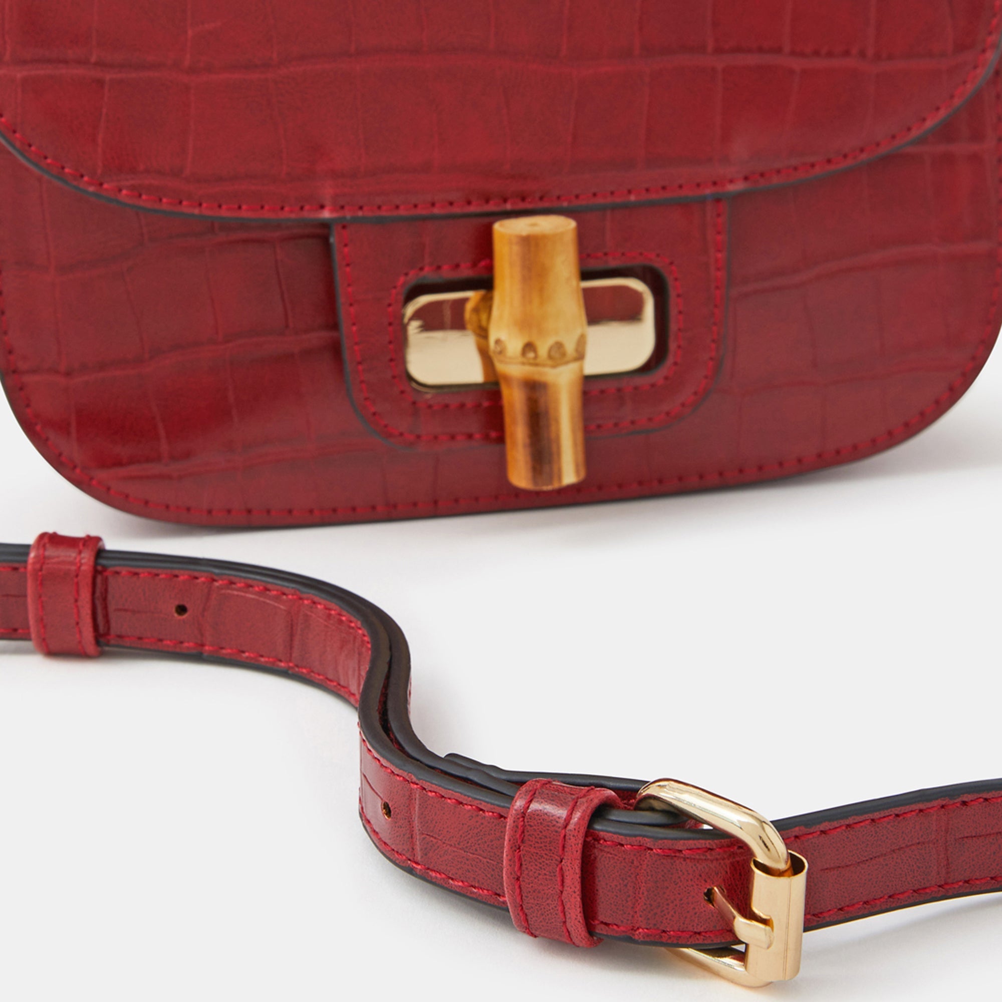 The perfect chic accessory for summertime (and beyond)! Designed in faux leather with a croc-effect finish, this crossbody bag features a twist lock fastening, adjustable strap and bamboo-style top handle for easy carrying.