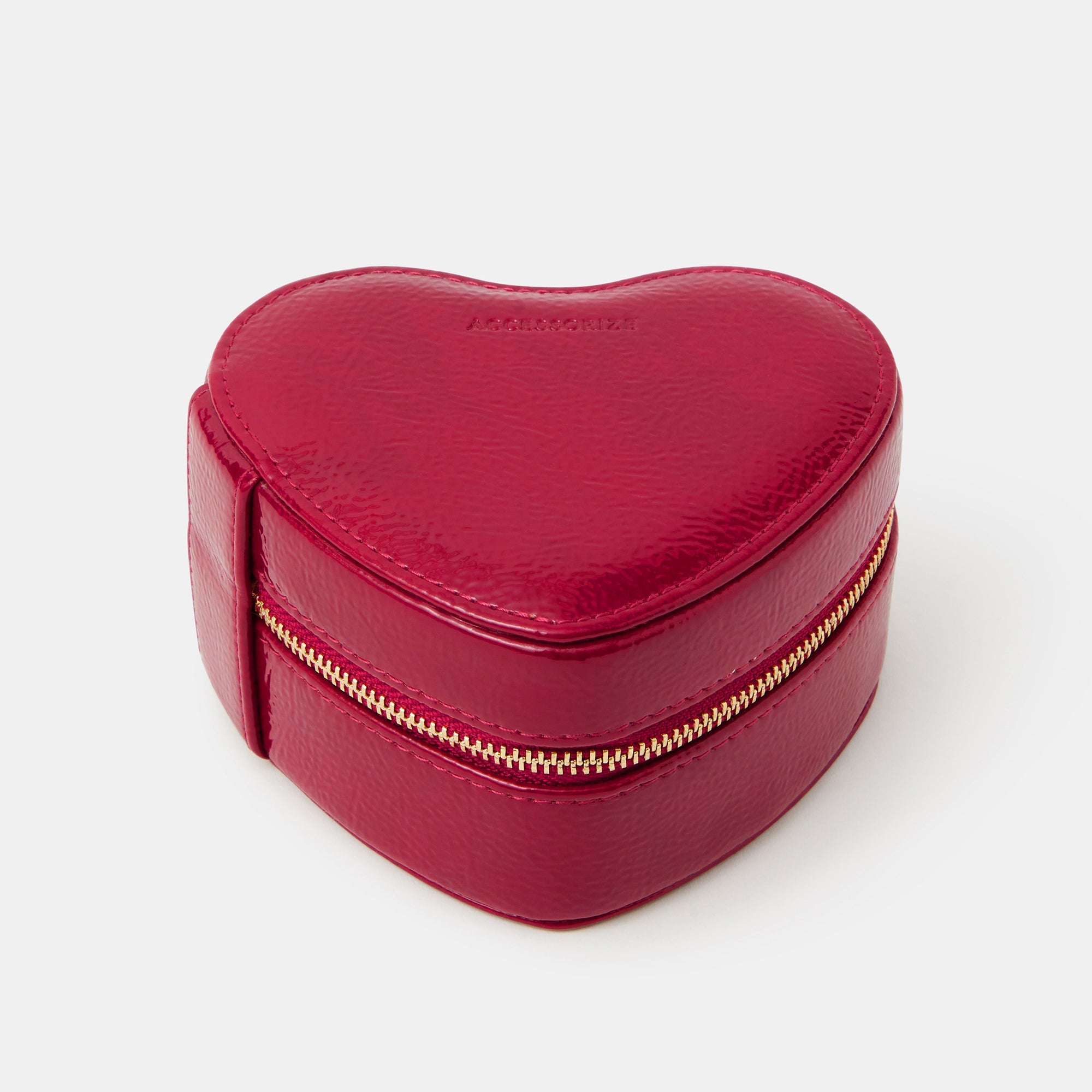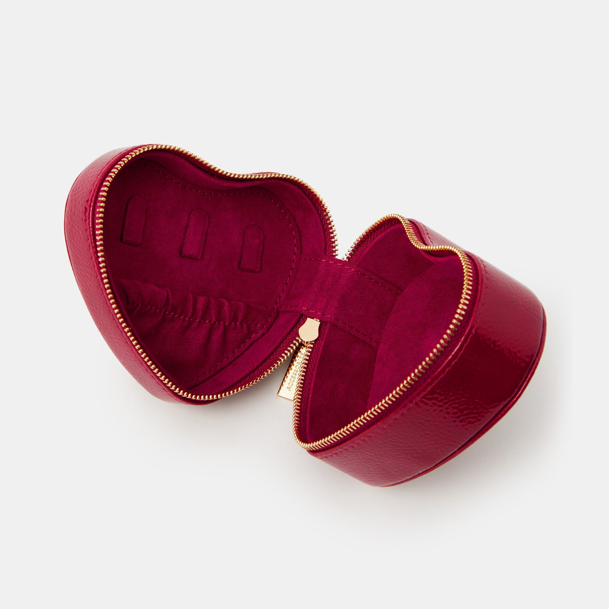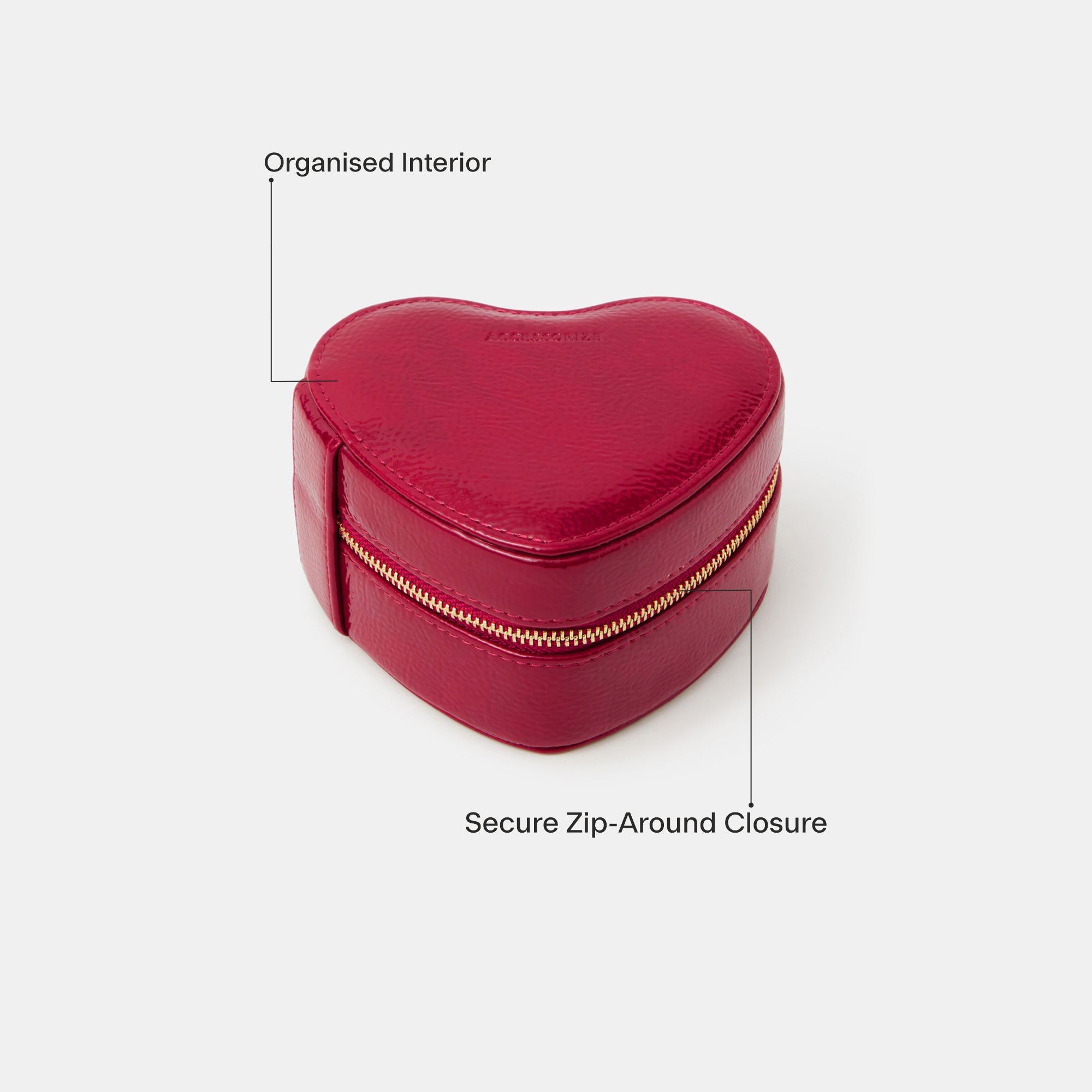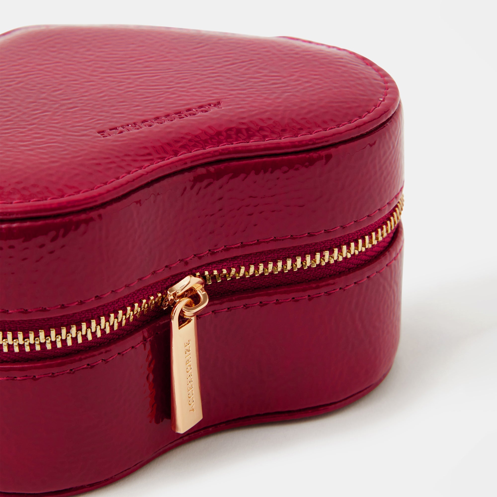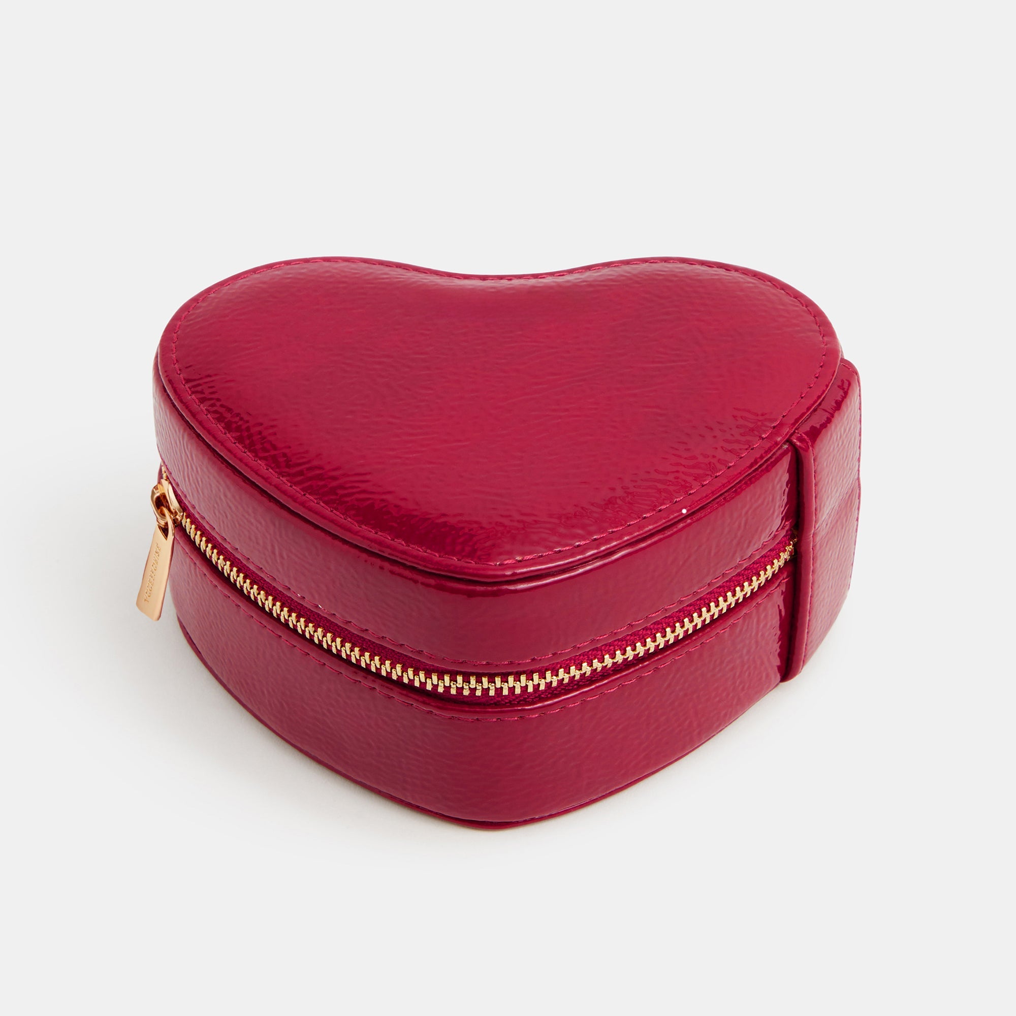 Holiday plans? Keep your little treasures and favourite jewels safe in this heart-shaped jewellery box. Designed in patent leather, it fastens with a zip closure.