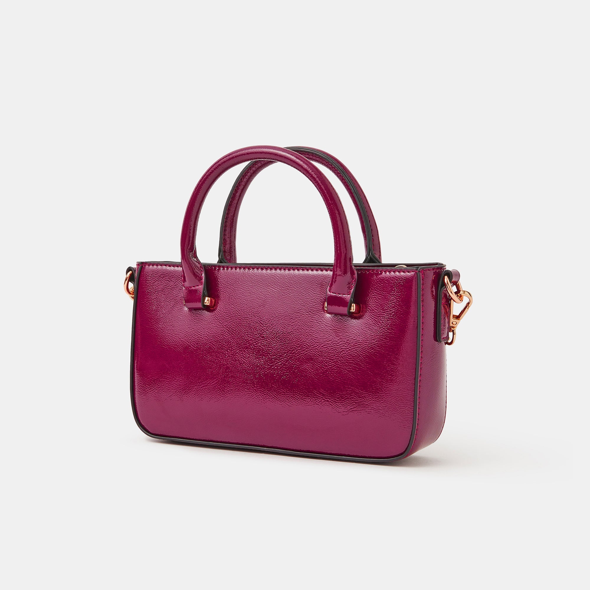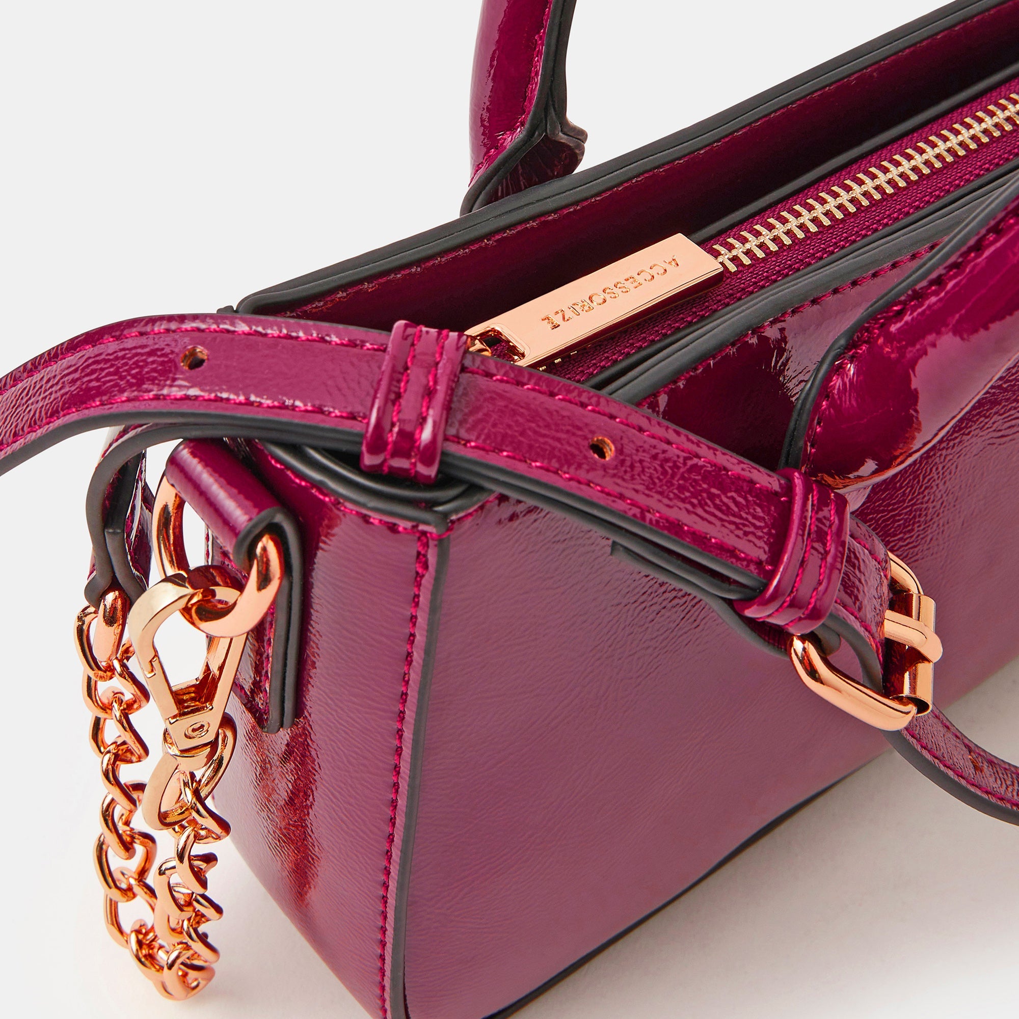 Shiny new bag feeling... Perfect for high street strolls and cocktail hour, this bag is shaped like a handbag with the option of styling like a crossbody. Designed in faux leather with a patent finish, it features a main zip compartment with an adjustable (and detachable) chain detail strap