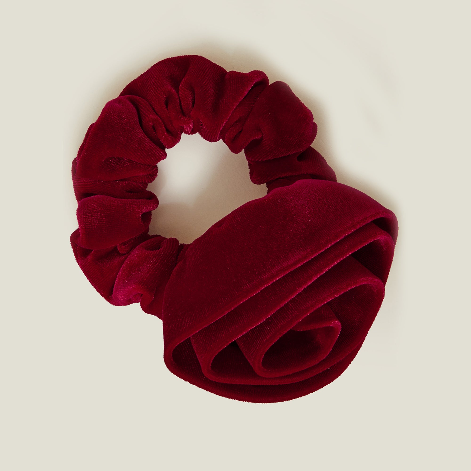 Made from soft velvet fabric, this scrunchie is finished with a corsage design, adding an elevated touch to ponytails and buns.
