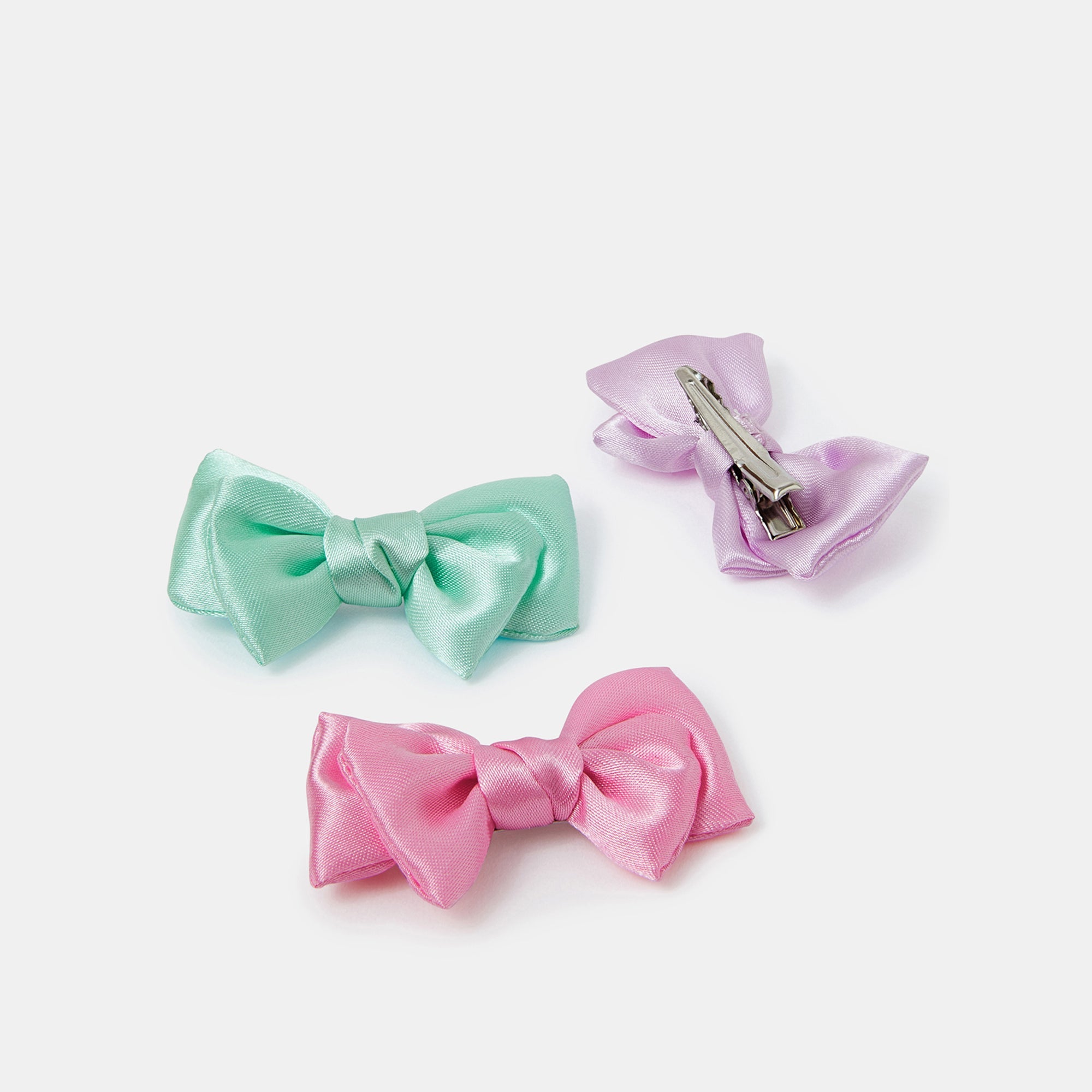 Boasting sweet satin bows in candy colours, these hair clips are pretty additions to their hairstyles. Three clips included.