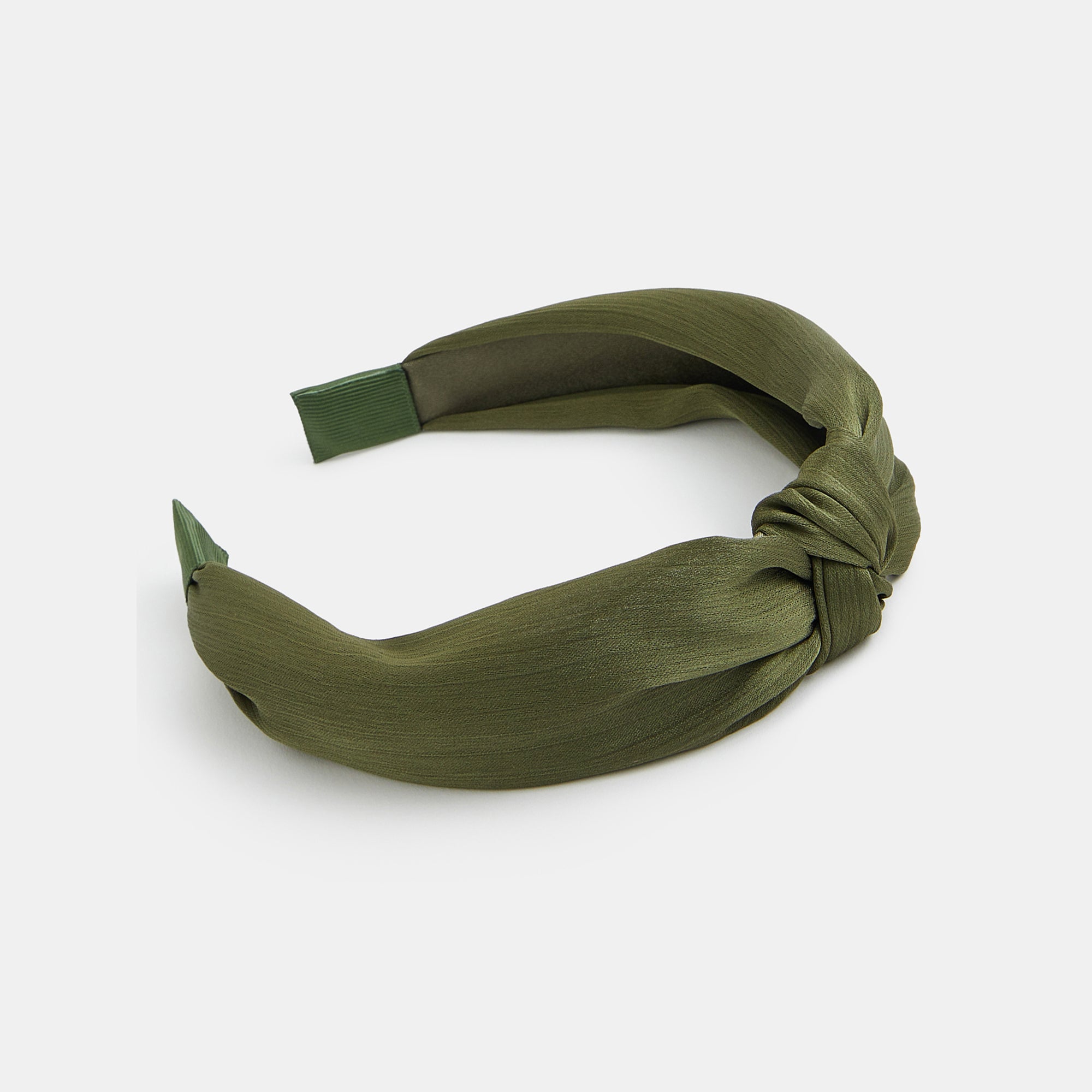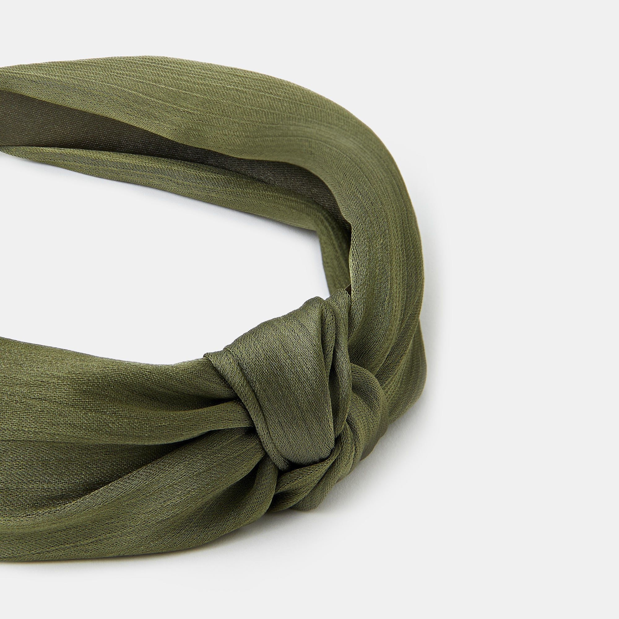 Made from soft satin fabric in a dreamy khaki colour, this headband is designed with a simple knot detail at the top.