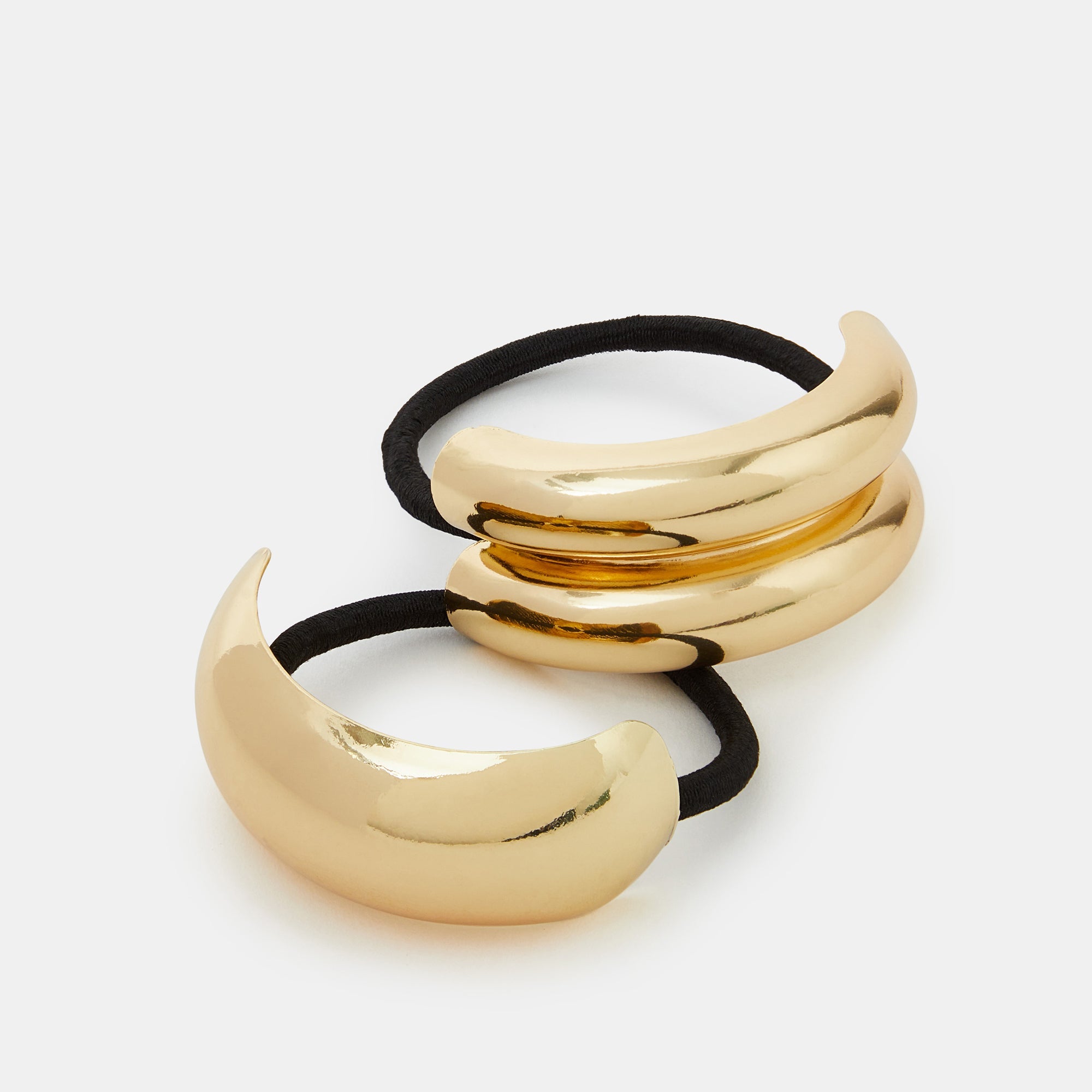 An easy way to elevate your ponytails and plaits, these hair bands feature cuff-style finishes in a golden tone. Two included.