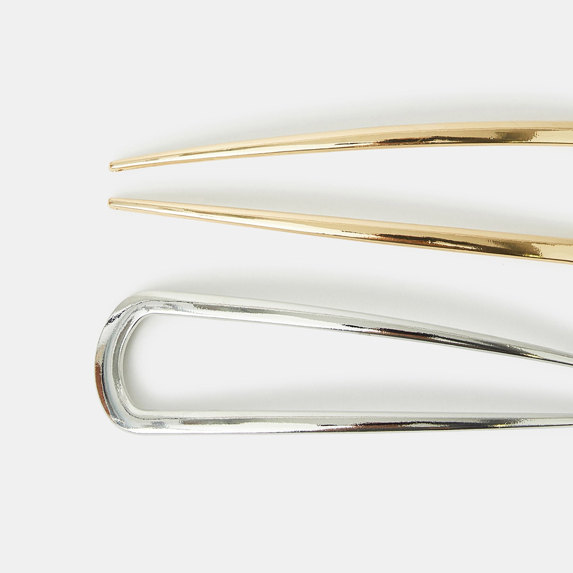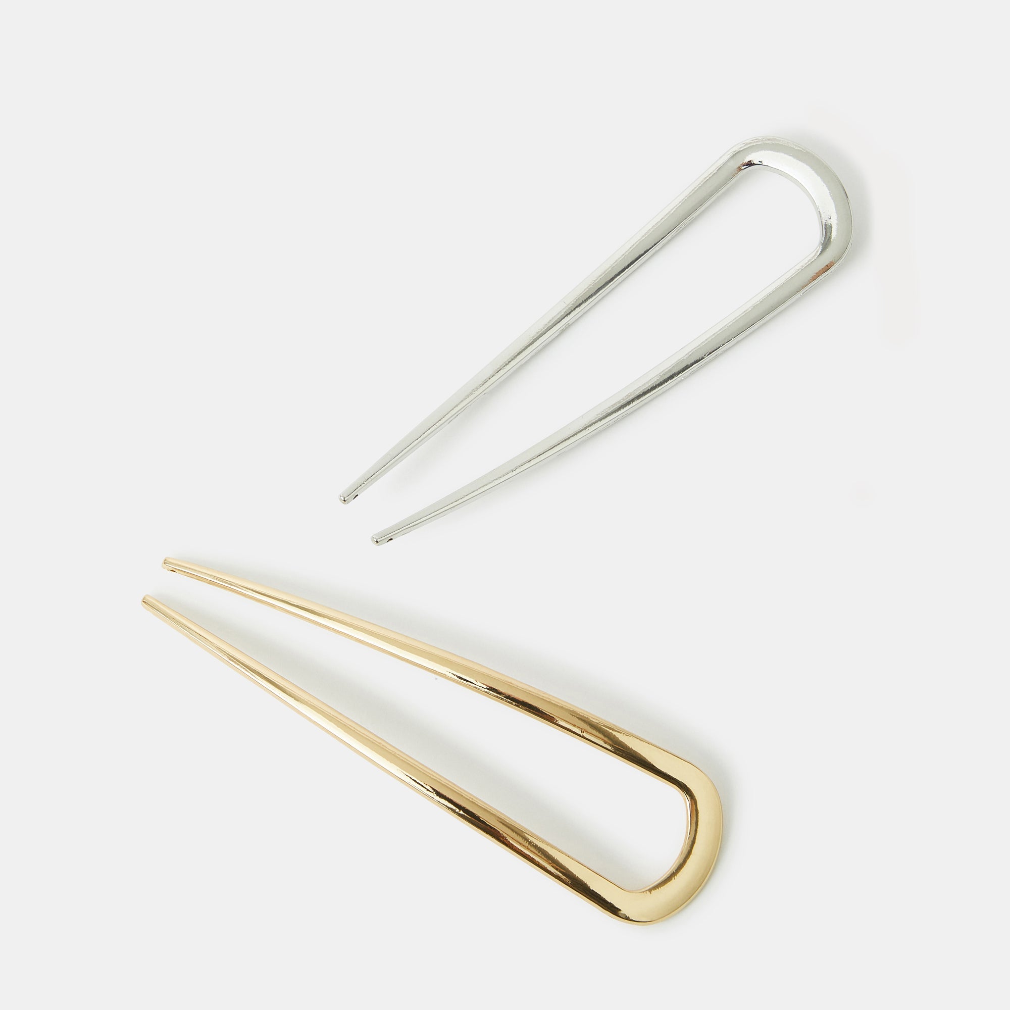 Say Bonjour to chic accessories! Move aside claw clips, French pins are having their moment. Perfect for securing all your updos, they're dipped in a silver and gold tone. Two included.
