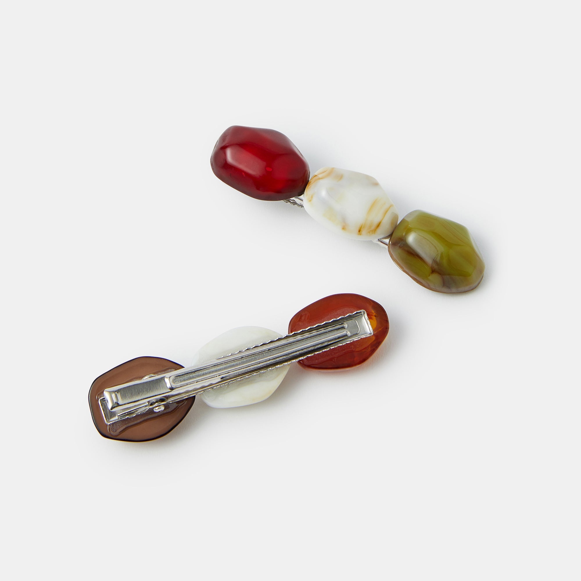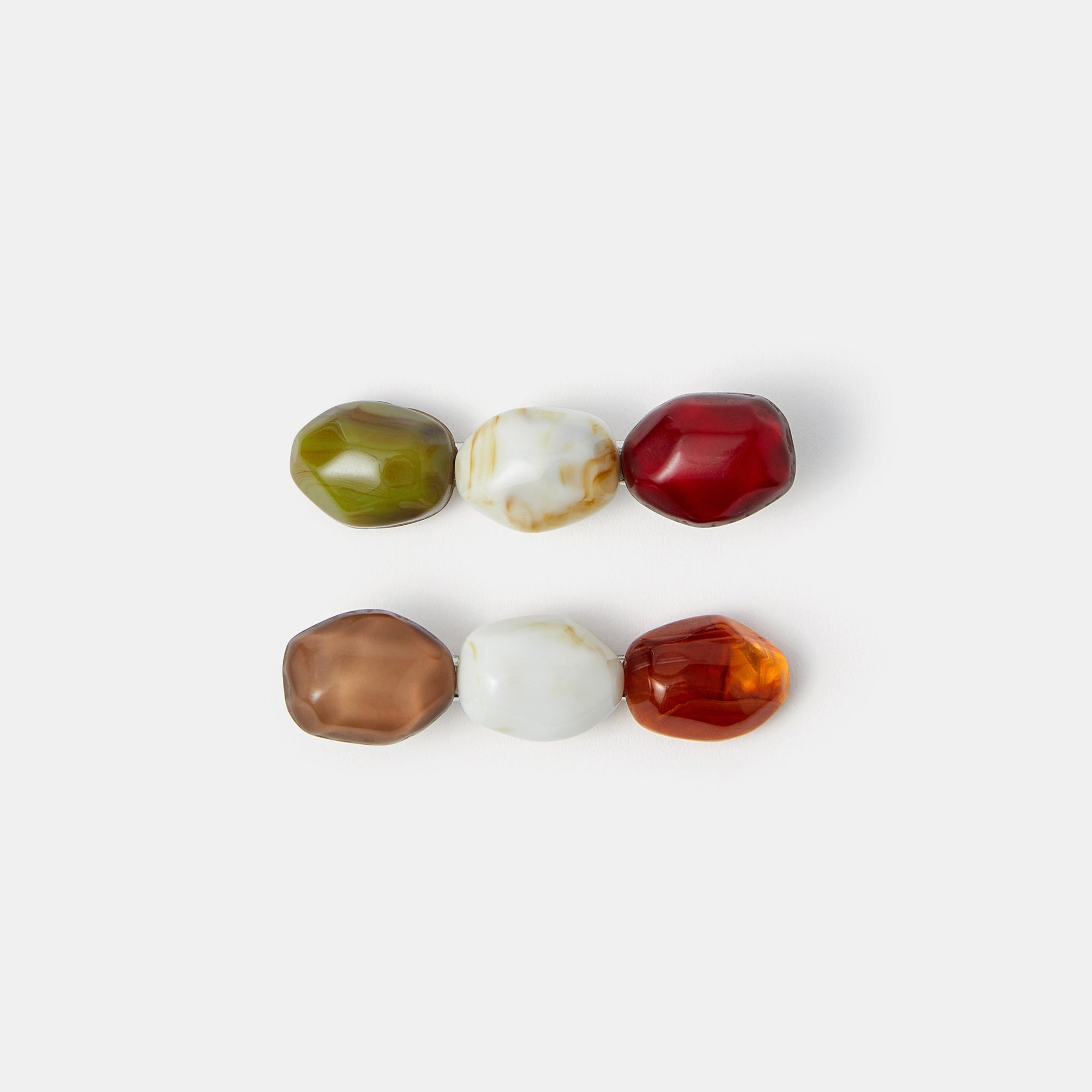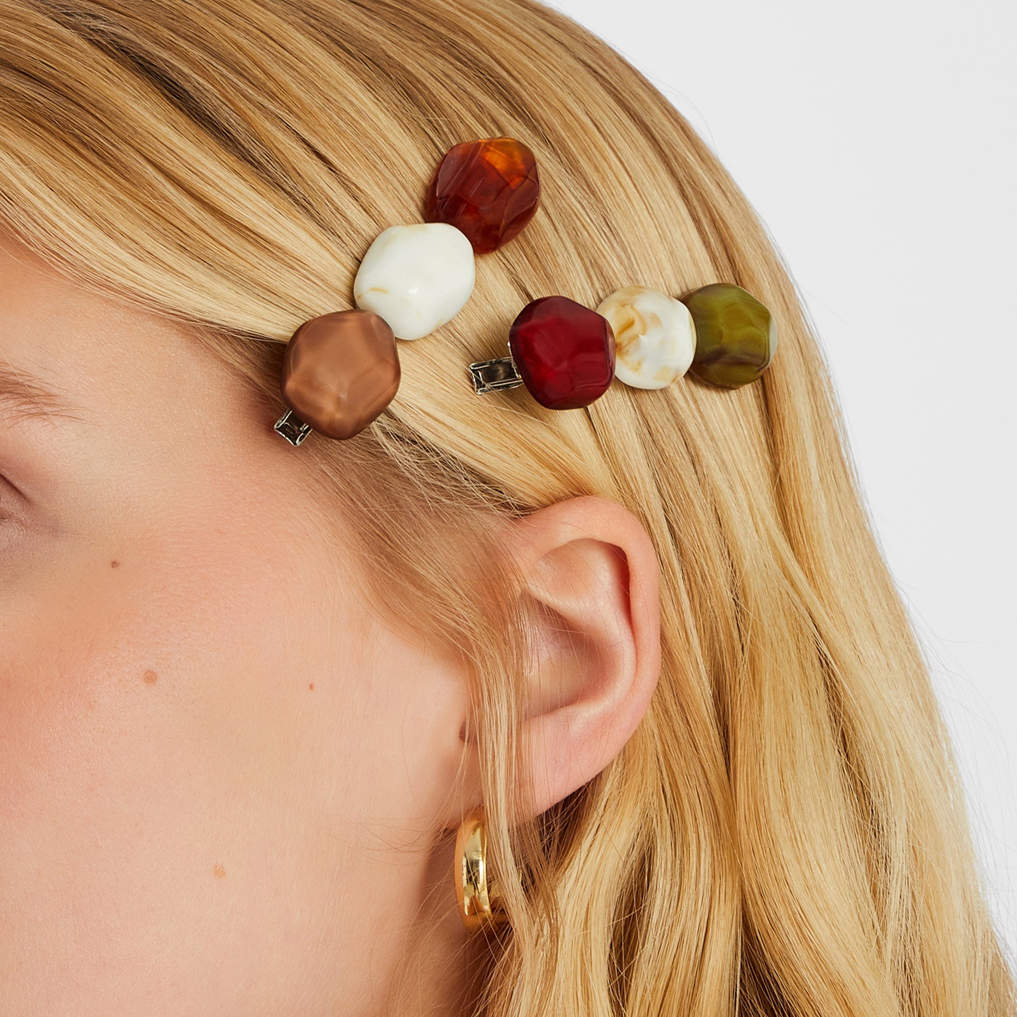 Crafted in a silver-tone, these slide-and-snap clips boast a resin finish in warm tones. Perfect for clipping the front pieces of your hair back, they'll instantly elevate your look. Two included.
