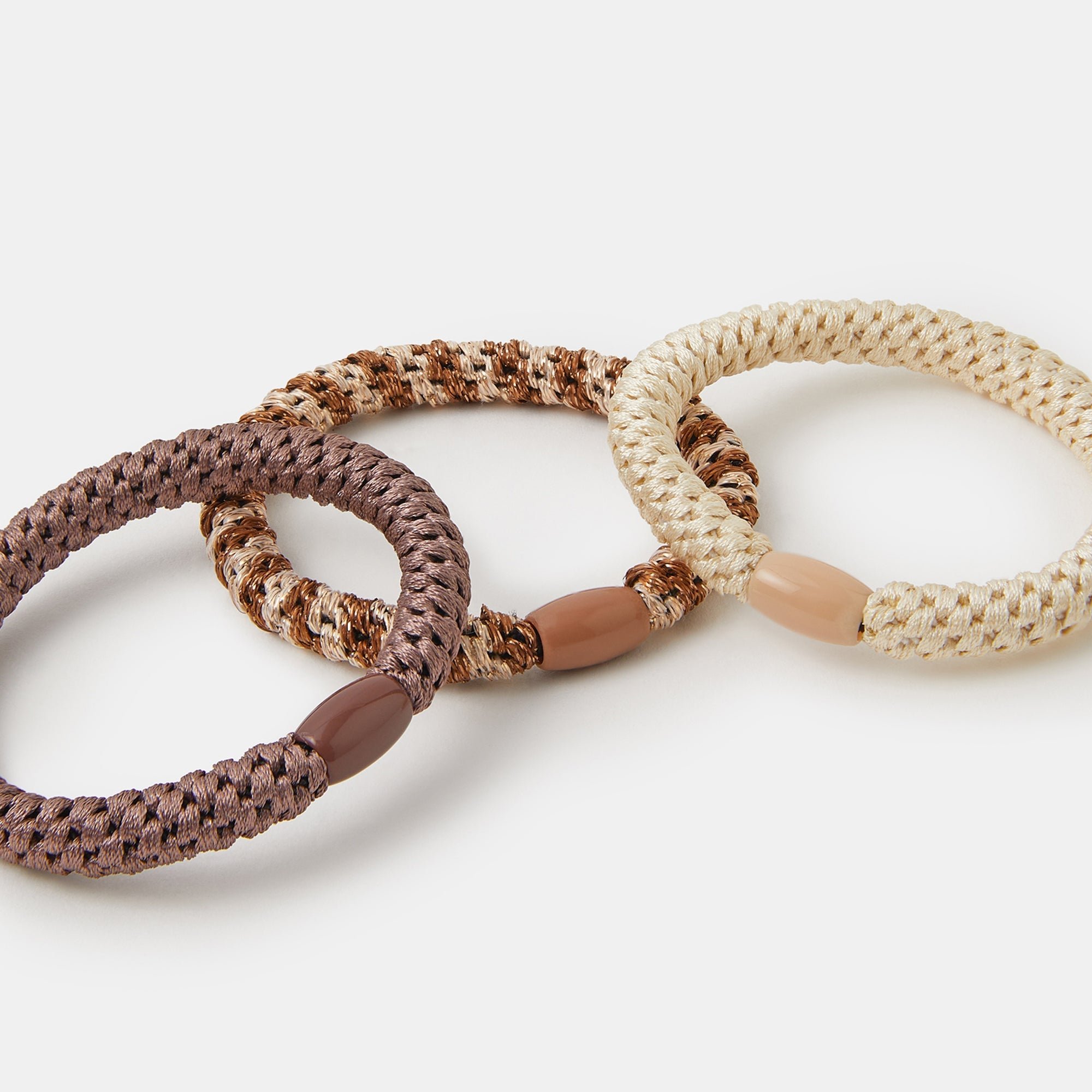 Basic... But in a good way, these hair bobbles are an essential for your collection. Perfect for securing any updo, the cord elastic comes in a mix of neutral tones. Three included.