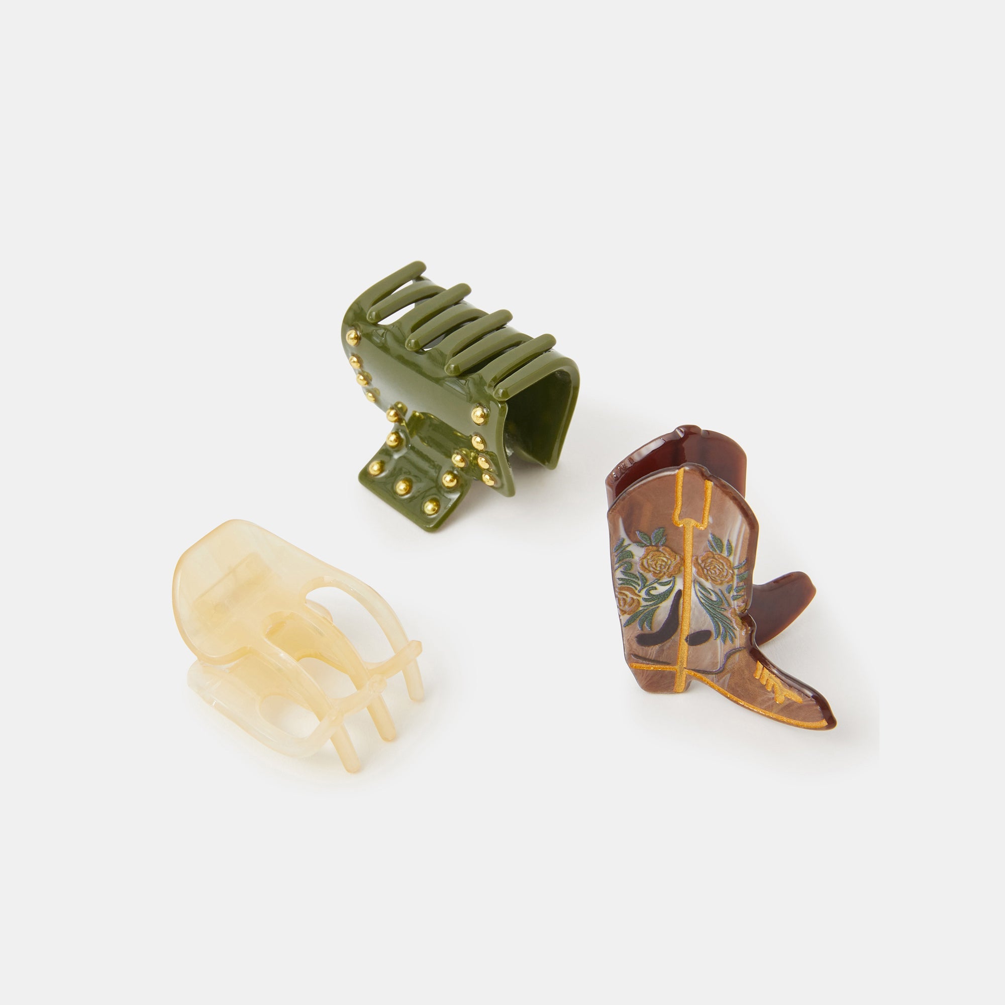 Set Of 3 Mix Cowboy Stud Hair Claw Clips
