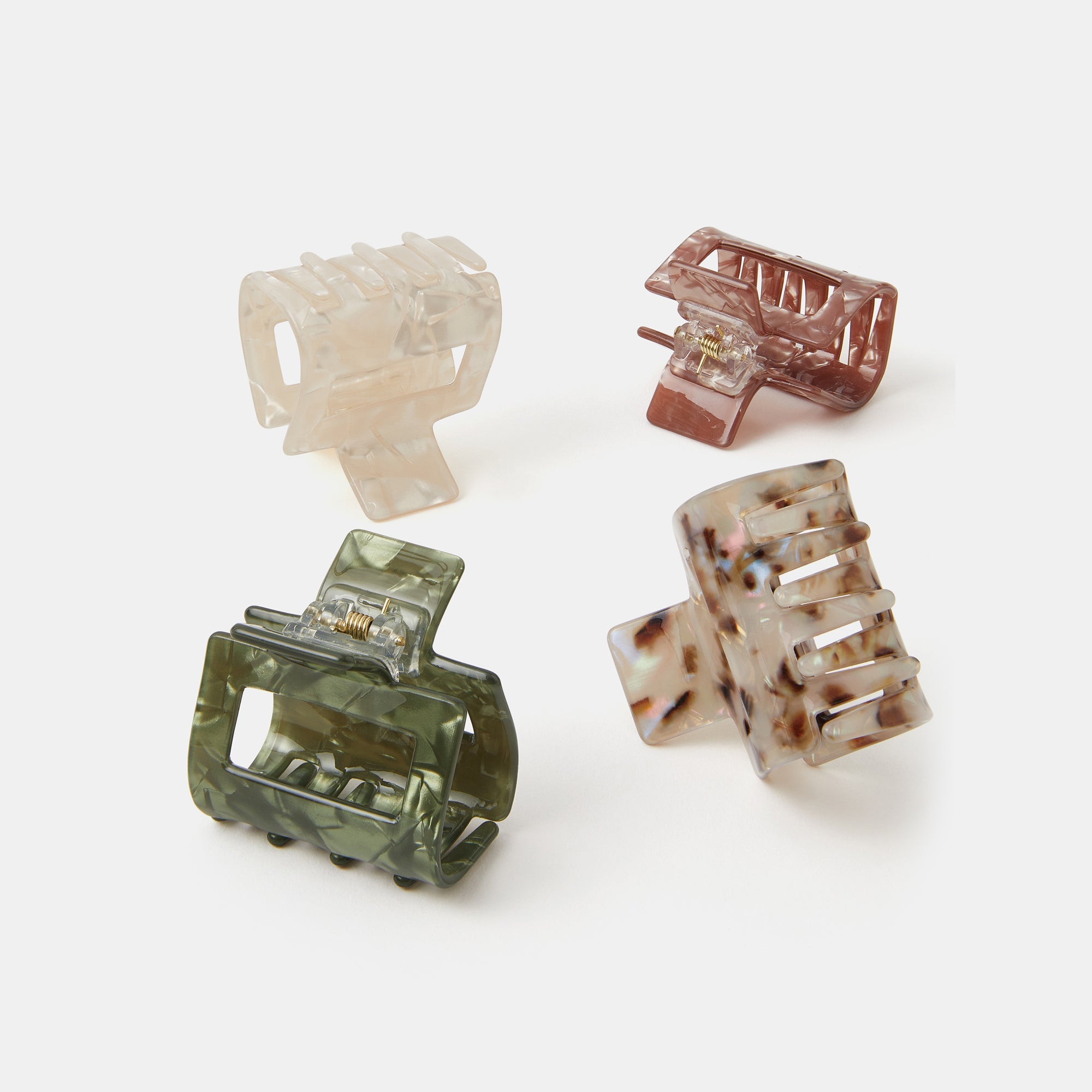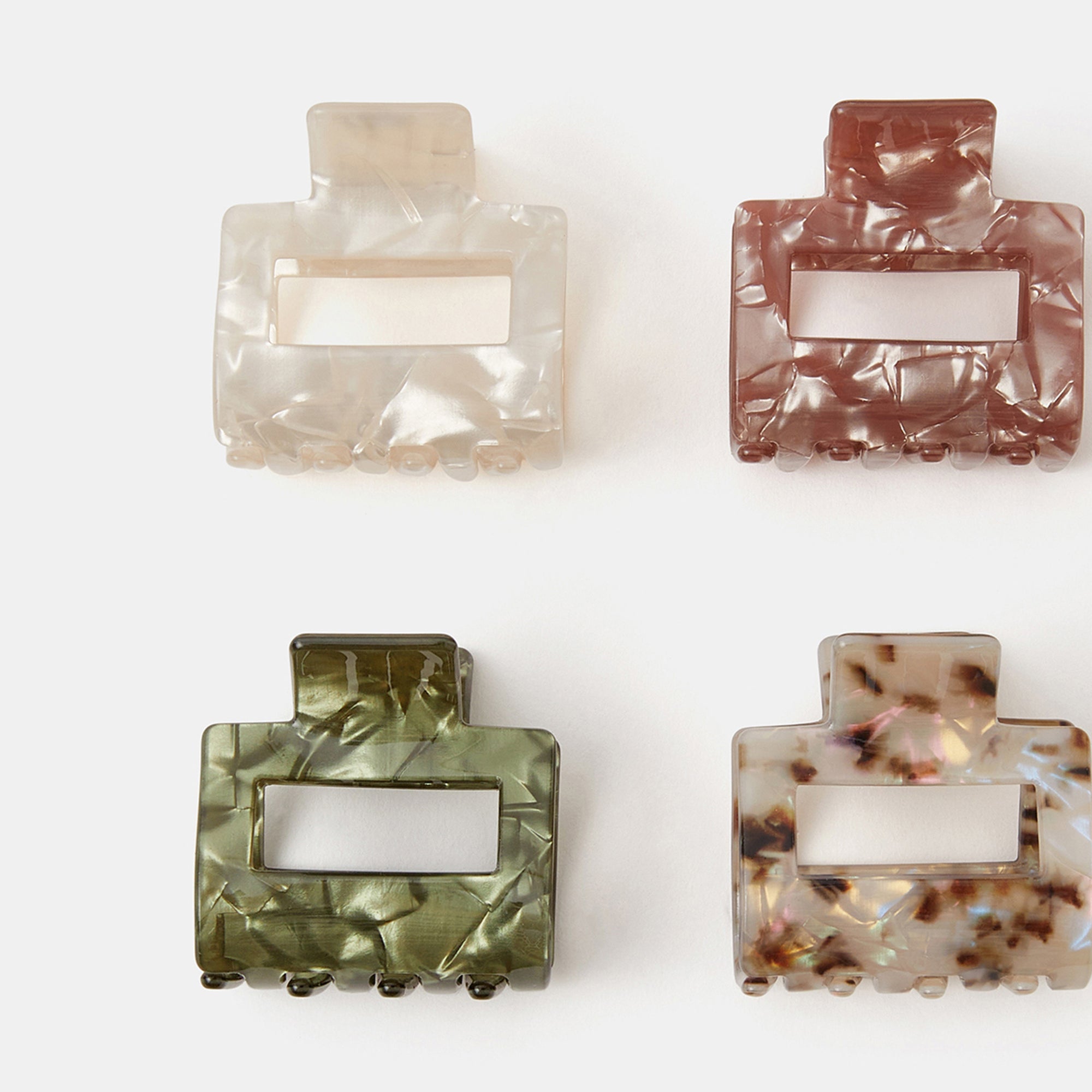 Whether you're securing your perfectly slicked-back bun or in the midst of the morning rush and simply need to twist-and-go, these claw clips cover all bases. Designed in a cut-out square shape and four different shiny marbled finishes. Sold as a set.