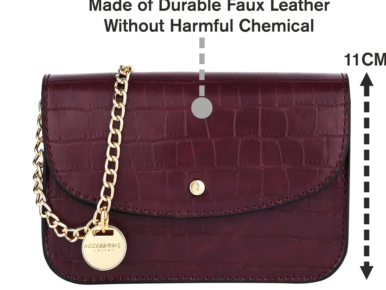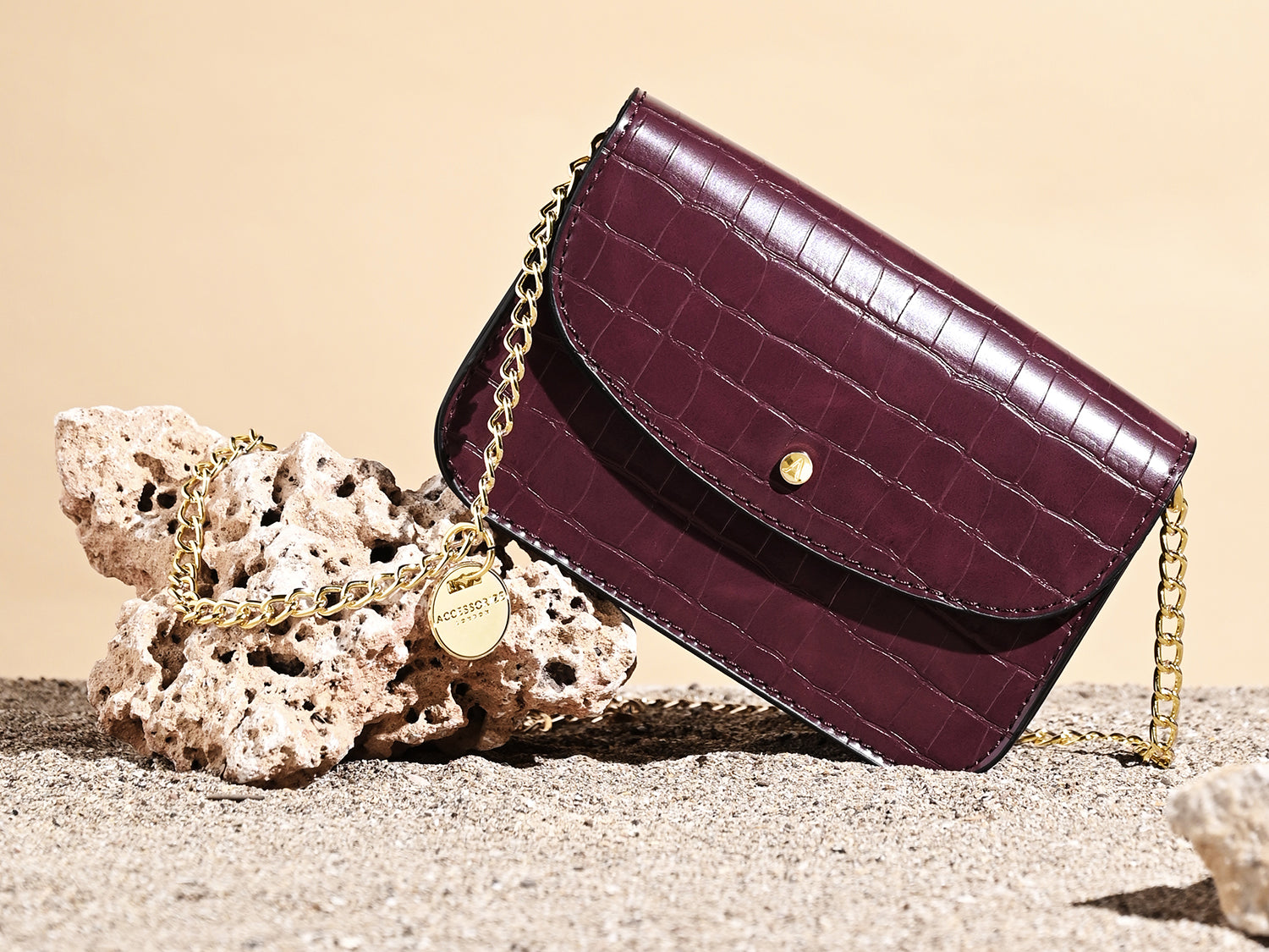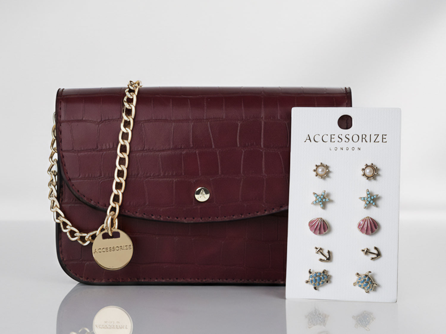 Celebrate Valentine’s Day with this thoughtfully curated Accessorize London gift combo that blends everyday elegance with playful charm. The rich burgundy croc-effect sling bag adds a refined touch with its sleek silhouette and gold chain strap—perfect for date nights and special occasions. Paired with a versatile set of gold-tone stud earrings featuring delicate motifs, this combo offers endless styling options, from subtle daytime looks to evening-ready ensembles. Wear the earrings to mix and match moods, while the compact sling completes the outfit with polished sophistication. A timeless and stylish gifting choice for someone special.