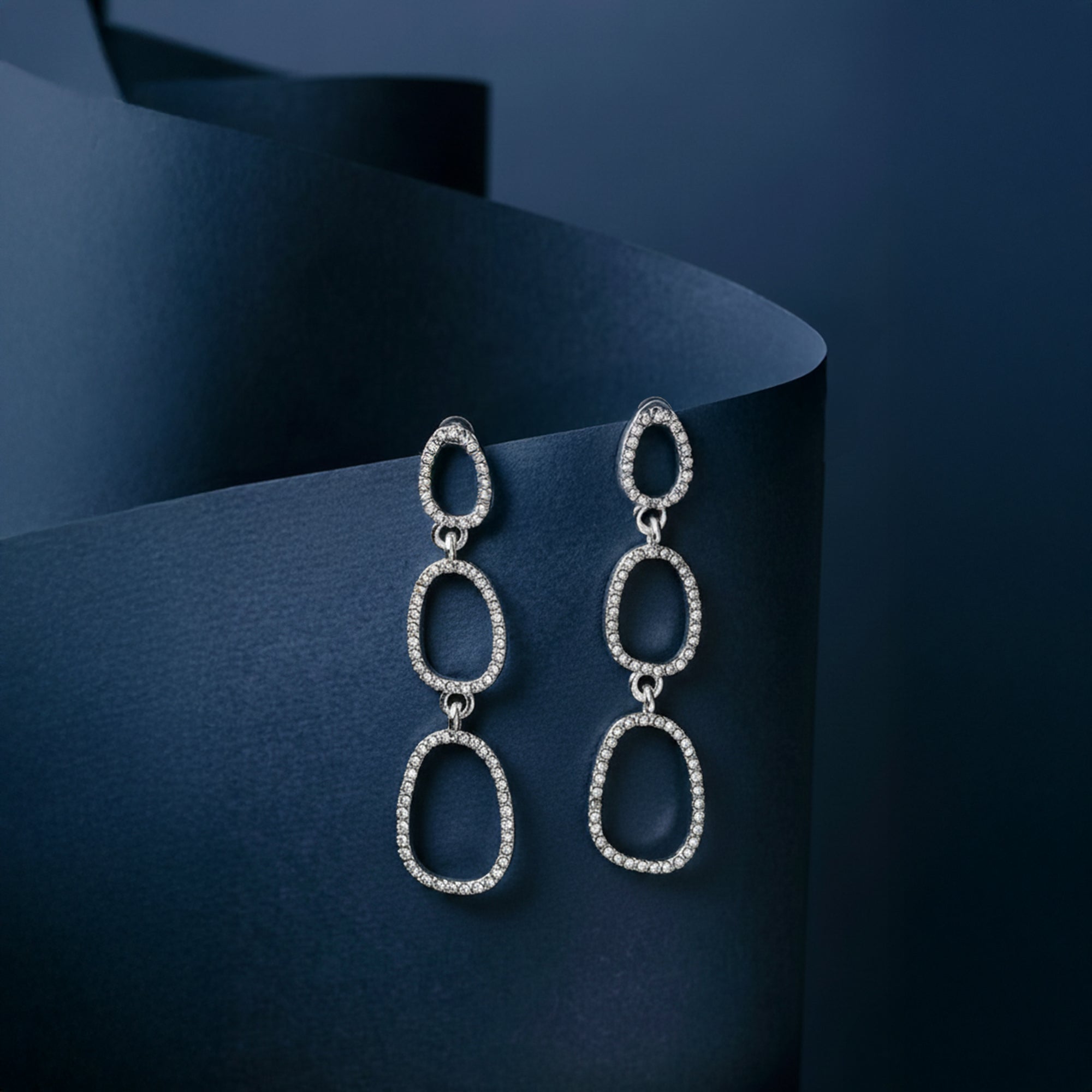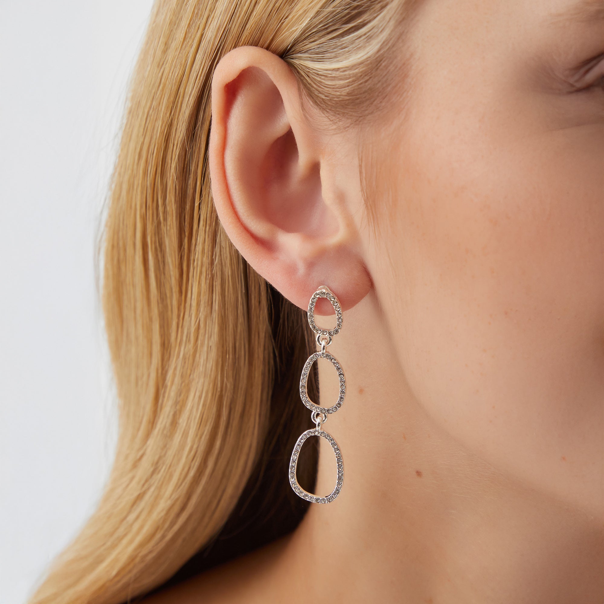 They say good things come in threes and – with these earrings in your jewellery box – we have to agree. Dipped in a silver tone, they boast a trio of organic cut-out shapes encrusted with diamantés.