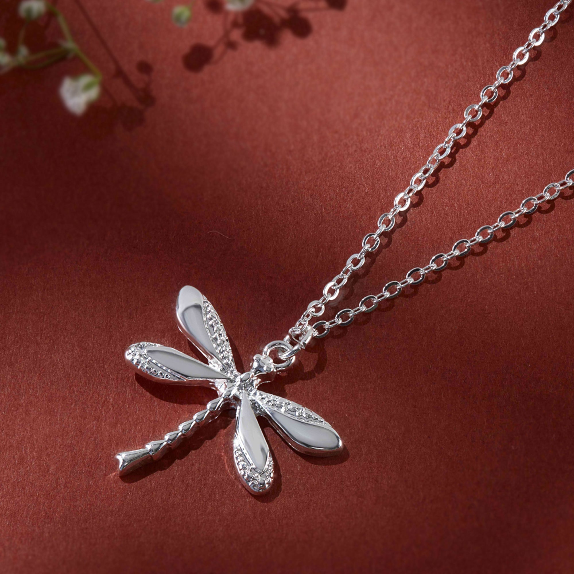 Adding a touch of whimsy to every look, this necklace is perfected with a silver-tone dragonfly pendant. Fastened with a lobster clasp and extender.