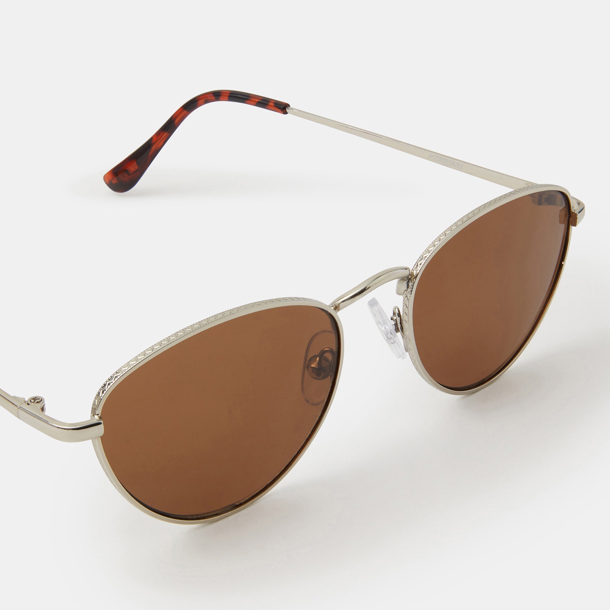 A holiday essential. This classic pair features shaded lenses and a thin metallic frame. Finished with silicone nose pads.