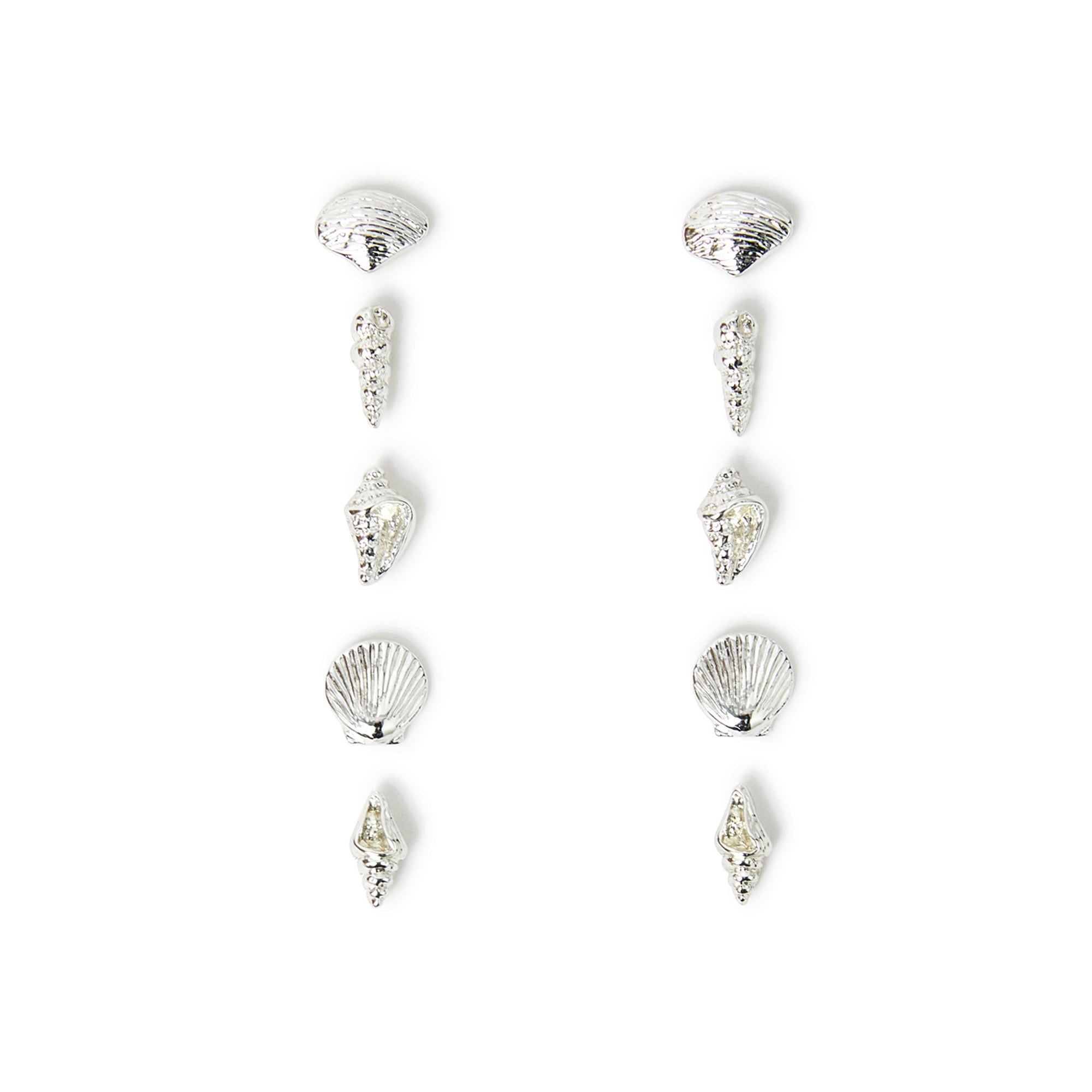 A sparkling selection all the beach babes will love. Dipped in a silver tone, these studs showcase different seashell designs. Five pairs of earrings included.
